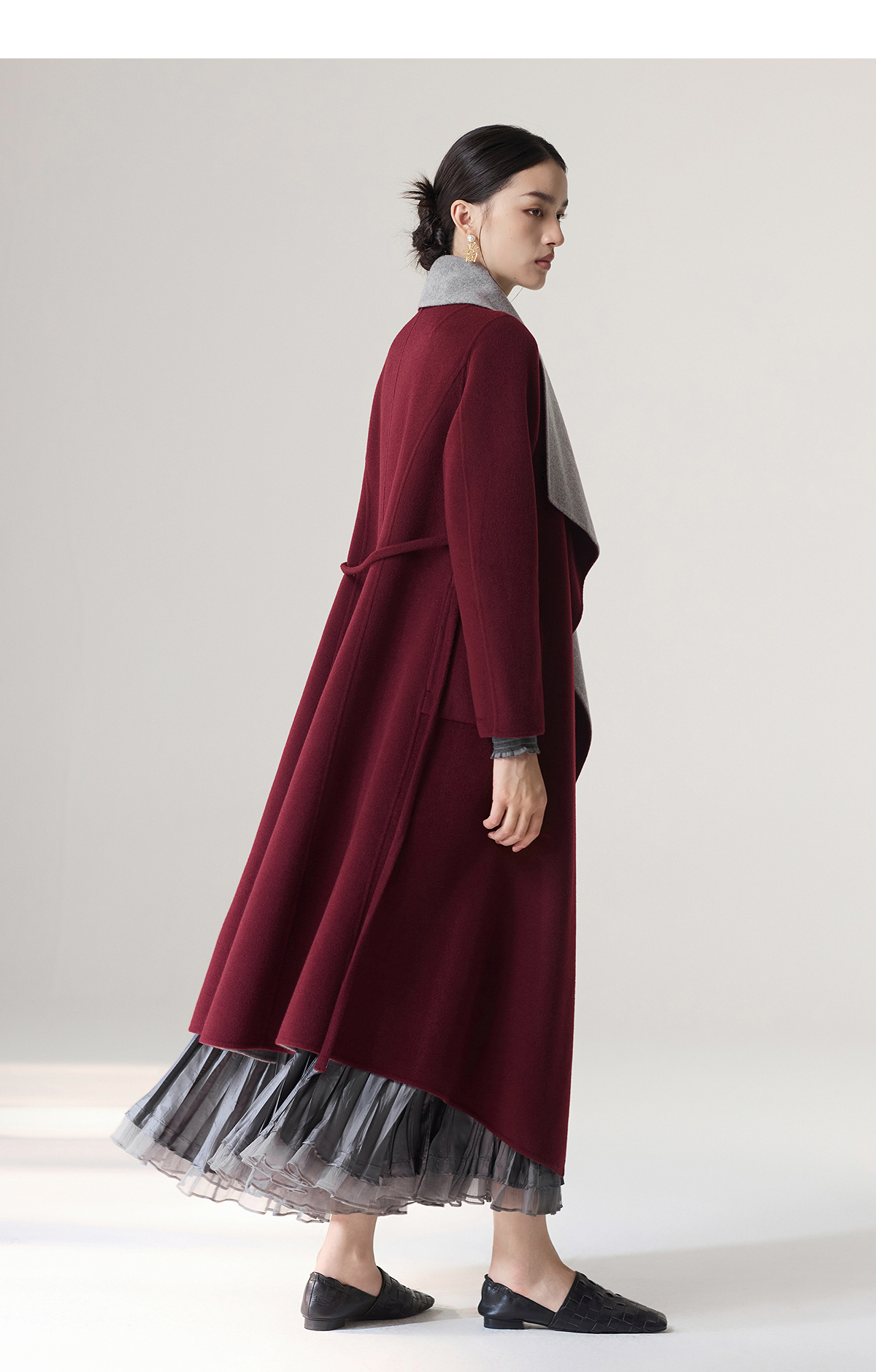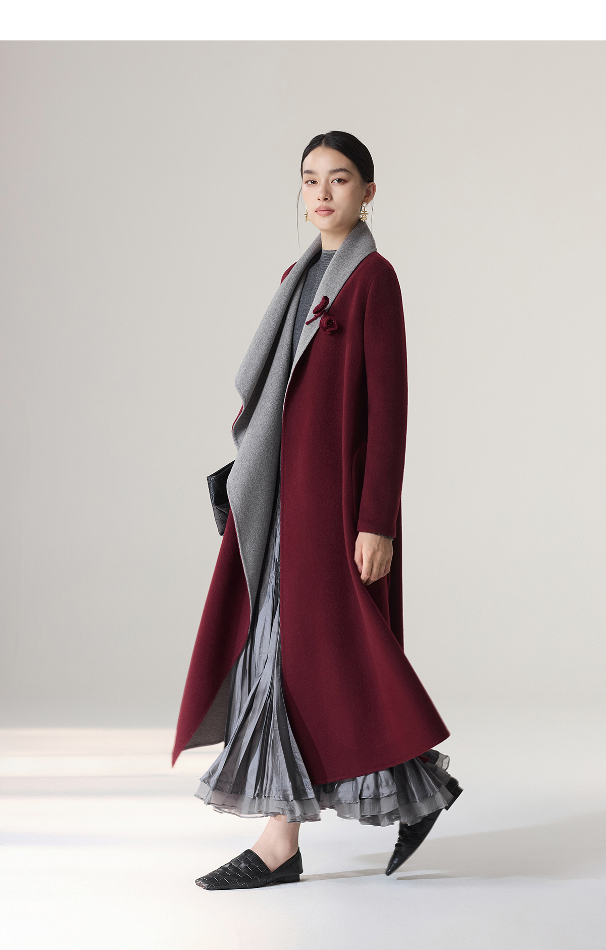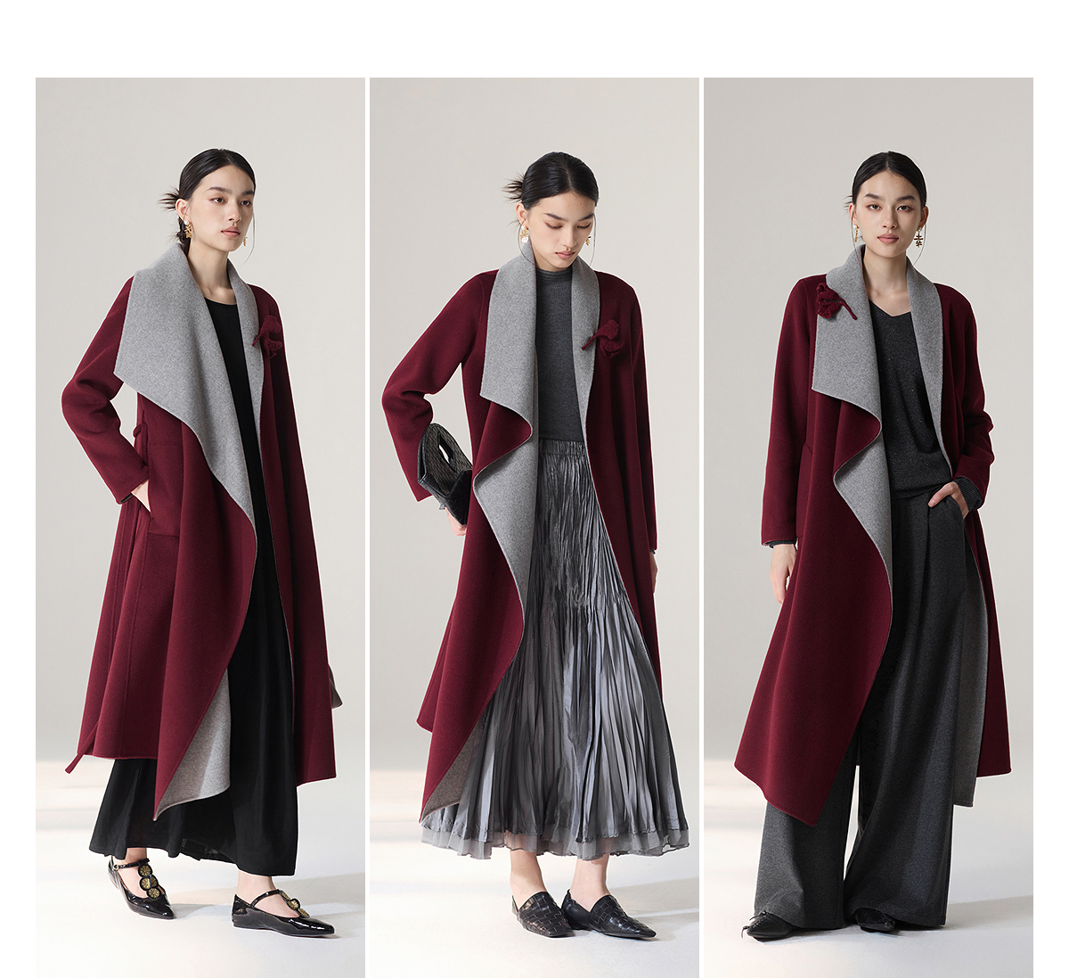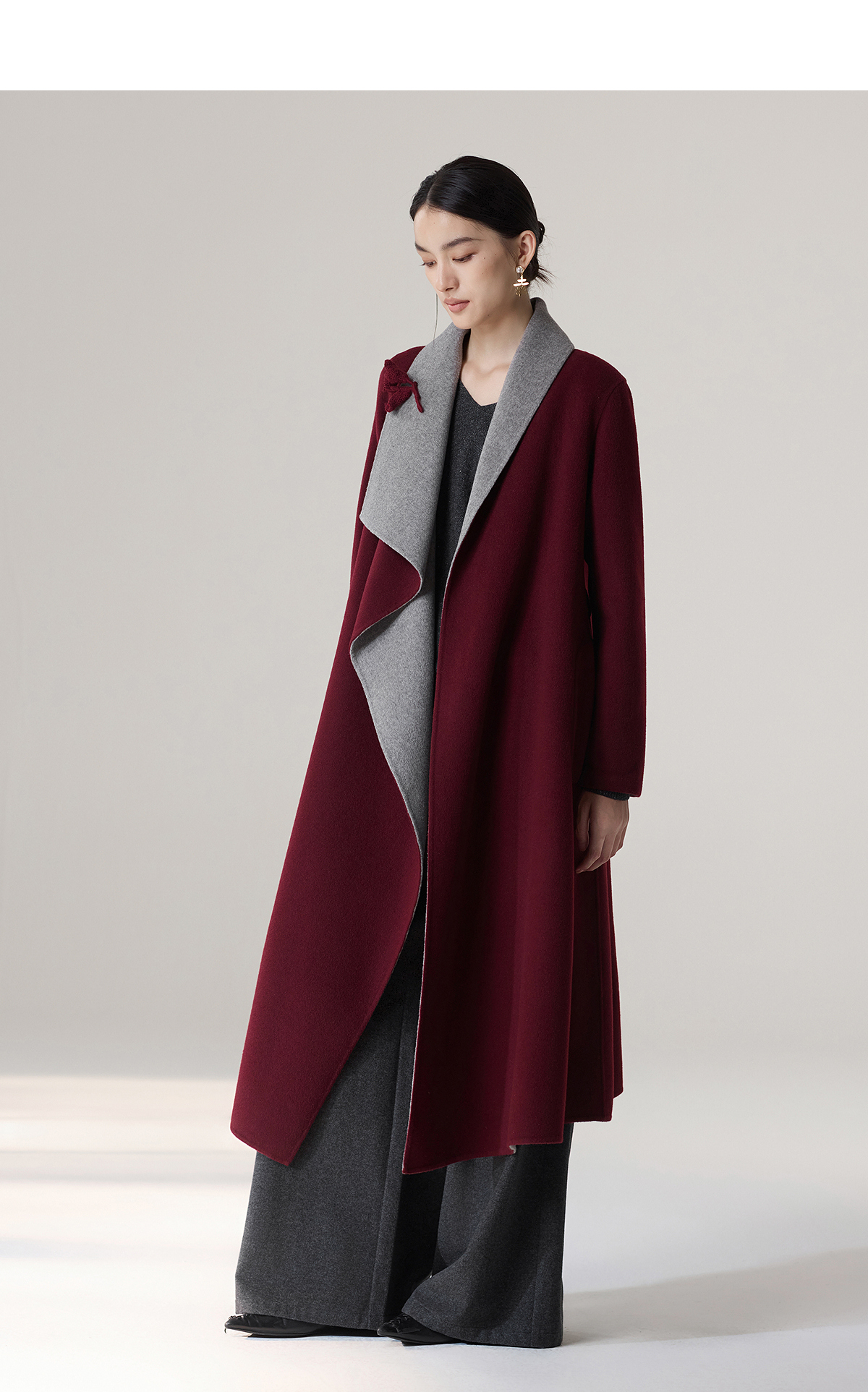 【林栖设计小店】绵羊毛双面呢外套手钩花翻领气质长款2025秋冬新款大衣女1954014