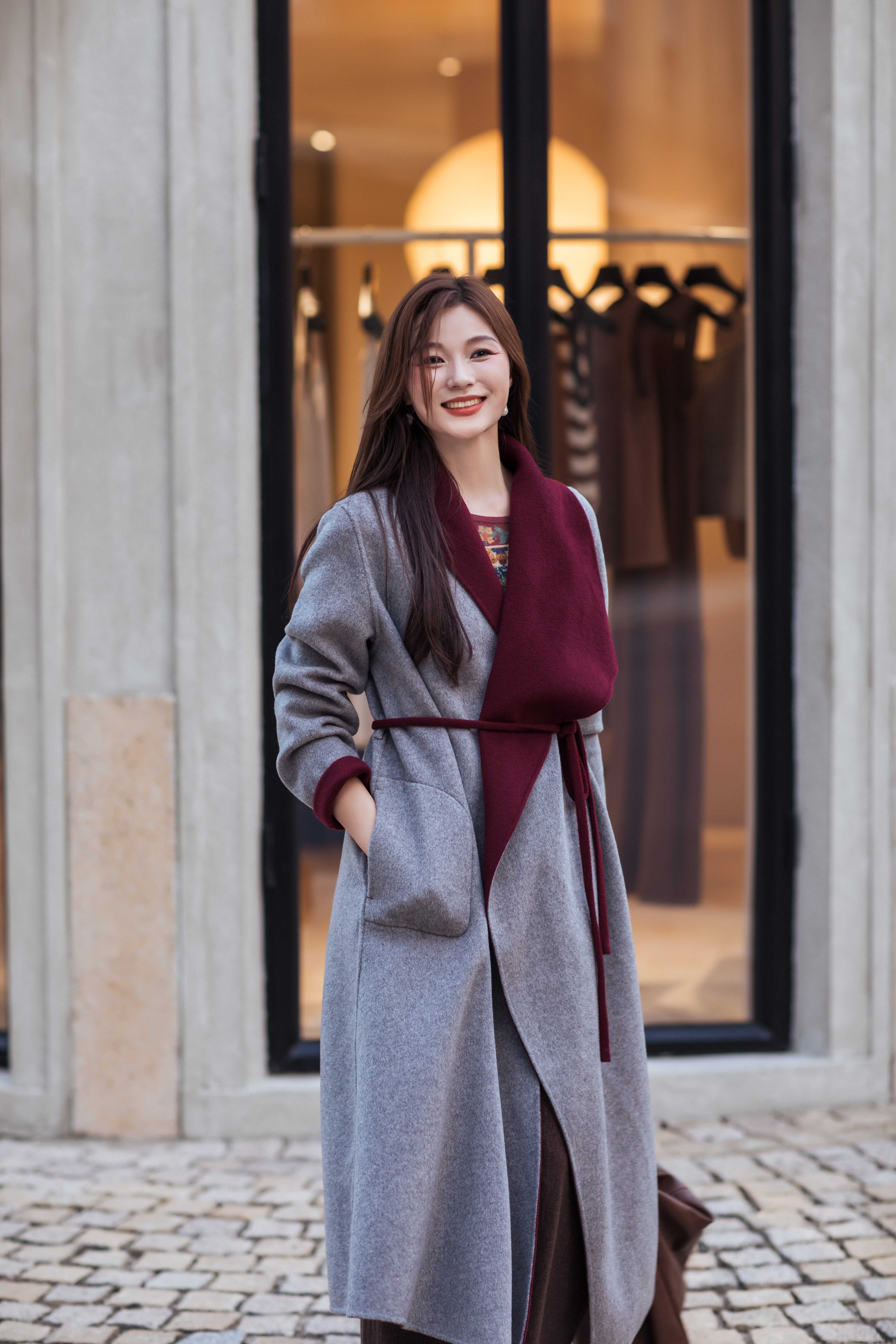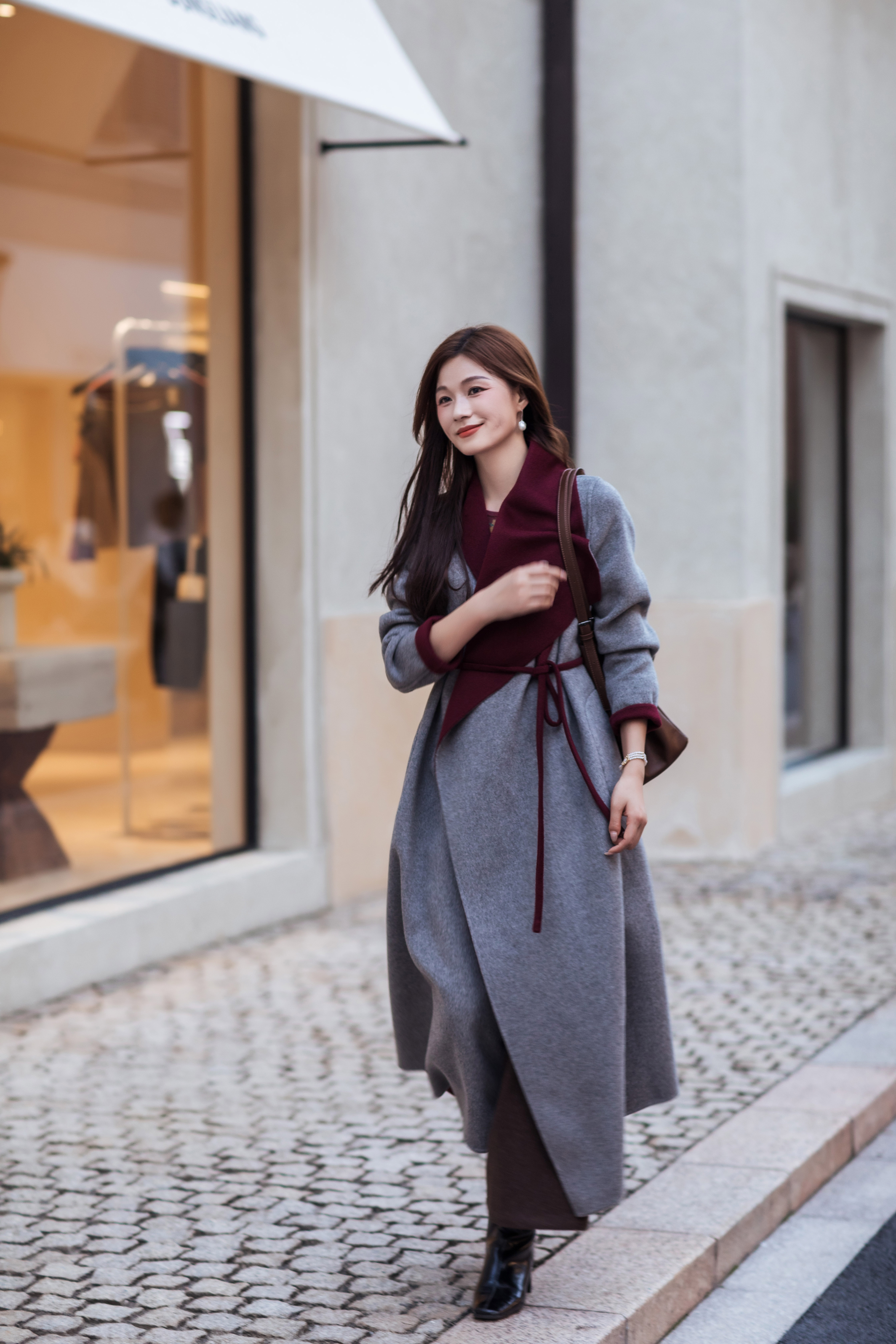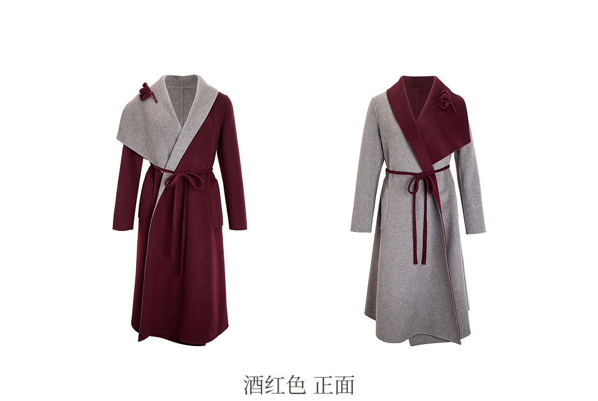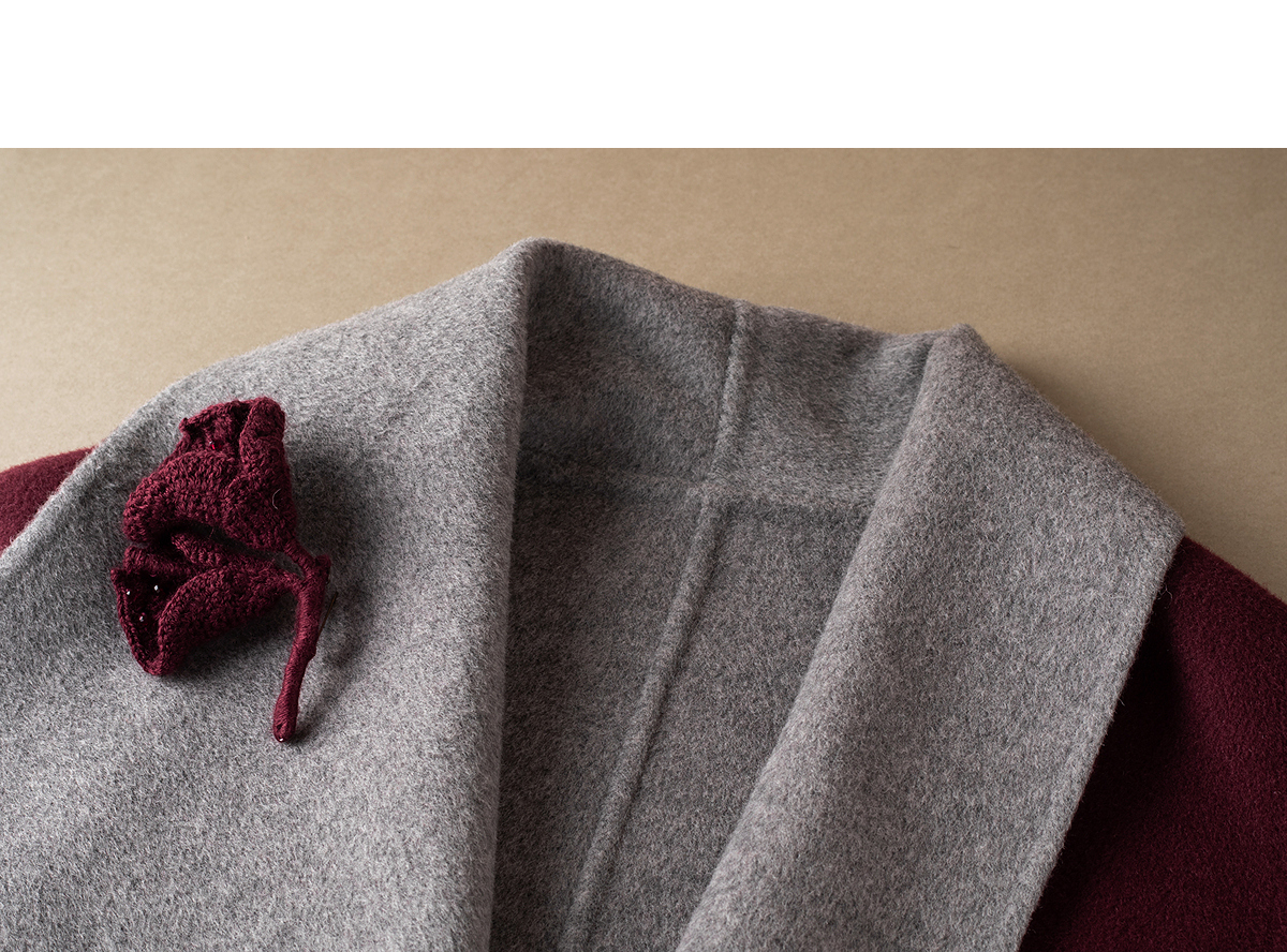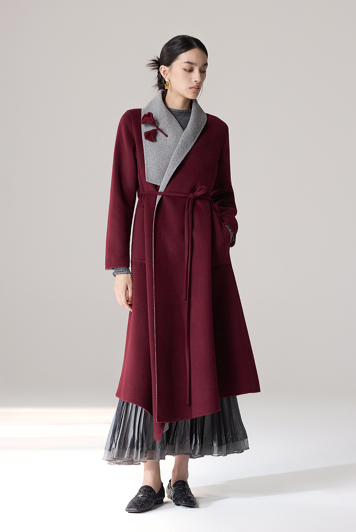 【林栖设计小店】绵羊毛双面呢外套手钩花翻领气质长款2025秋冬新款大衣女1954014
