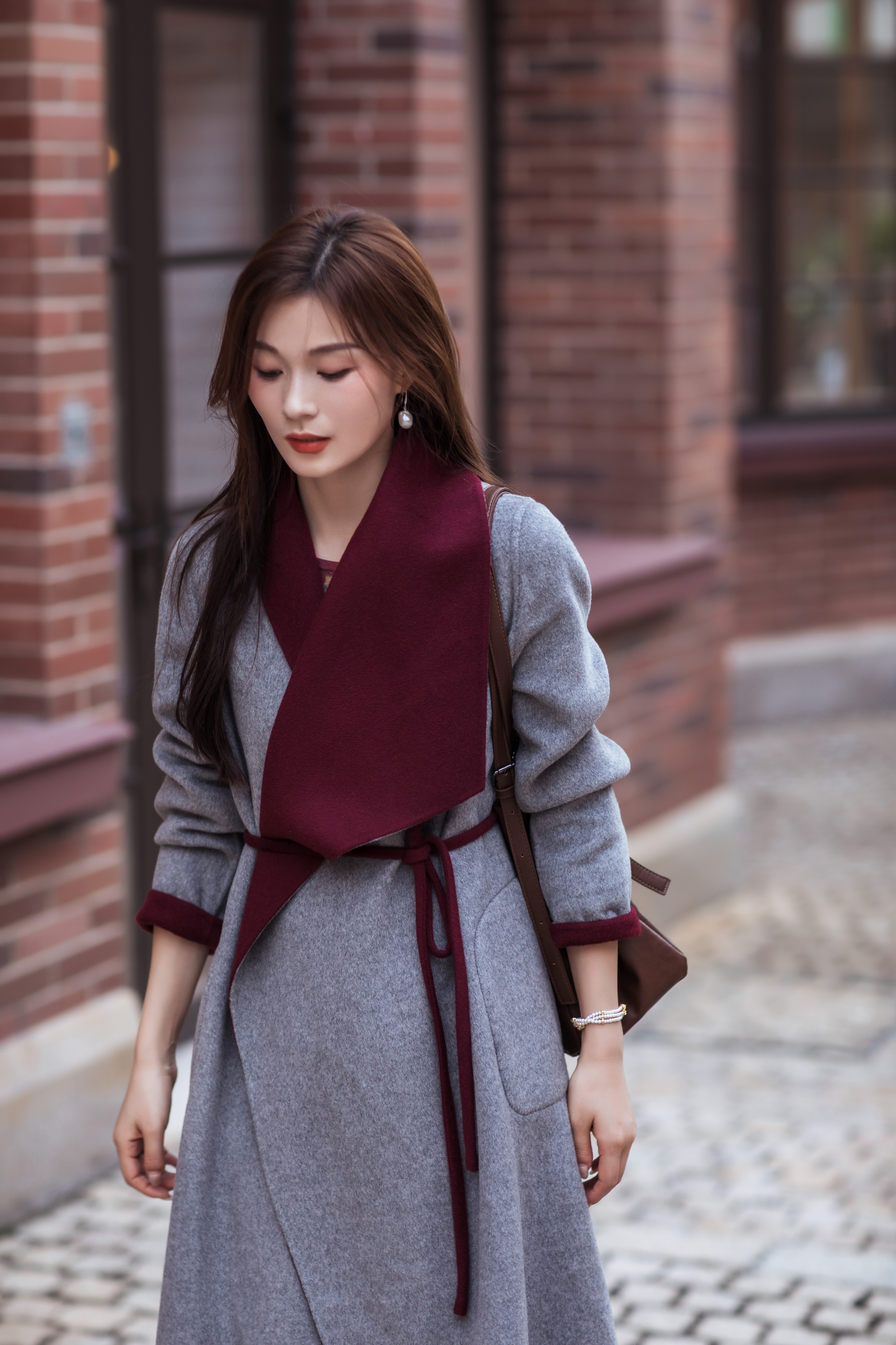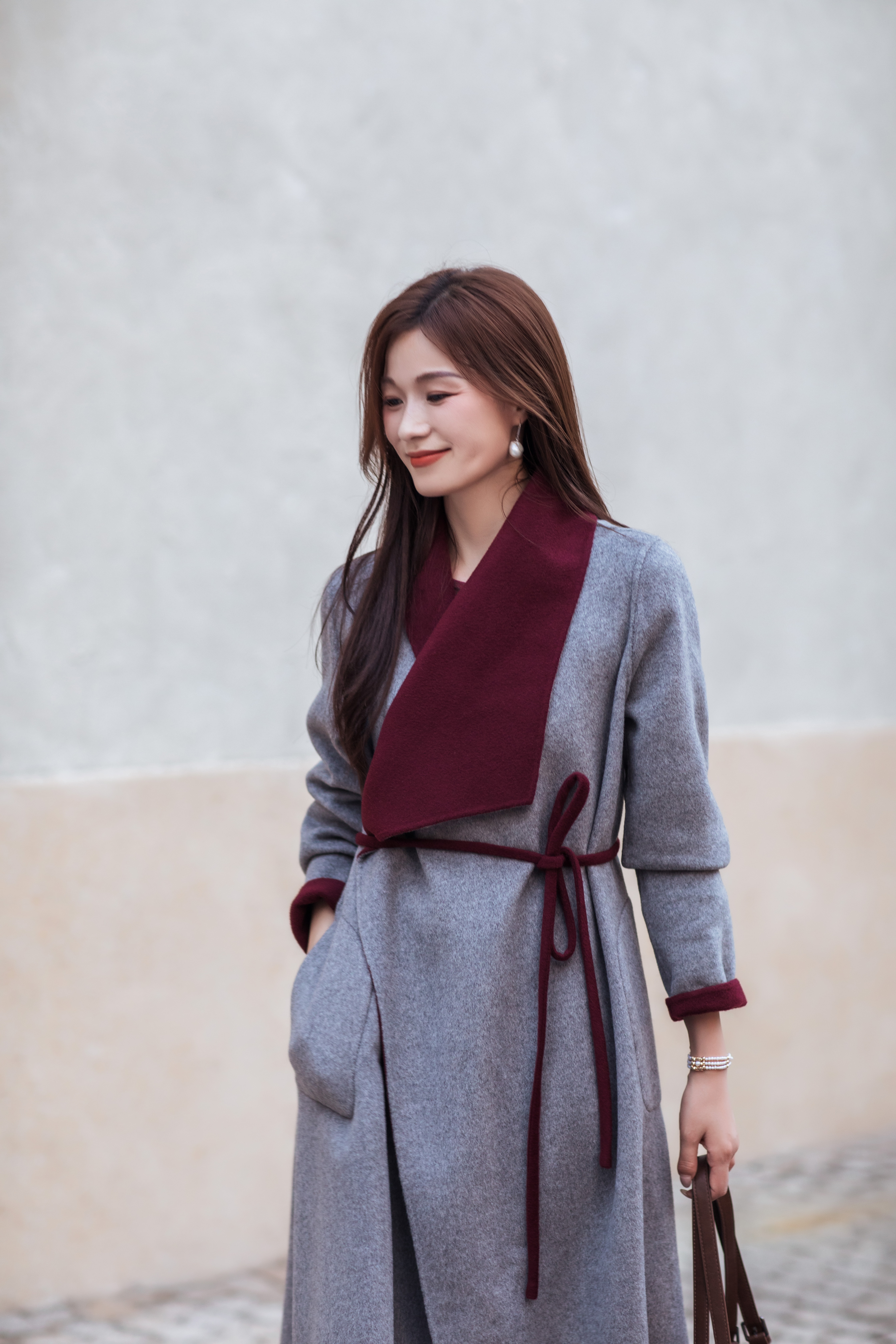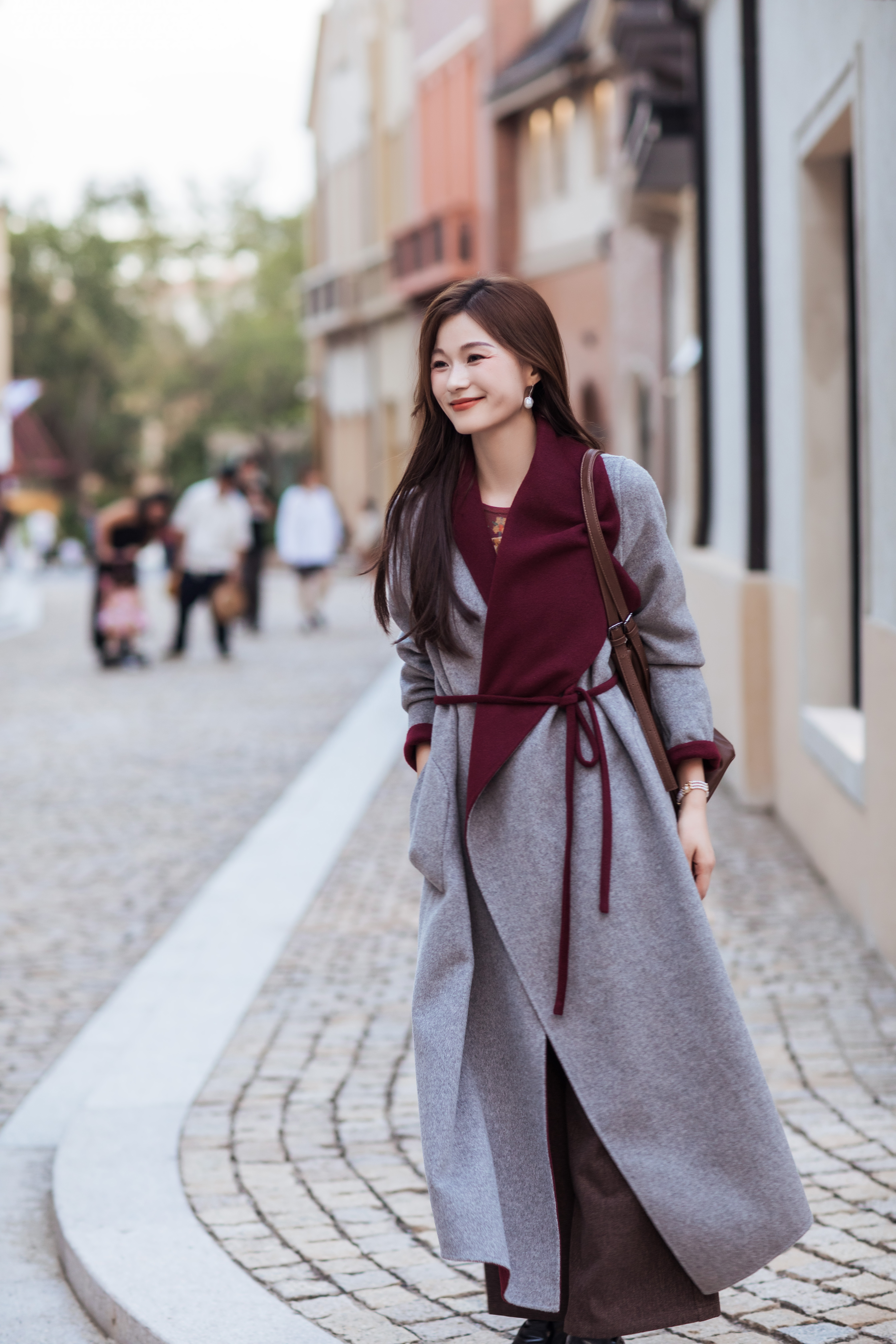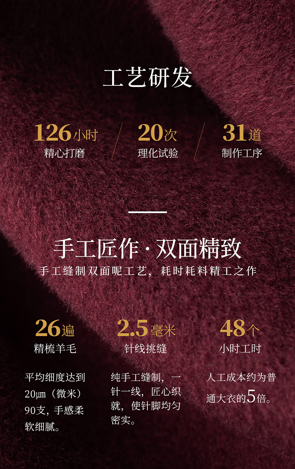 【林栖设计小店】绵羊毛双面呢外套手钩花翻领气质长款2025秋冬新款大衣女1954014