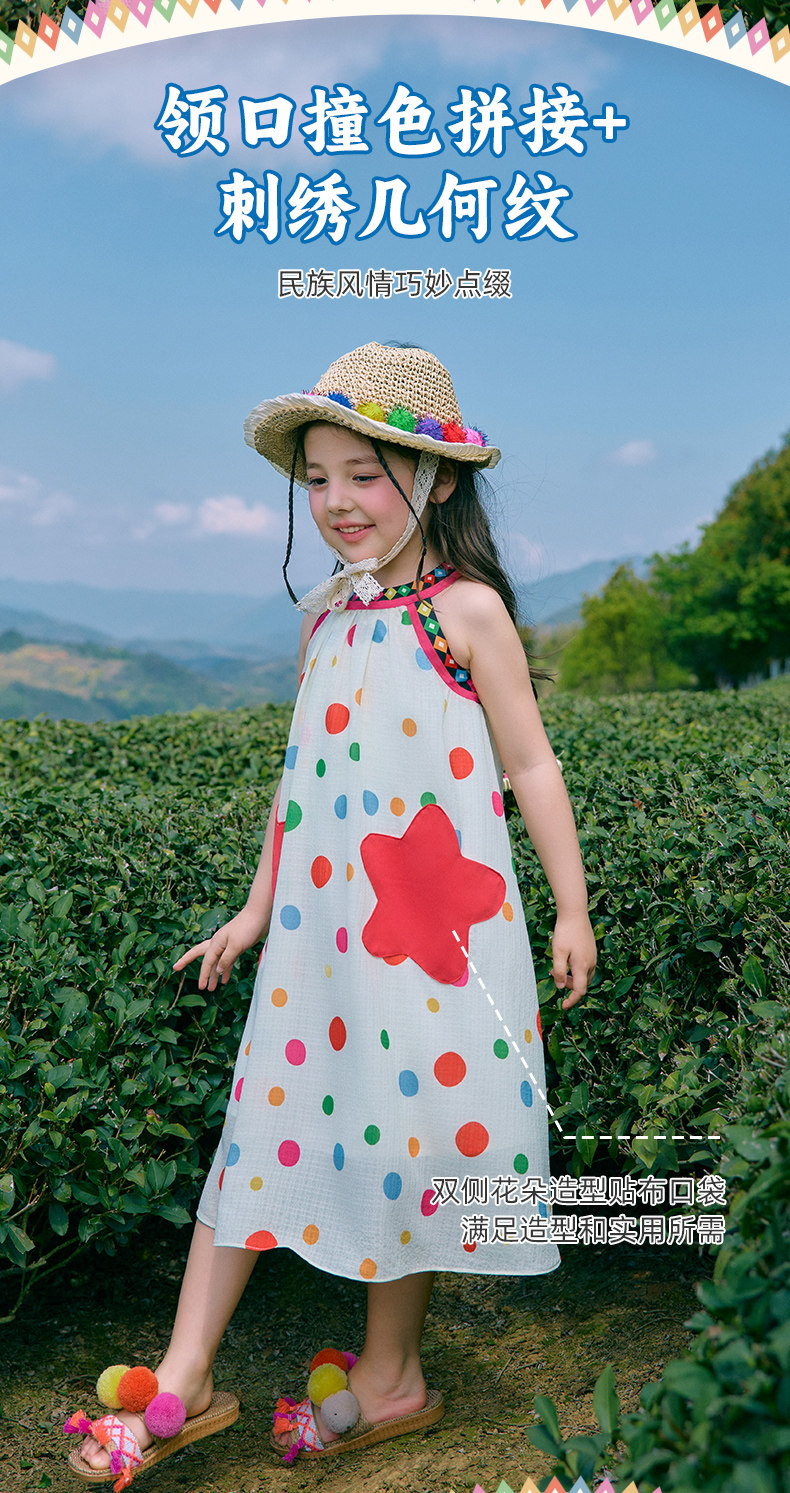 年衣童装儿童无袖连衣裙女童夏季新款民族挂脖露肩A字长裙吊带裙