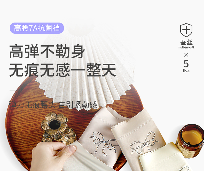 【初秋福利,樱姿娜803蚕丝内裤+高腰蝴蝶裤组合】100%桑蚕丝底裆,丝滑锦纶裤身,温柔蕾丝款6条装+高腰蝴蝶裤