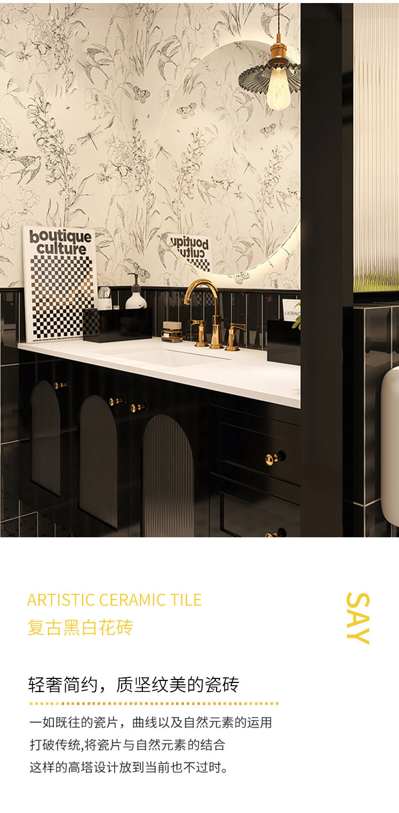 小法式花砖瓷砖卫生间300x300浴室墙砖地砖黑白复古厨房酷黑厕所 商品图4