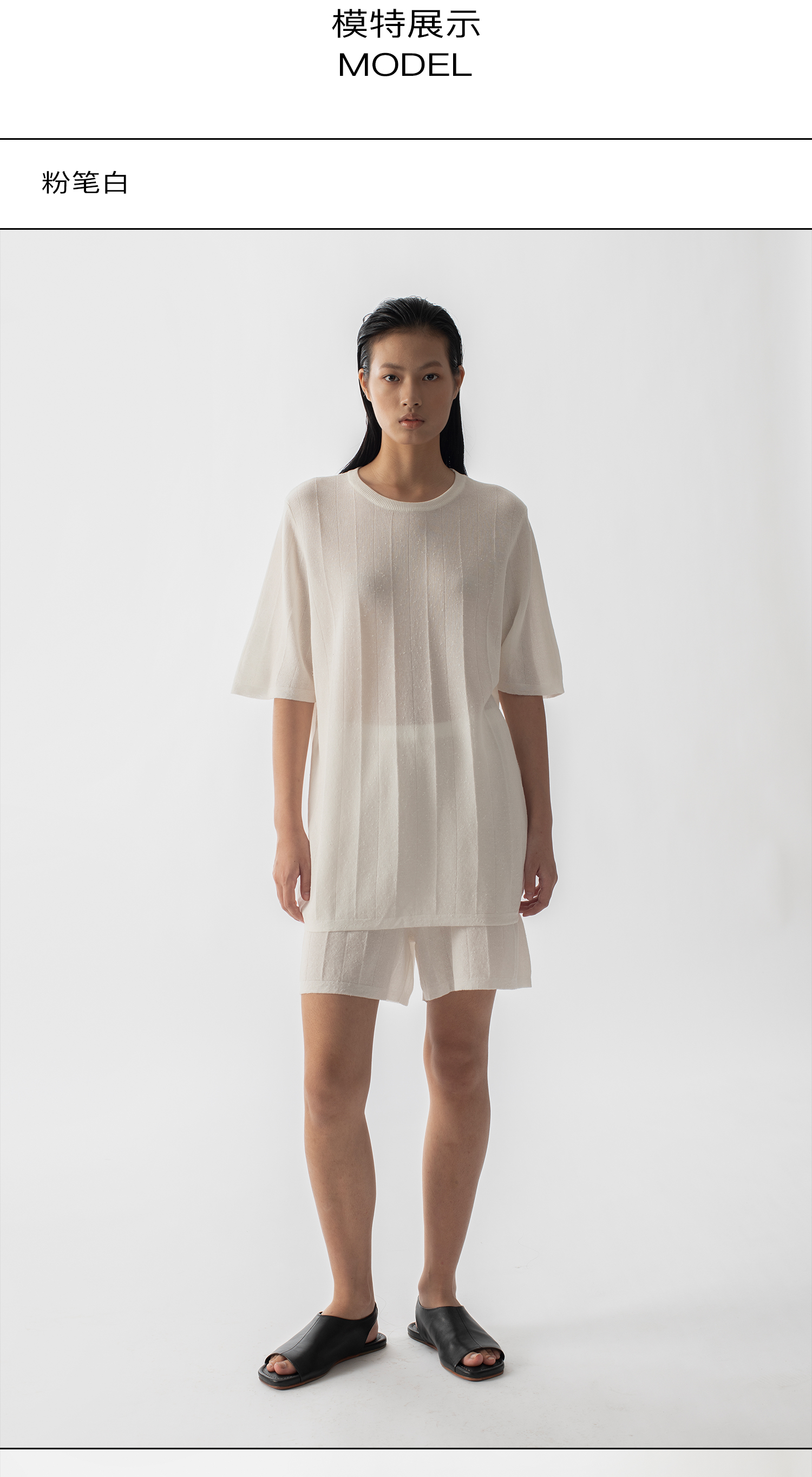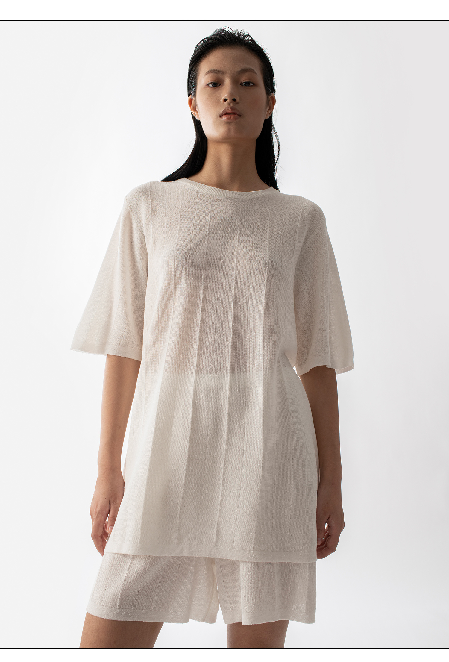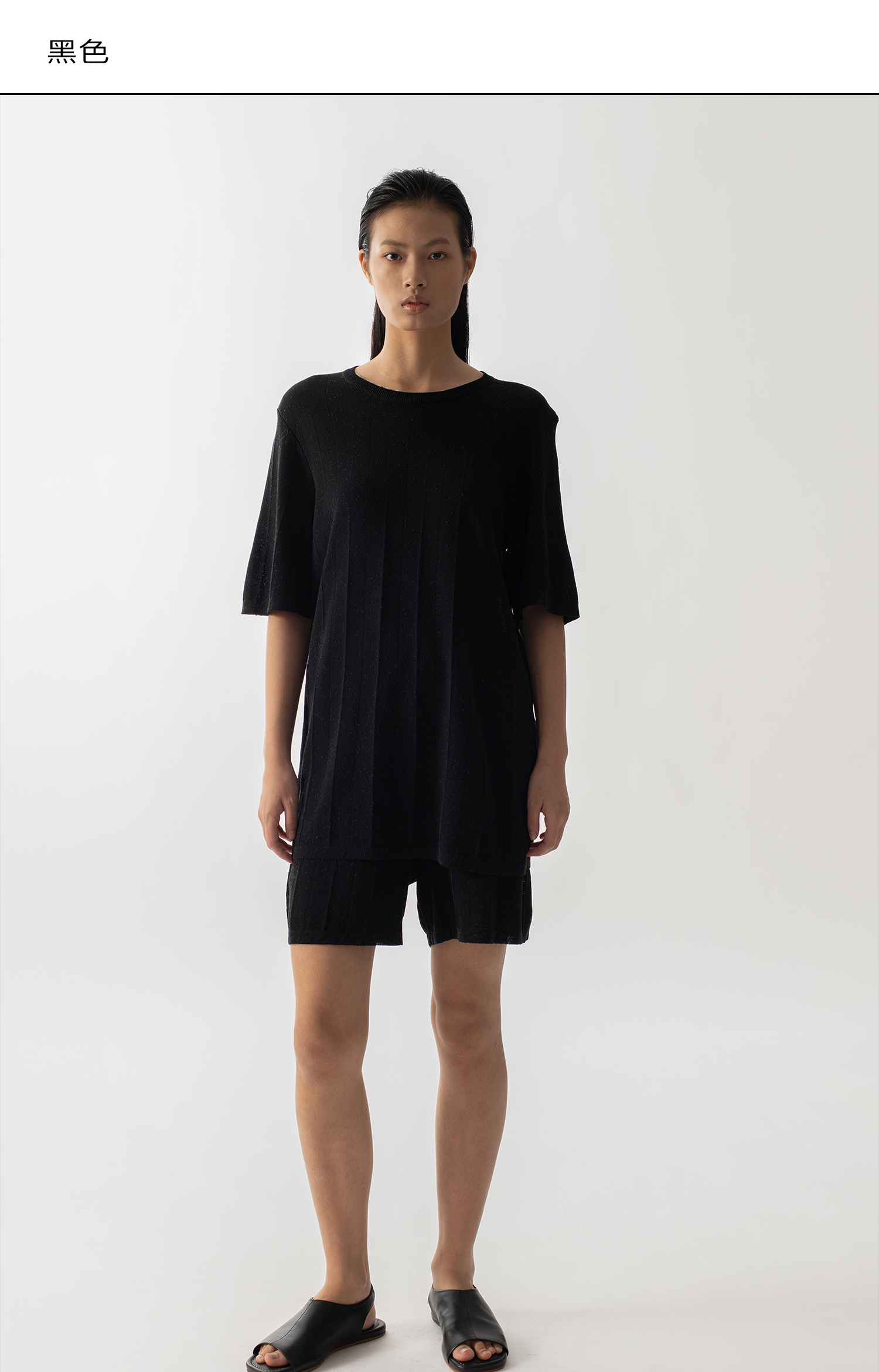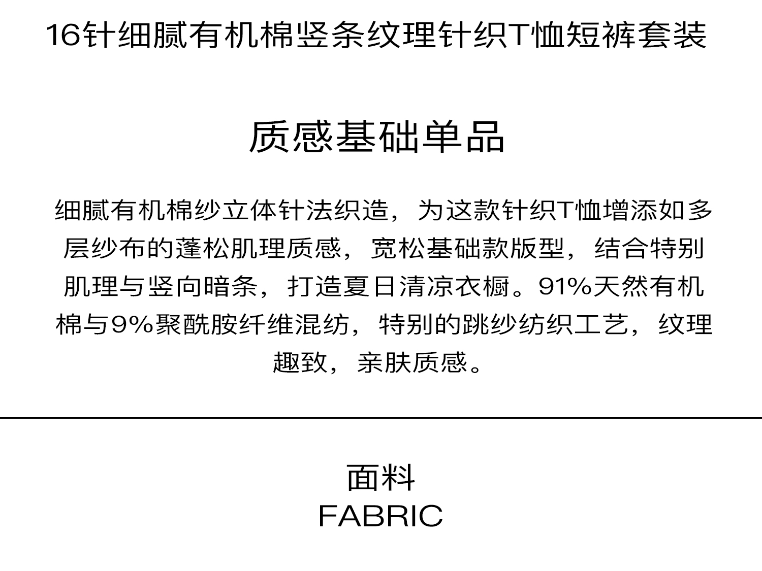 322工房新款16针芝麻点针法有机棉混纺针织T恤短裤两件套