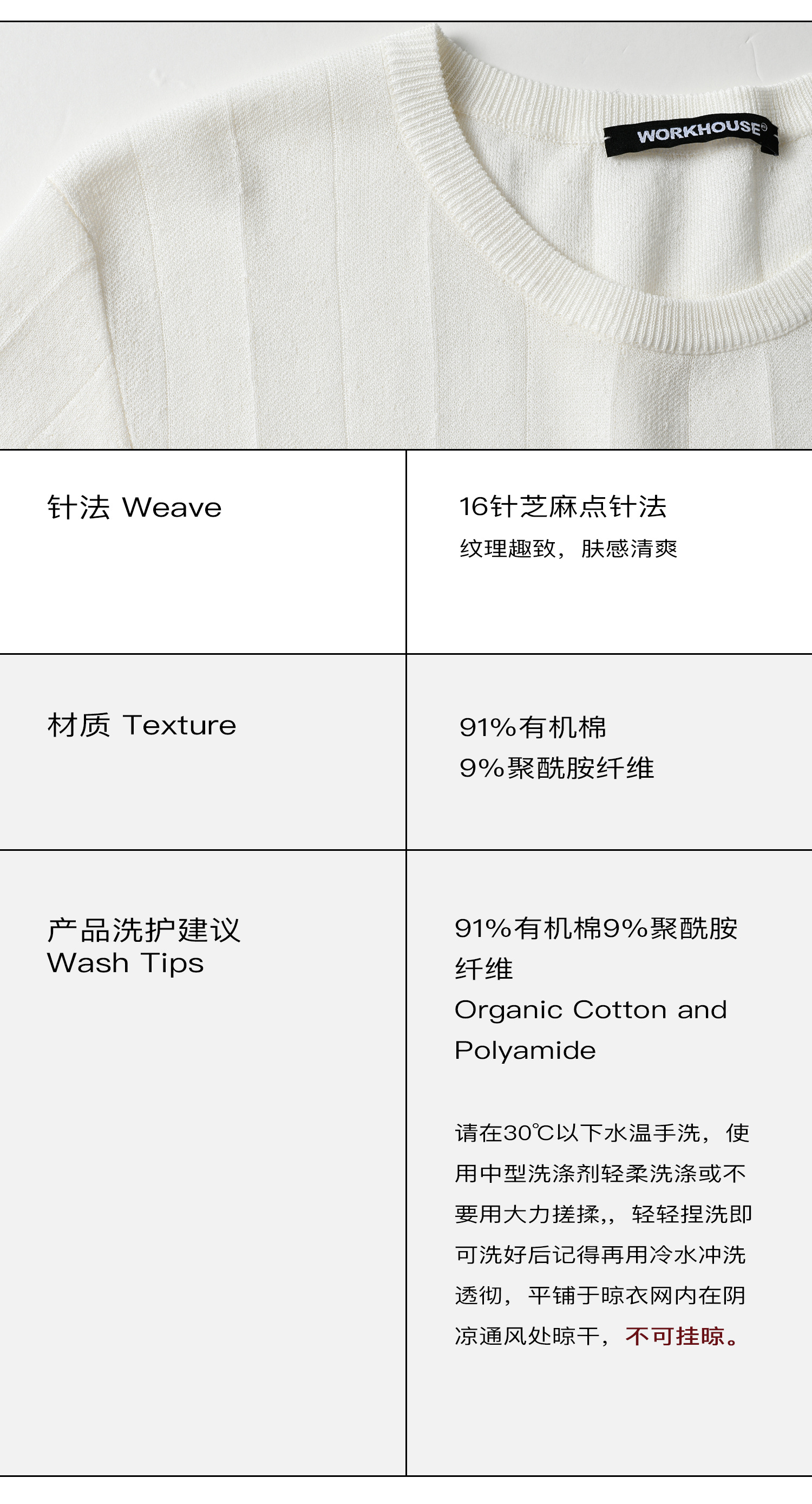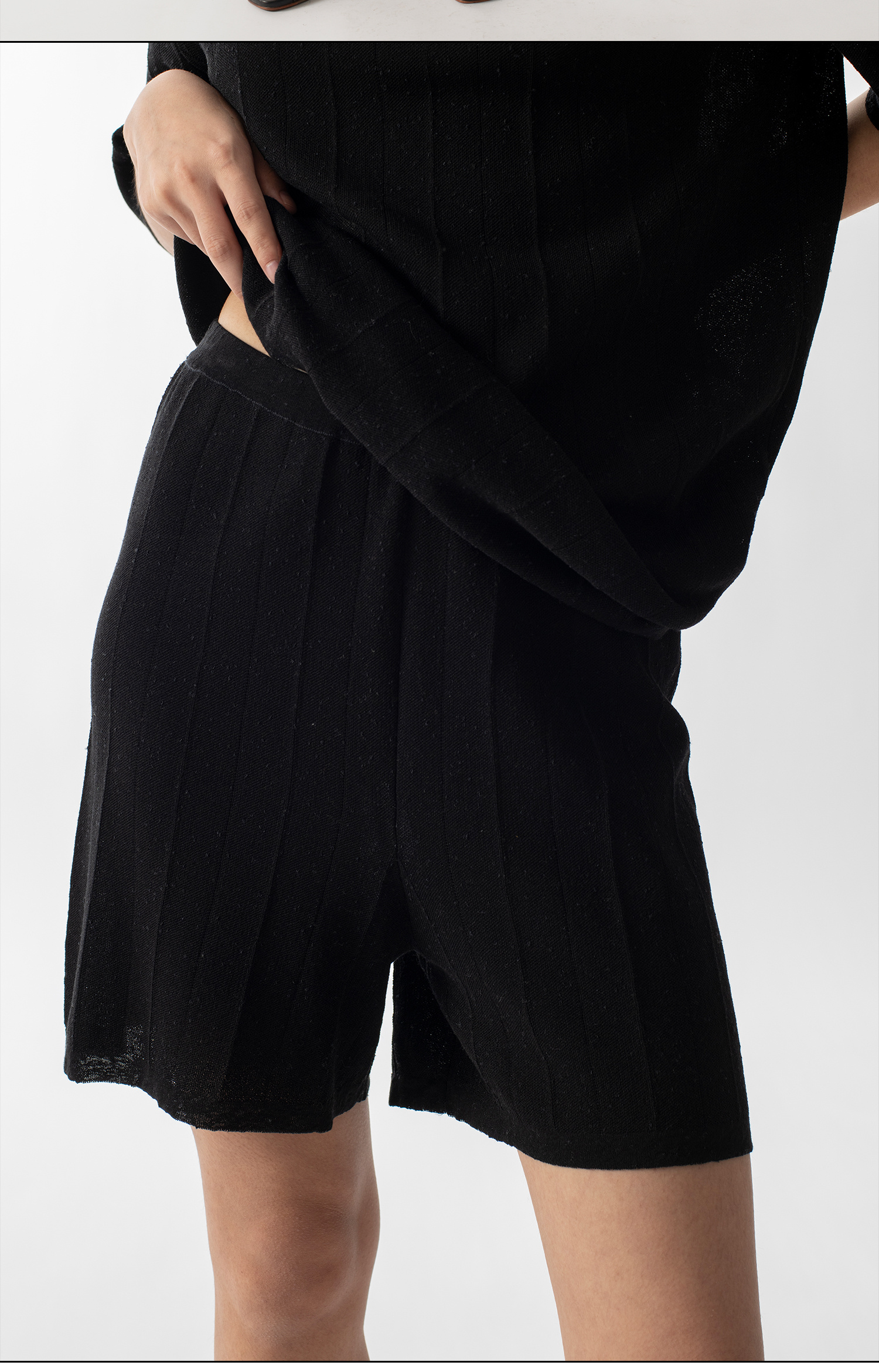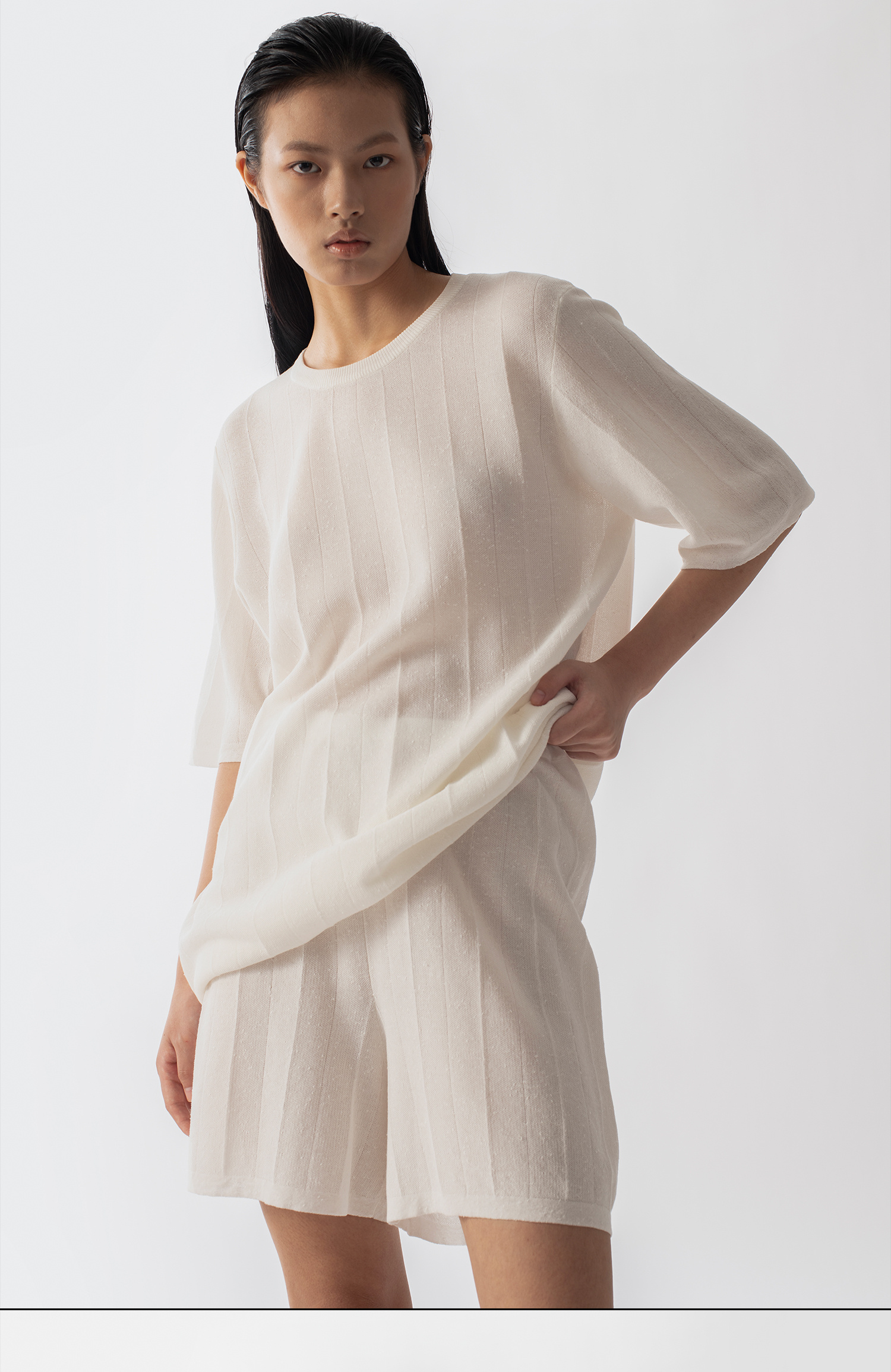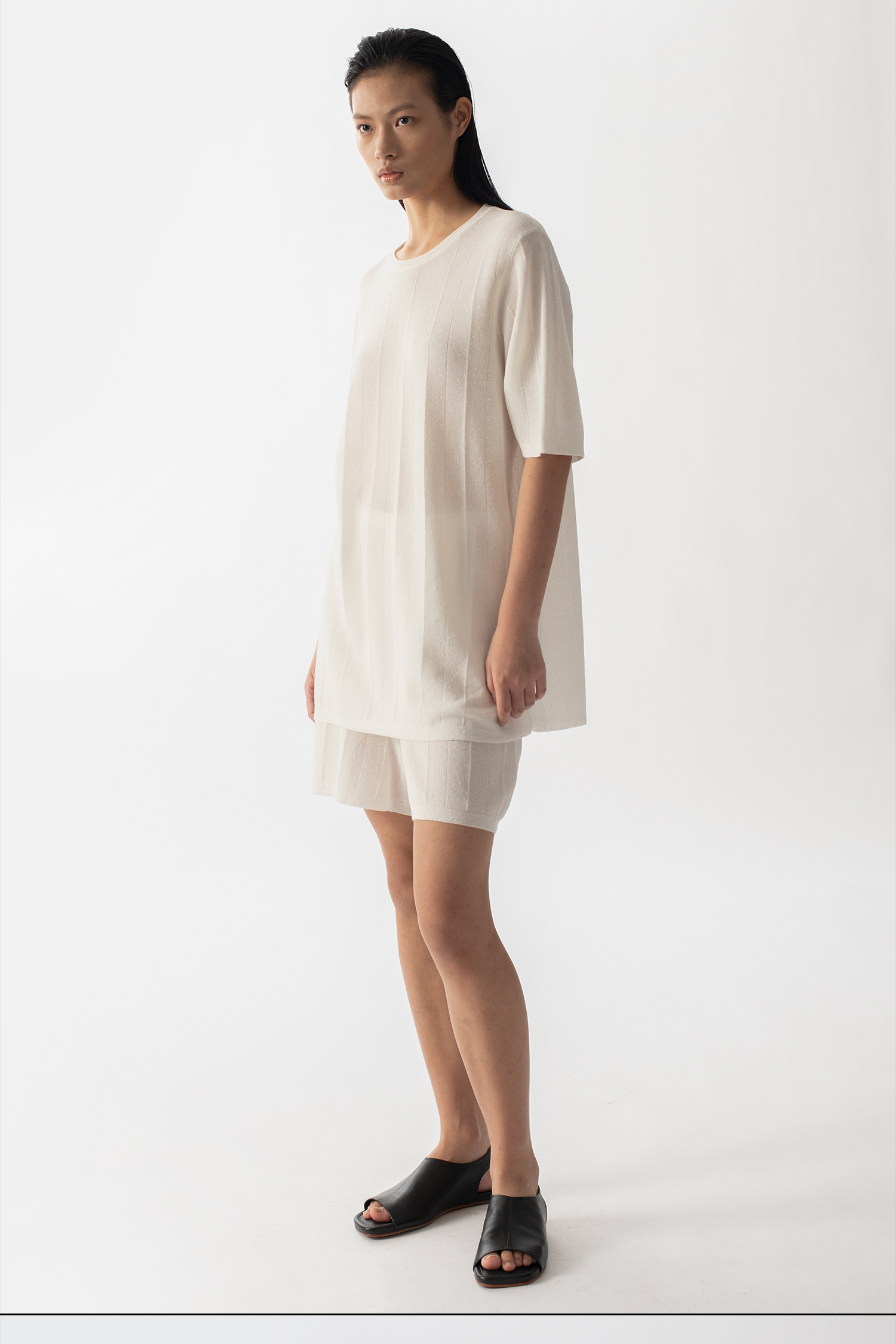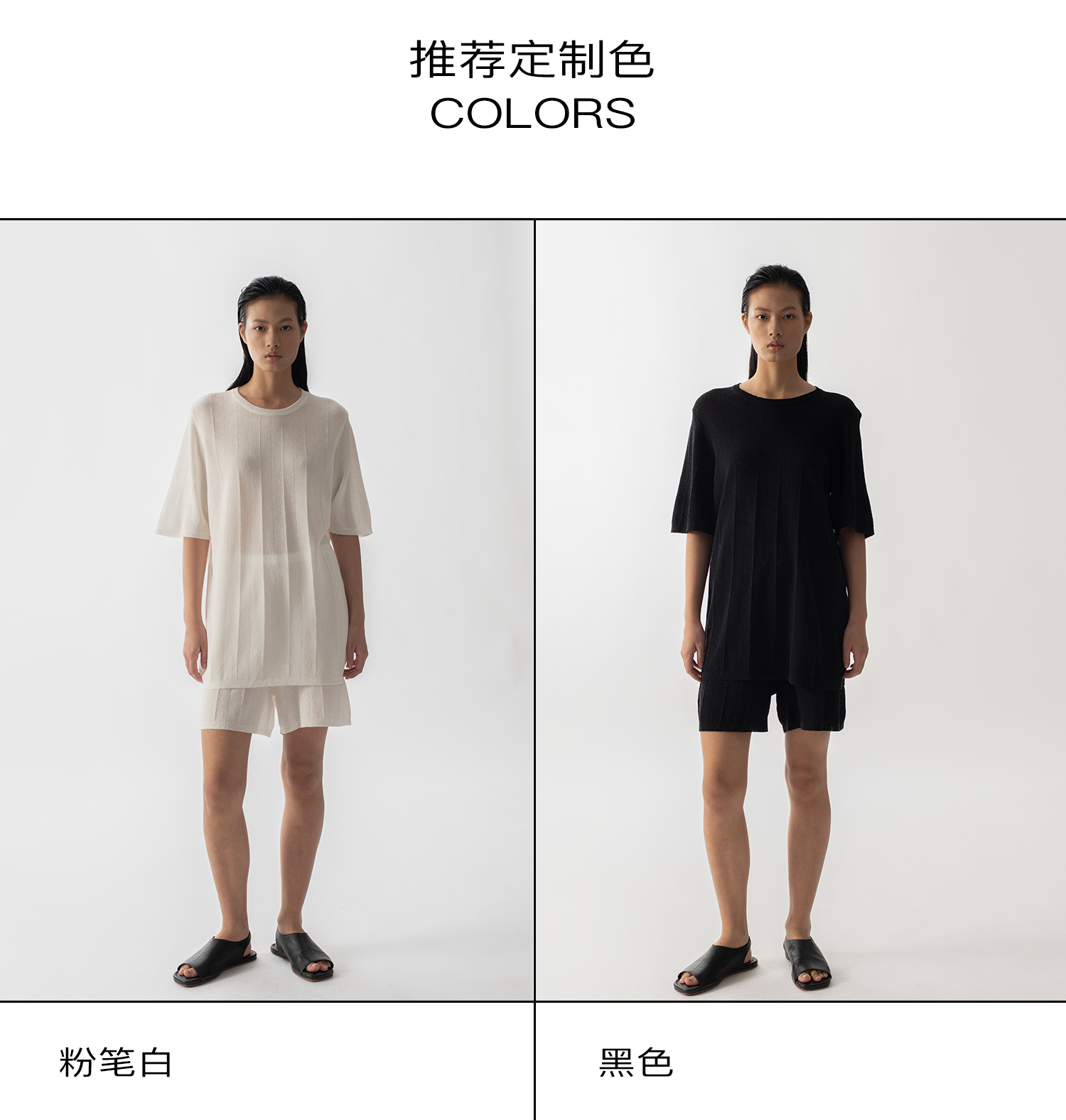 322工房新款16针芝麻点针法有机棉混纺针织T恤短裤两件套
