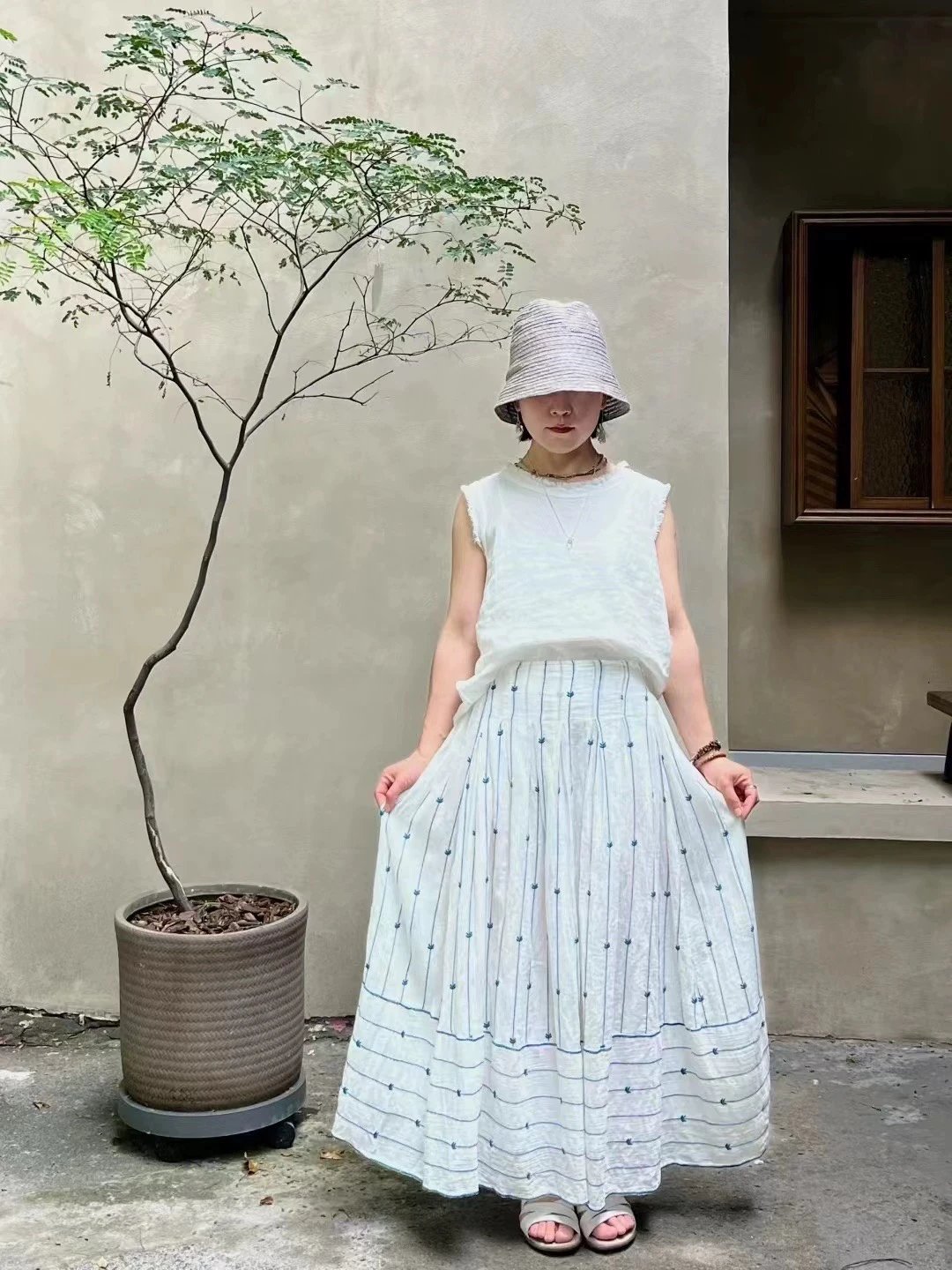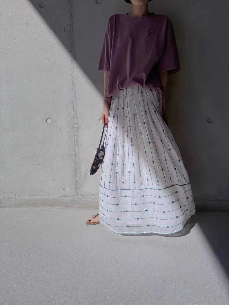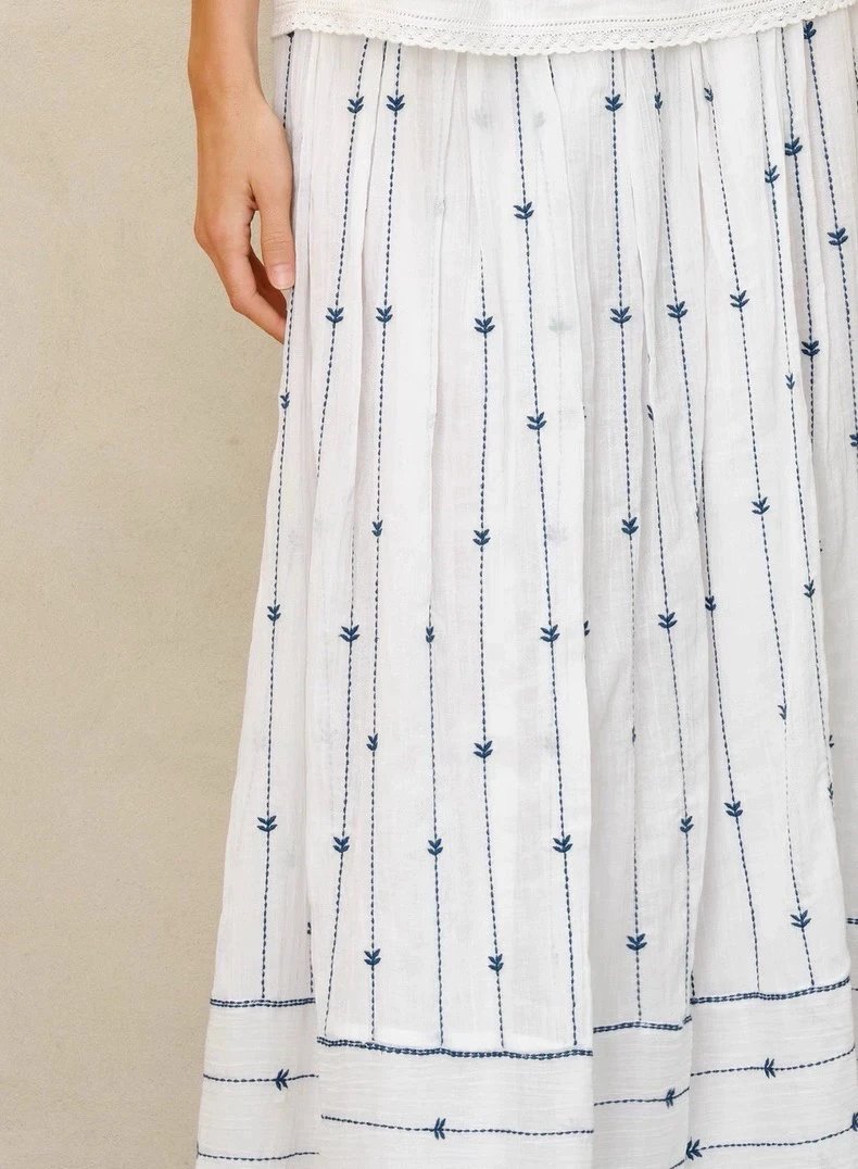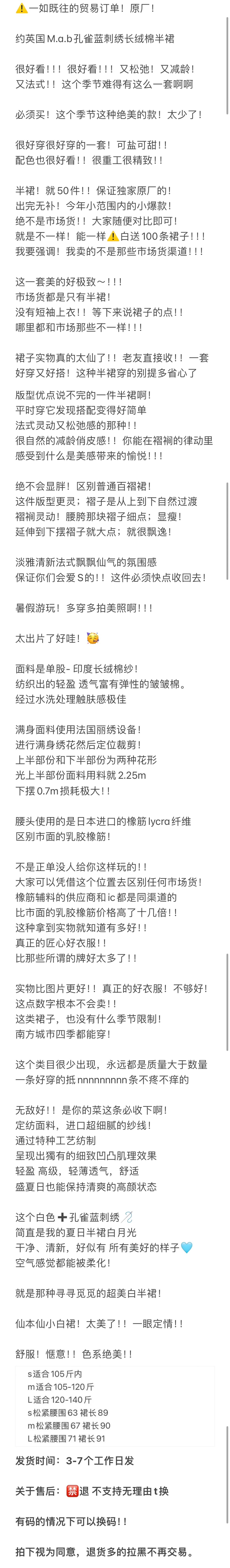 无补 实际库存 英国小众 mad孔雀刺绣半裙 印度长绒棉 纱法国机绣淡雅清新法式飘逸仙女半裙