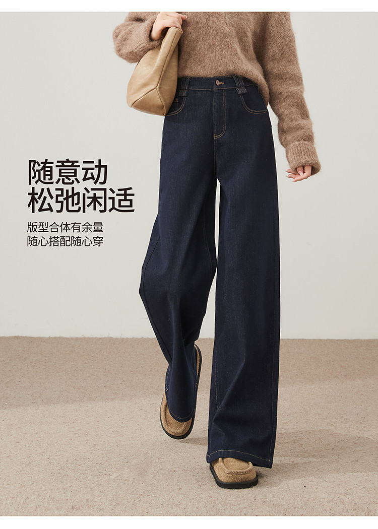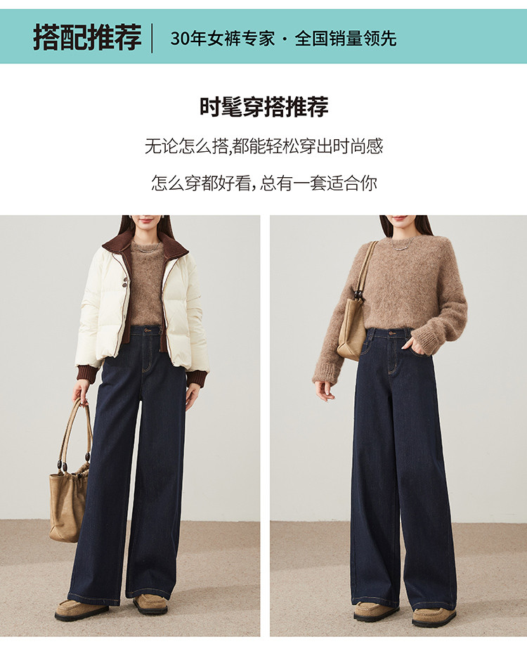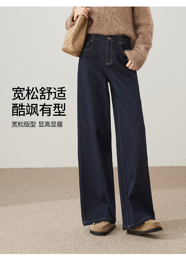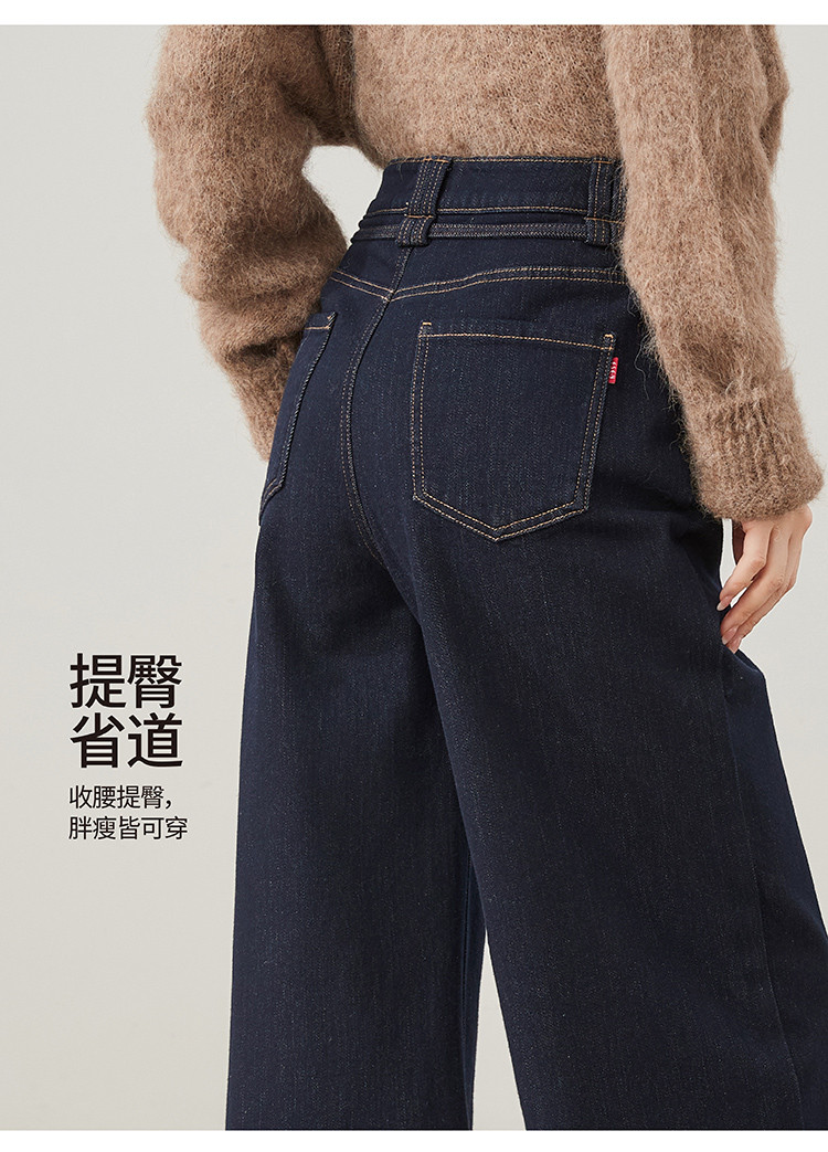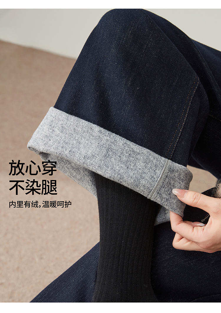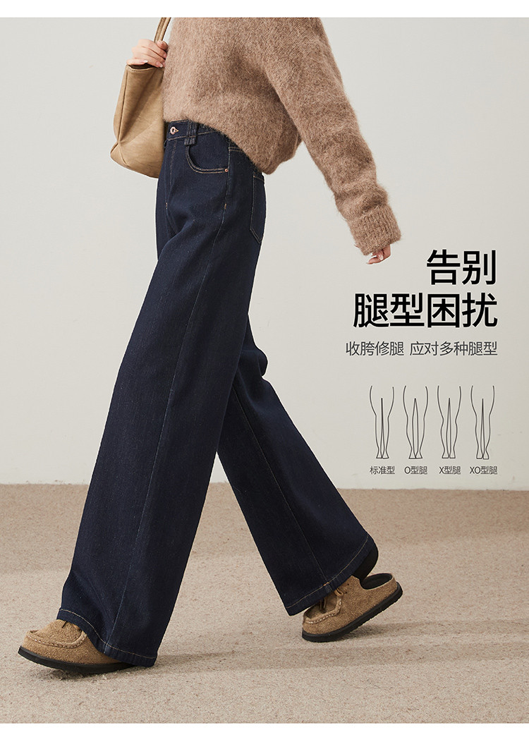 【薄绒-阔腿裤】逸阳冬不易褪色时尚细长腰带保暖拉毛厚牛仔阔腿裤8837V