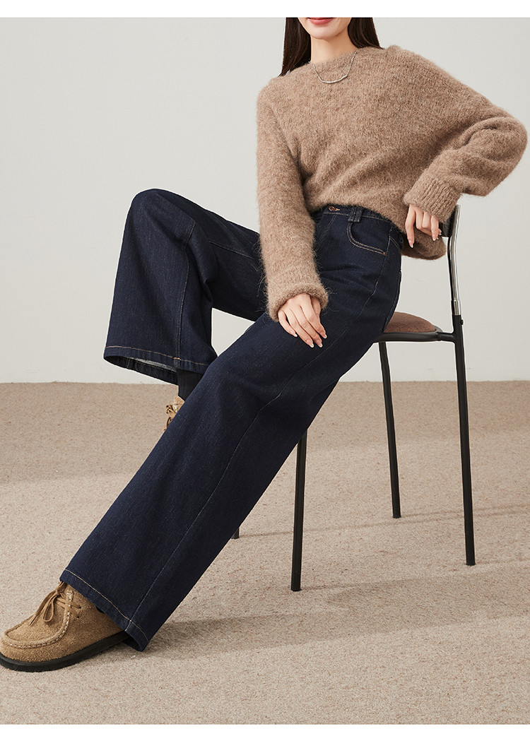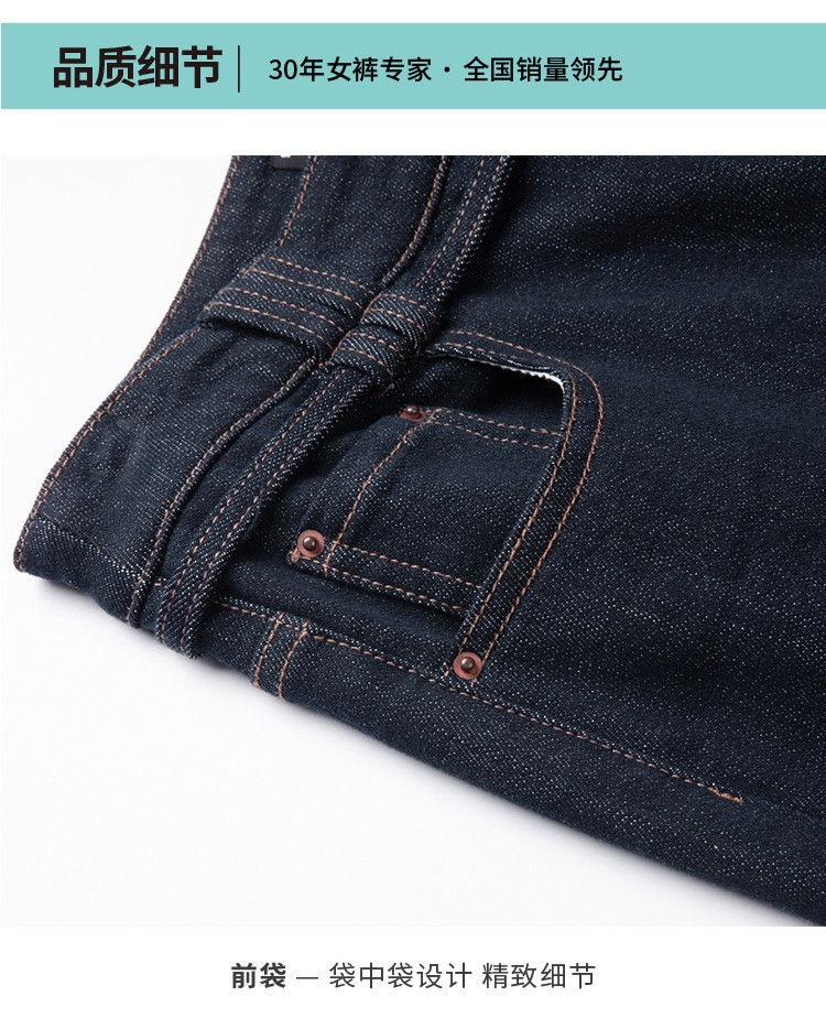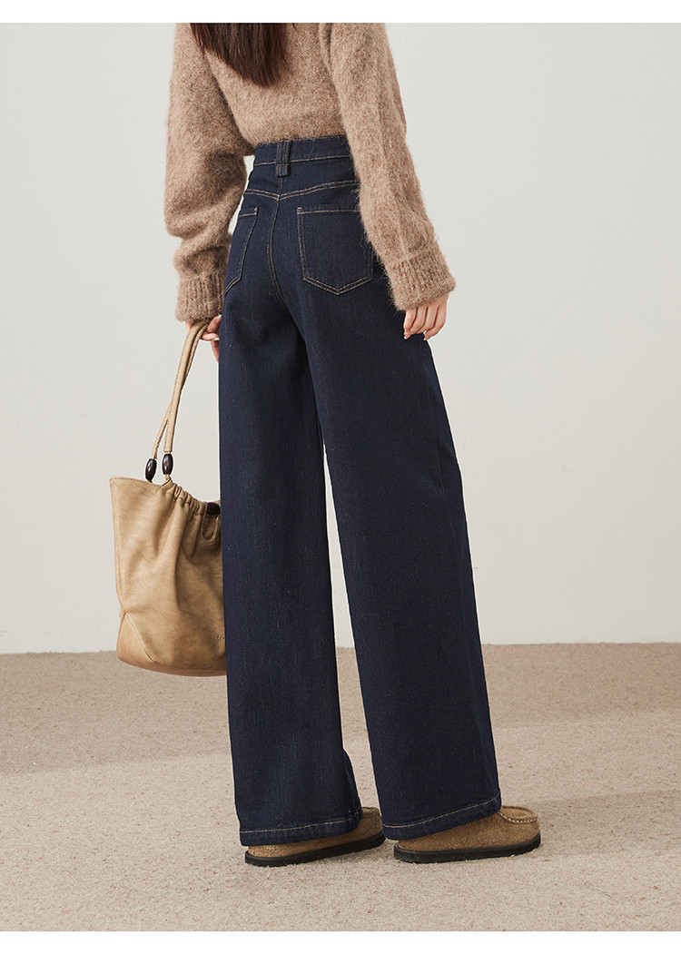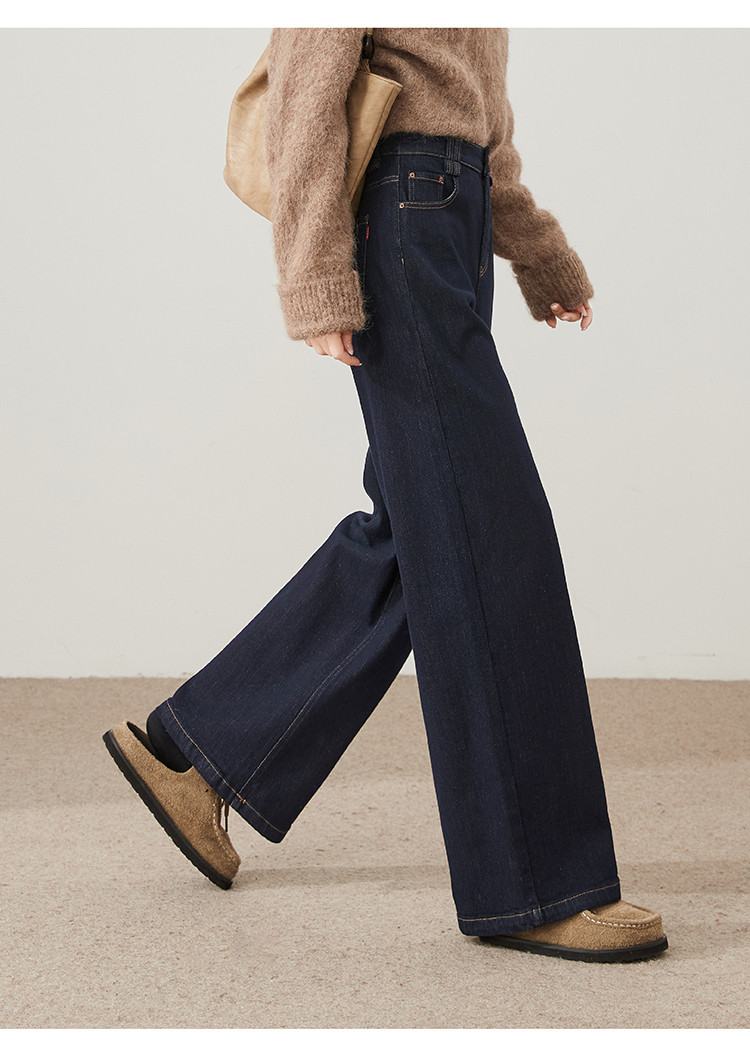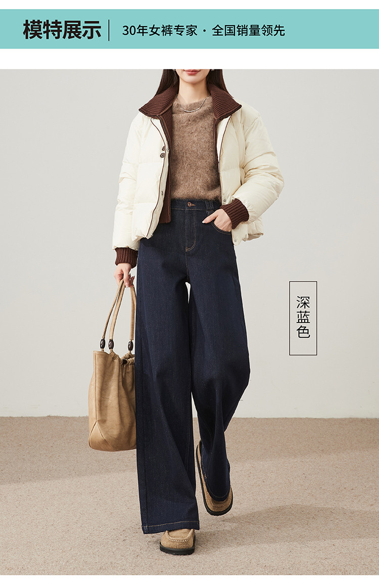 【薄绒-阔腿裤】逸阳冬不易褪色时尚细长腰带保暖拉毛厚牛仔阔腿裤8837V
