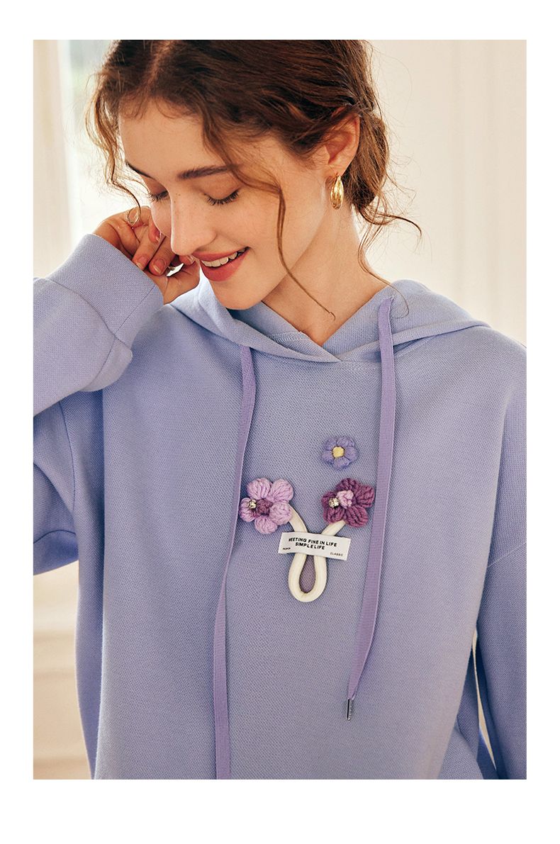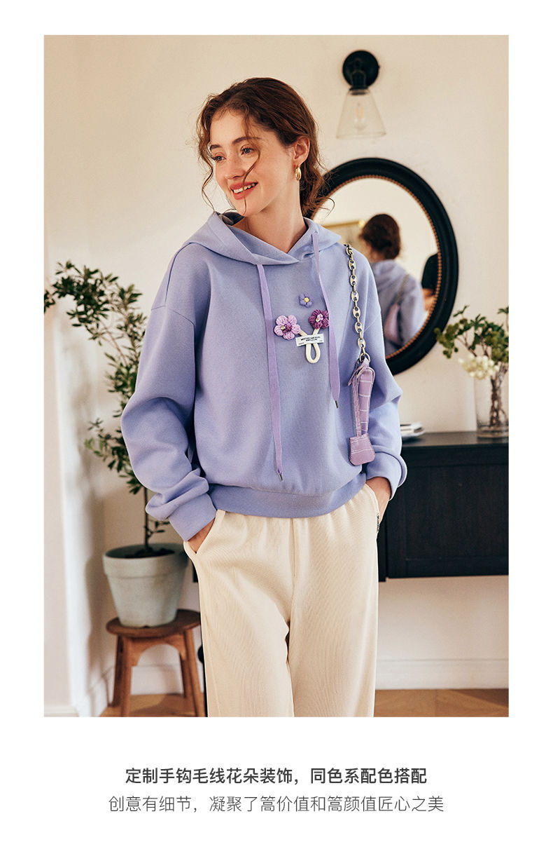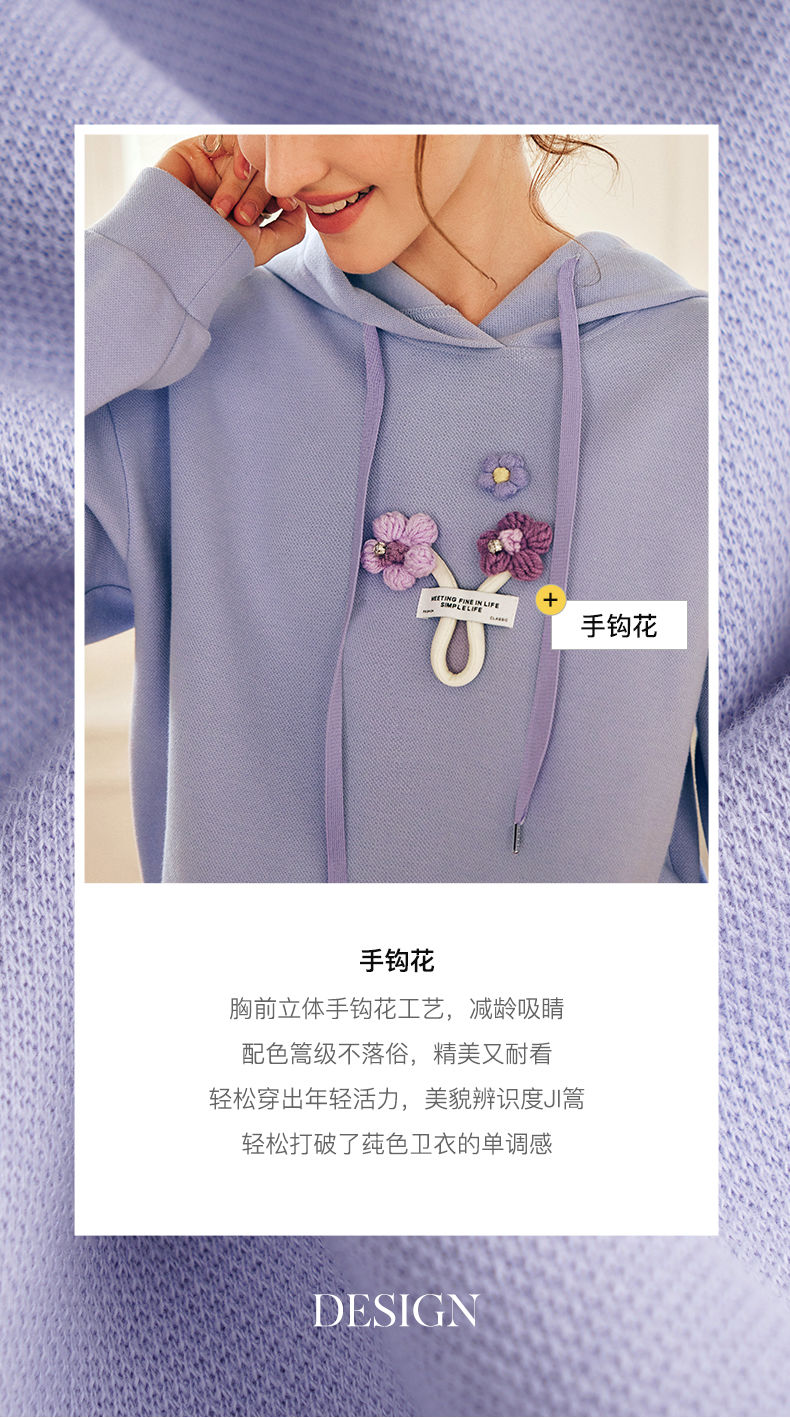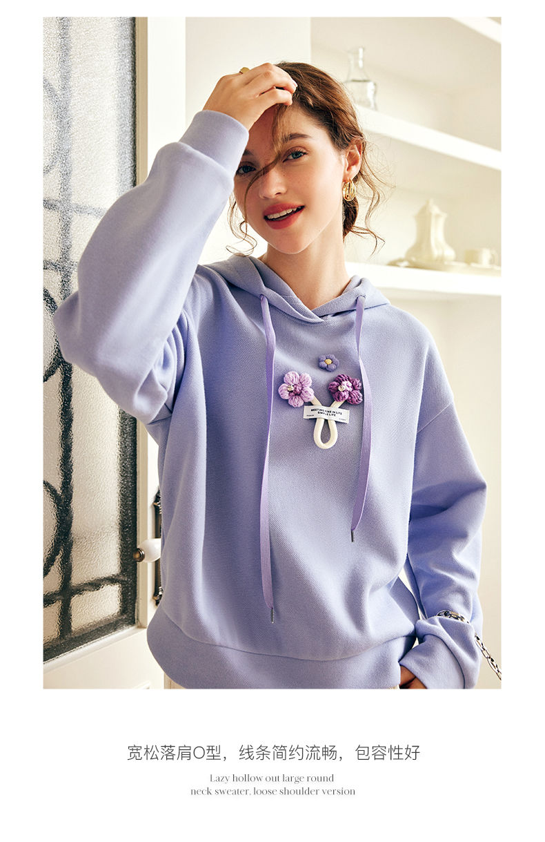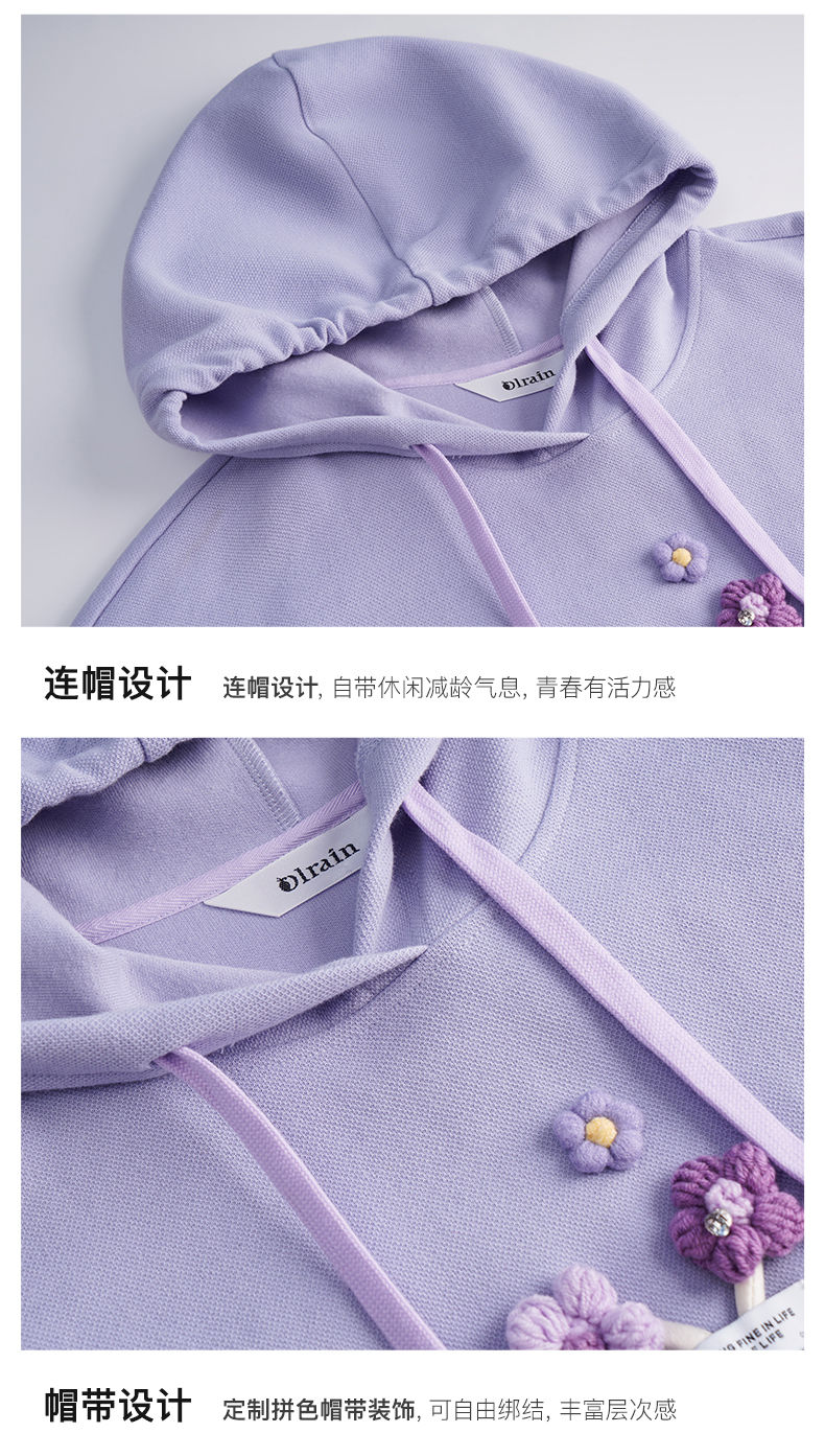 OLrain欧芮儿法式连帽抽绳卫衣女早春2023新款宽松手钩花针织上衣