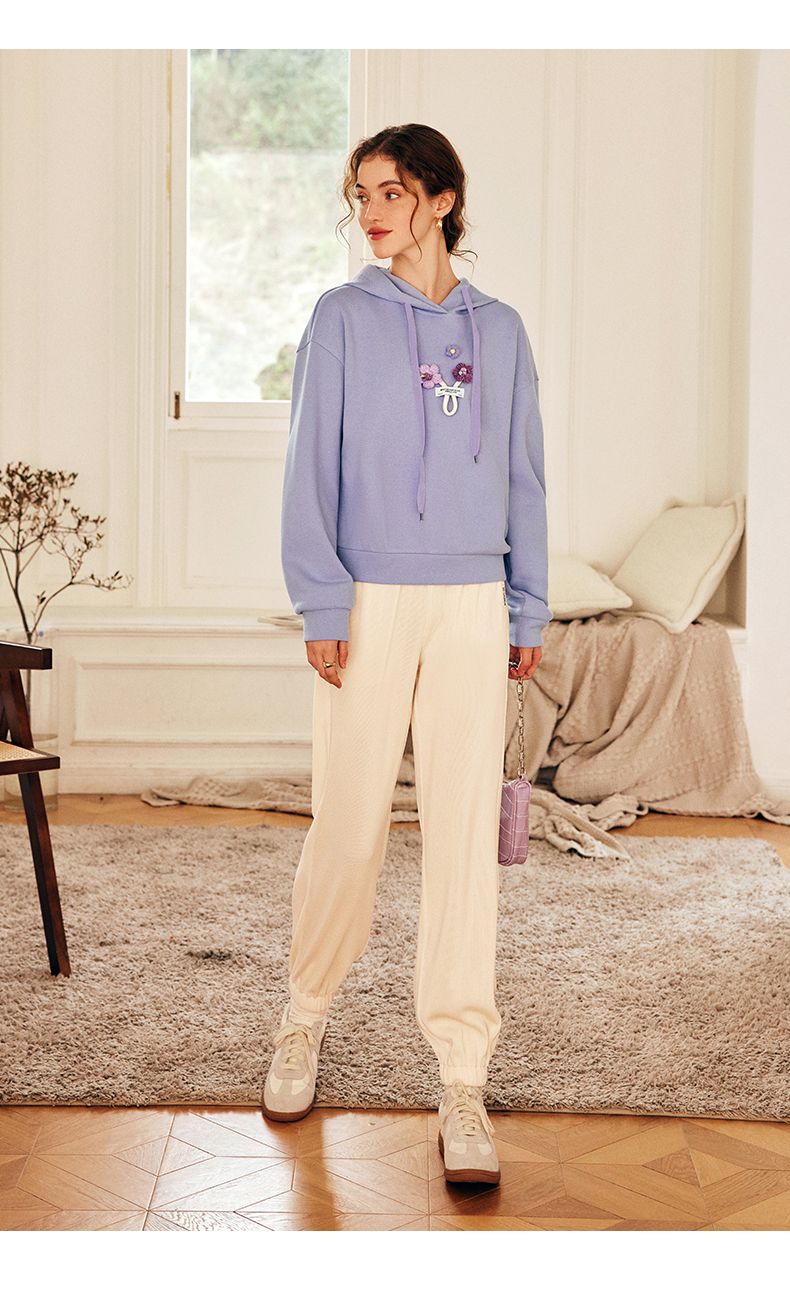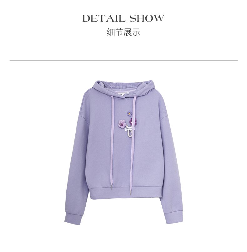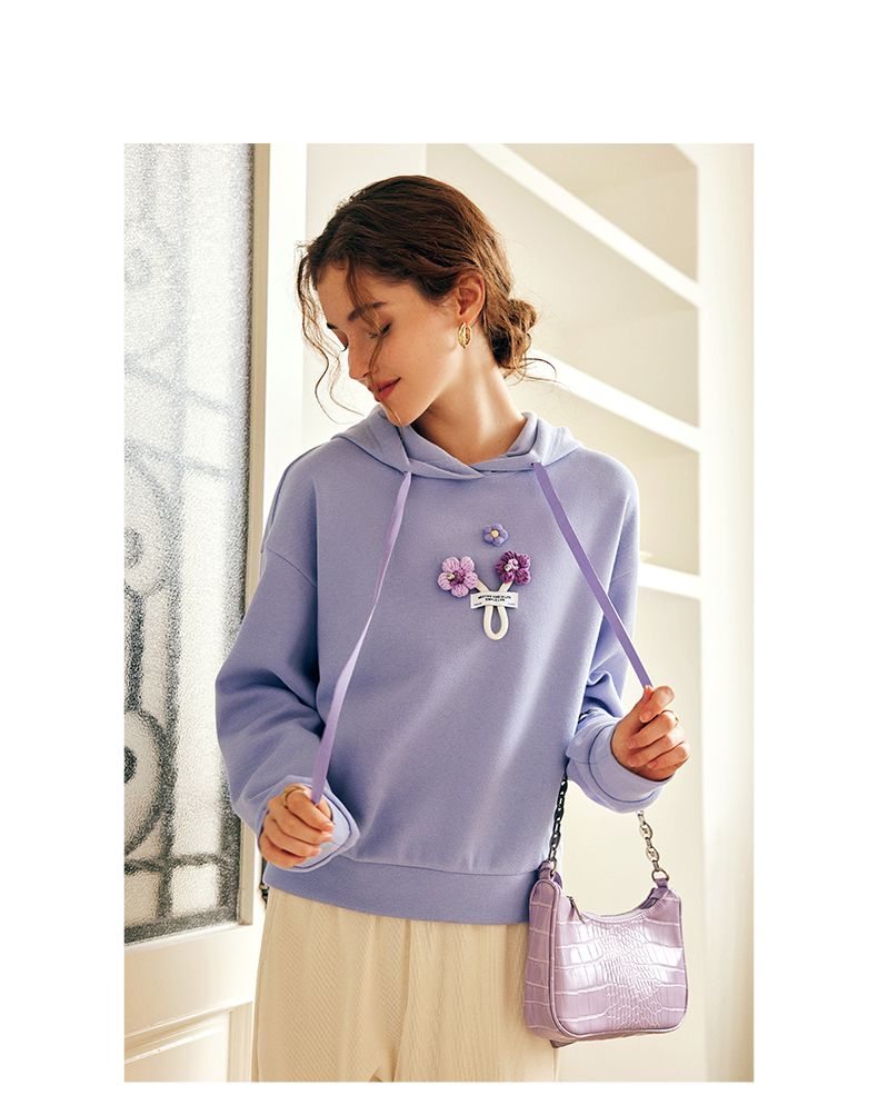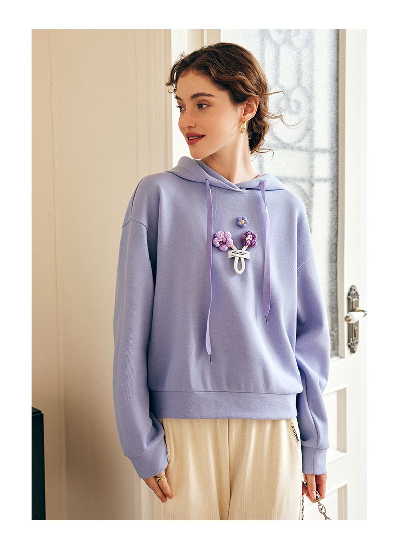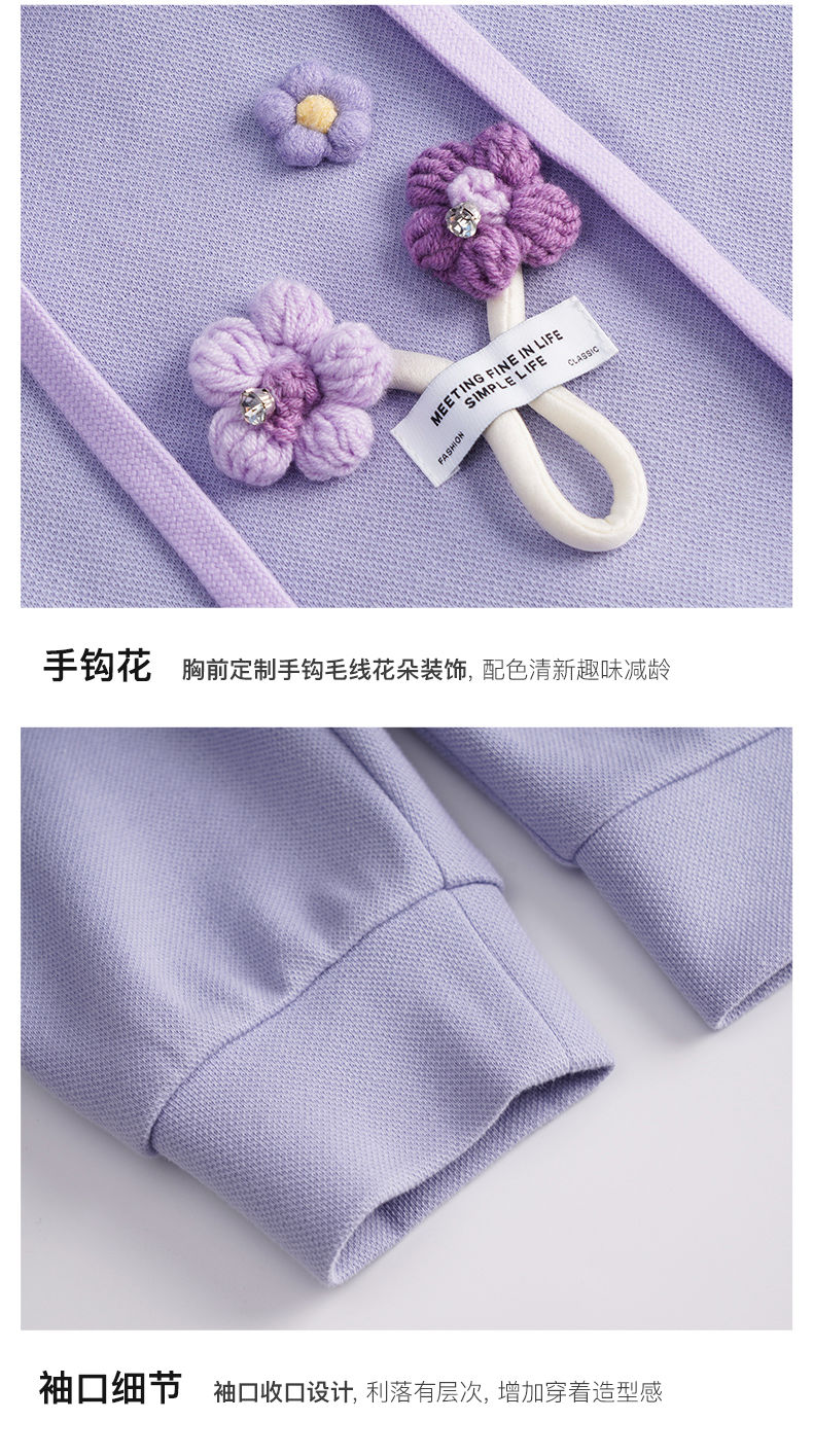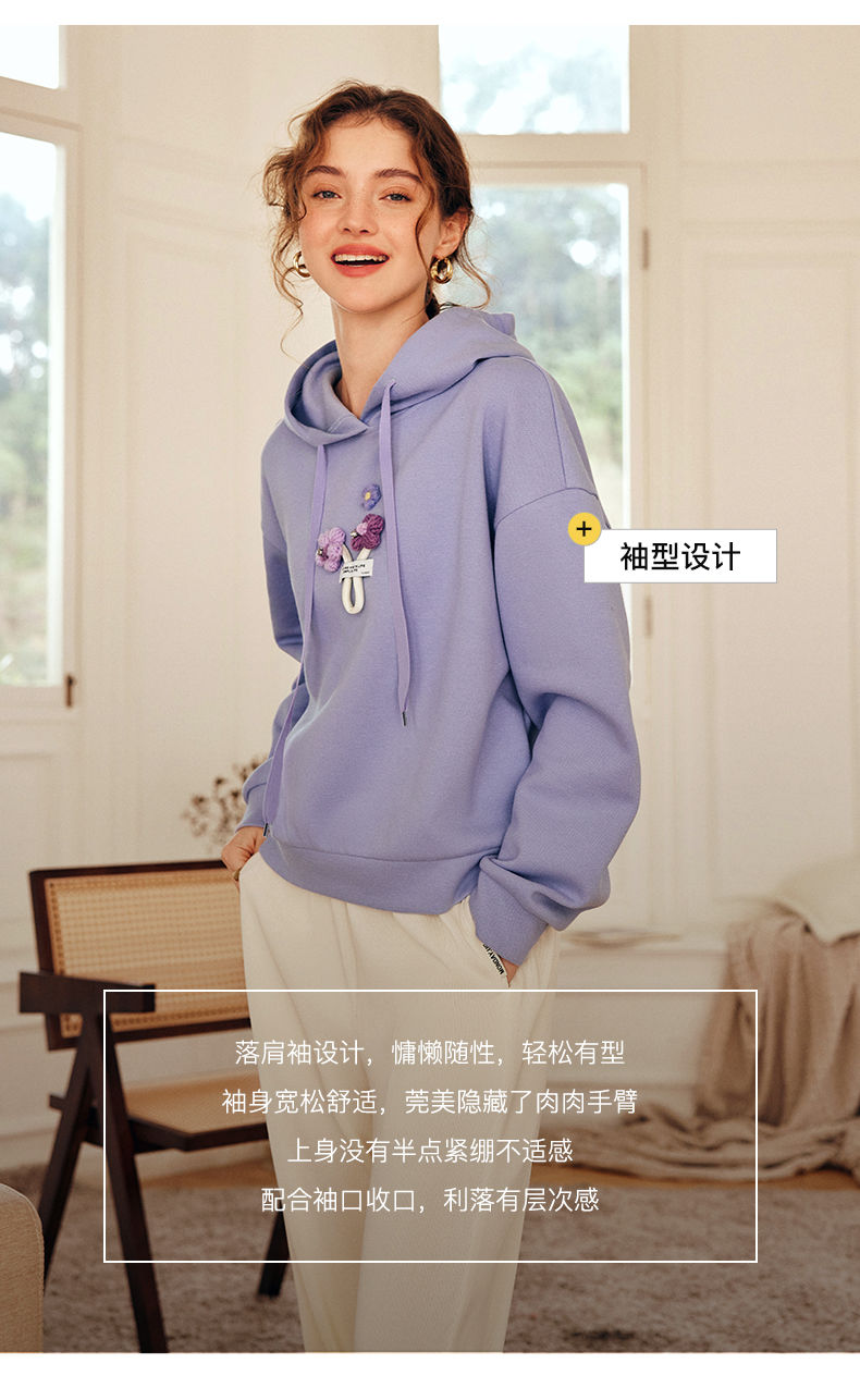 OLrain欧芮儿法式连帽抽绳卫衣女早春2023新款宽松手钩花针织上衣