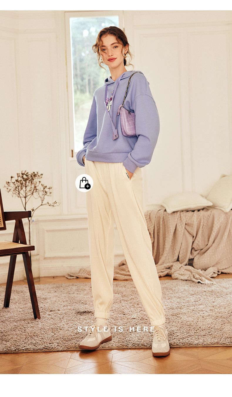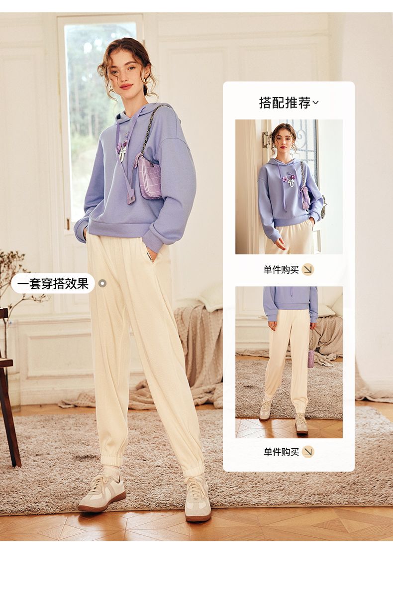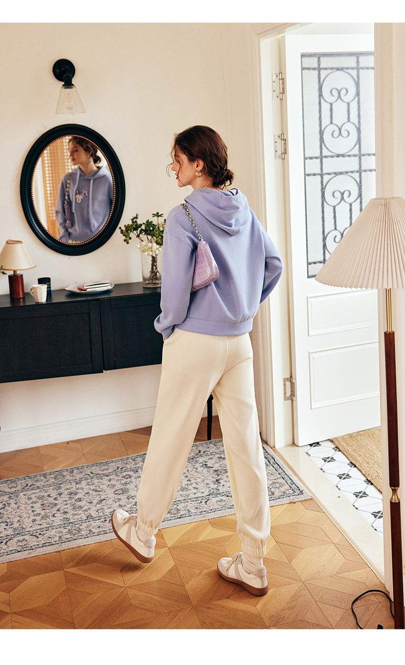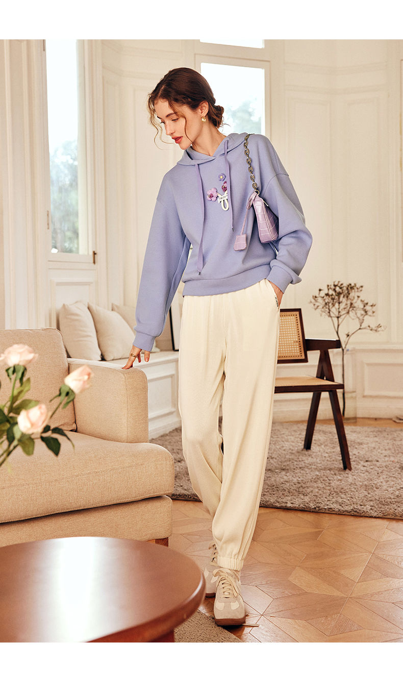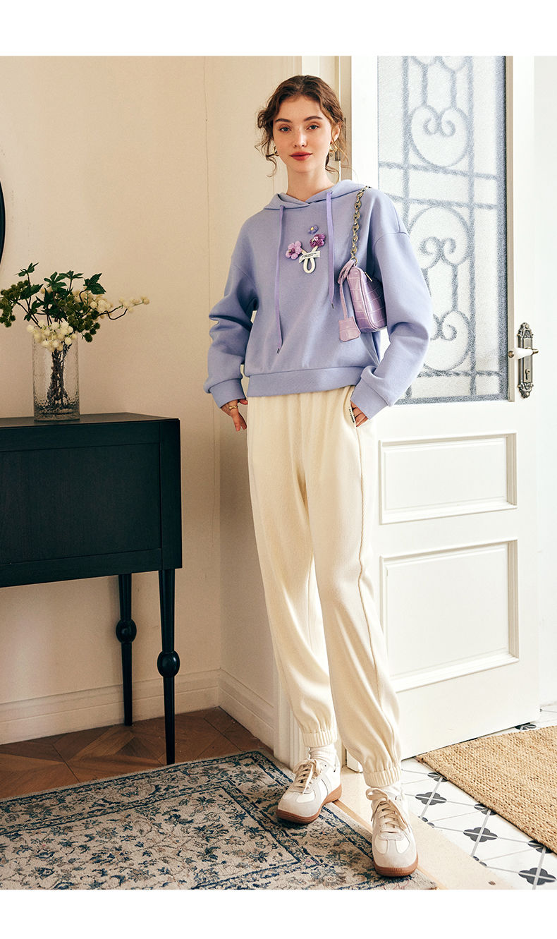 OLrain欧芮儿法式连帽抽绳卫衣女早春2023新款宽松手钩花针织上衣