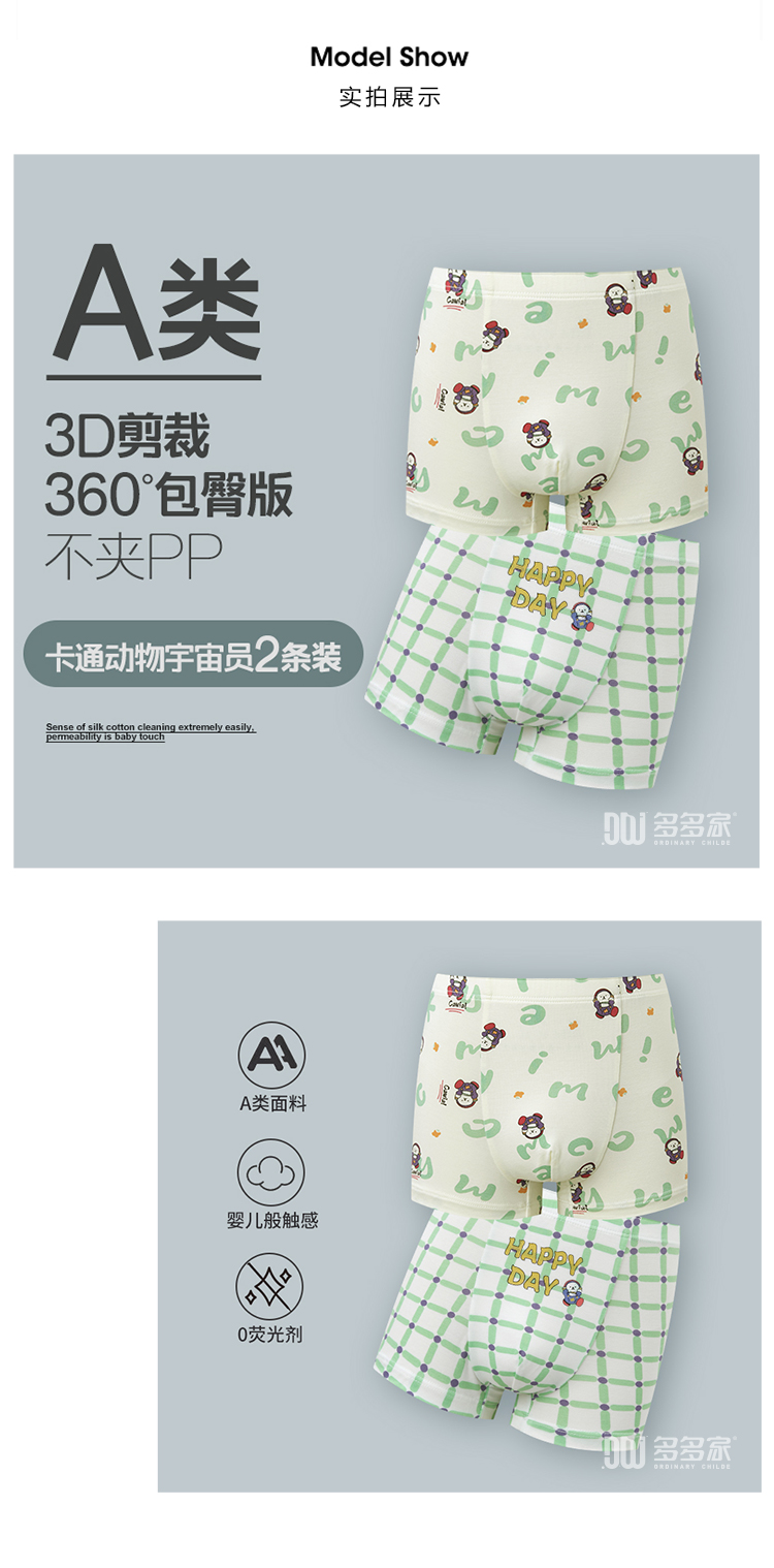 【团购价69.9】多多家童装儿童内裤2条装春秋男童新款A类四角不夹PP短裤中大童潮9214