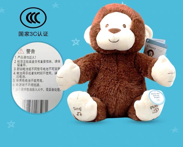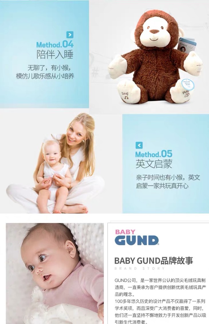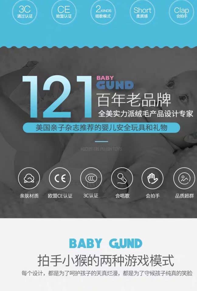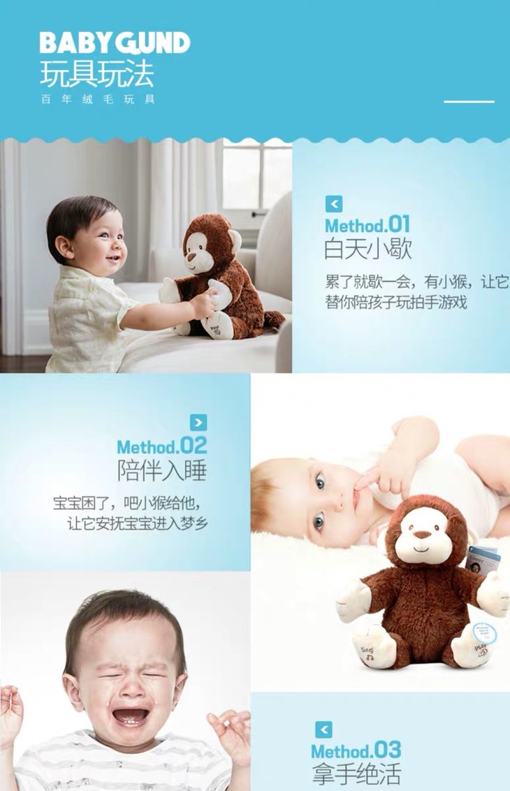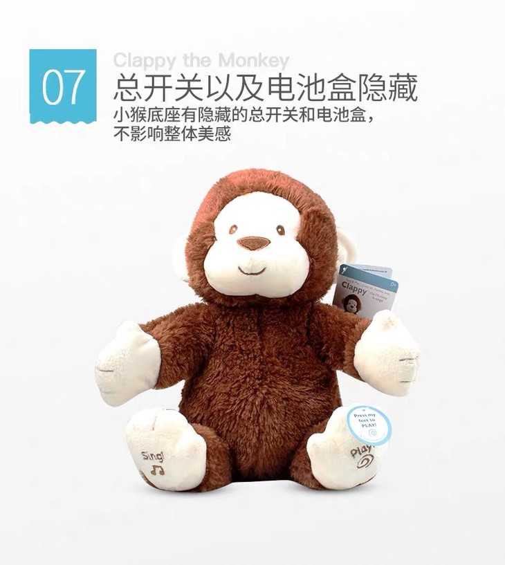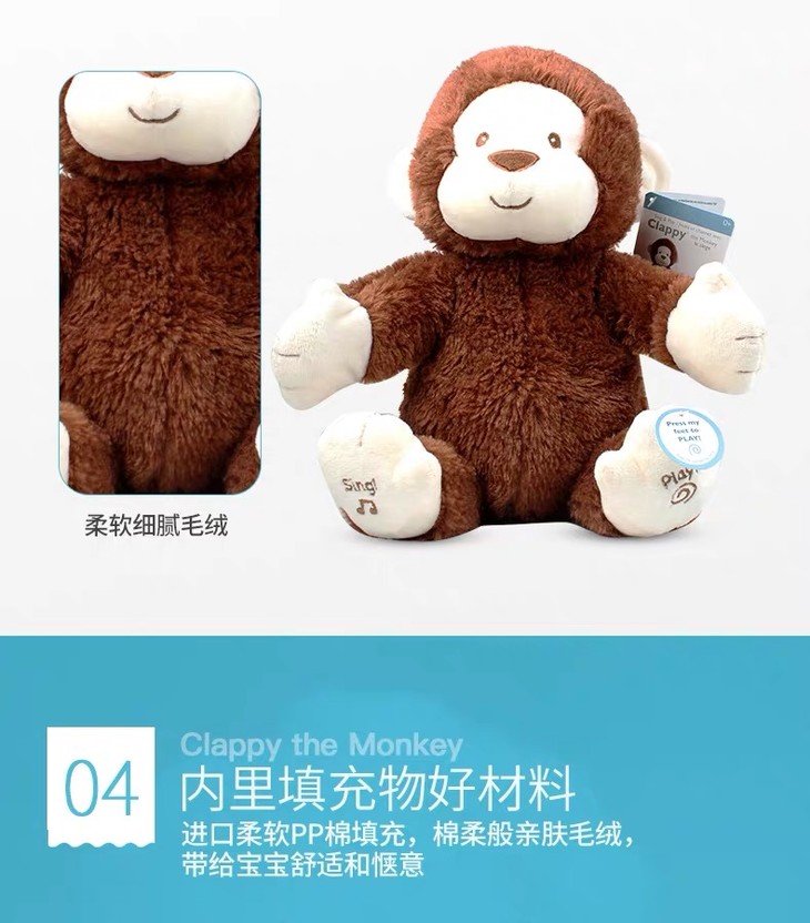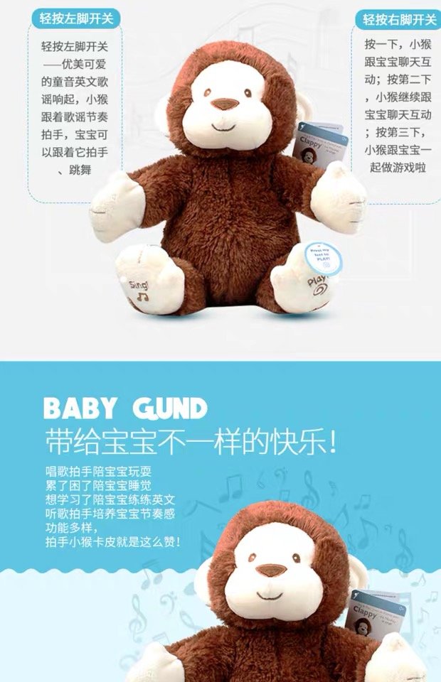 【新品】美国Baby Gund 拍手小猴子儿童安抚玩具会唱歌毛绒音乐玩偶公仔