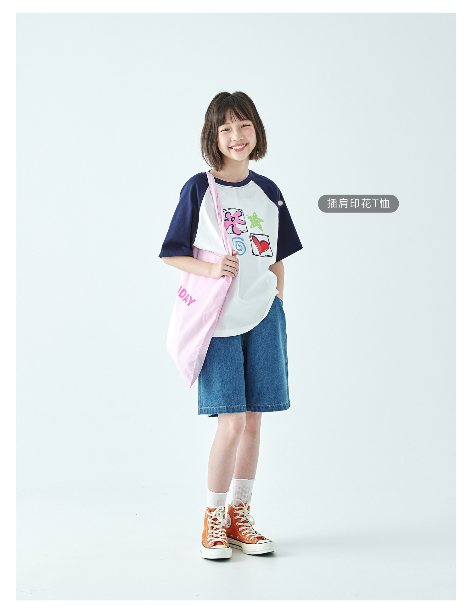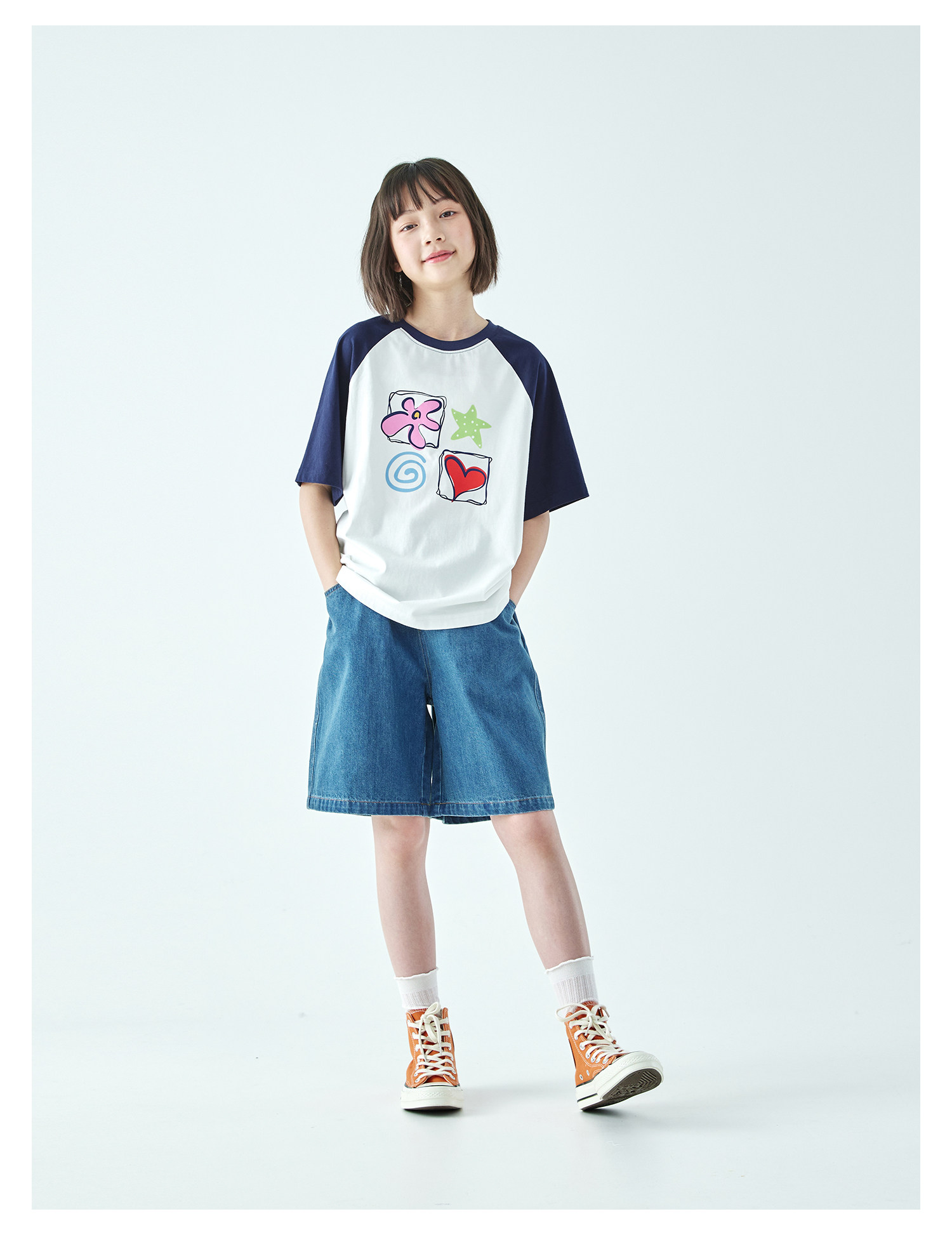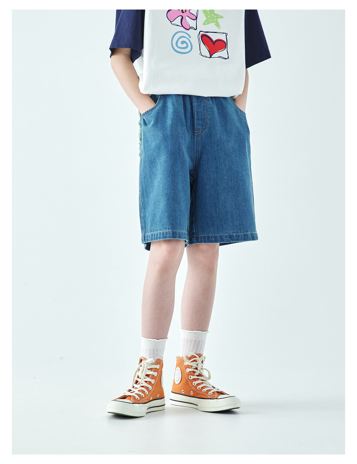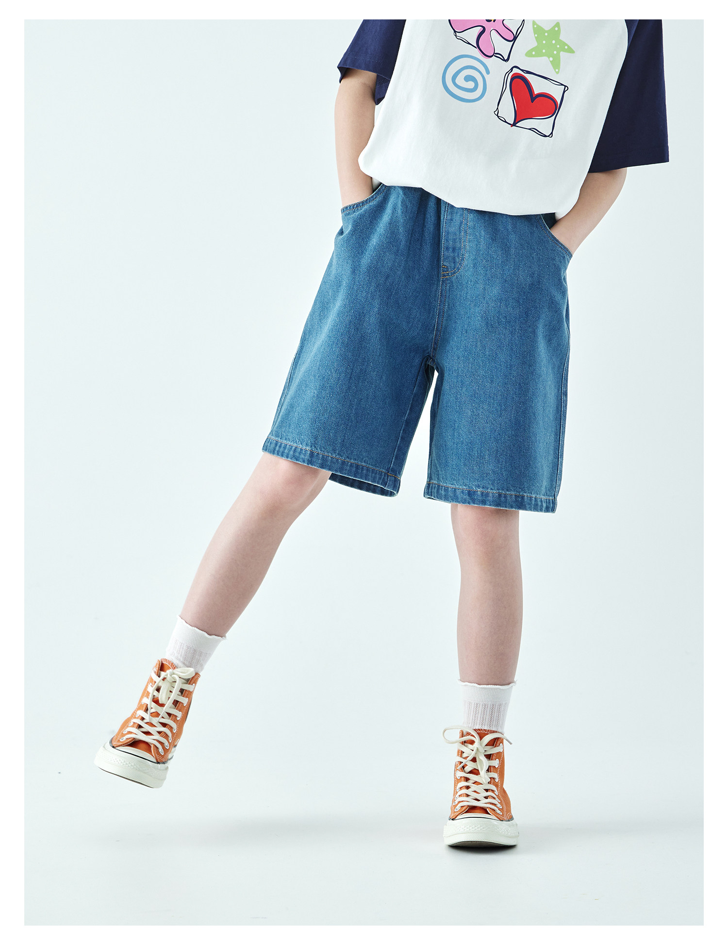棵初2026年夏季新款亲子中大女童休闲牛仔短裤经典丹宁宽松中裤