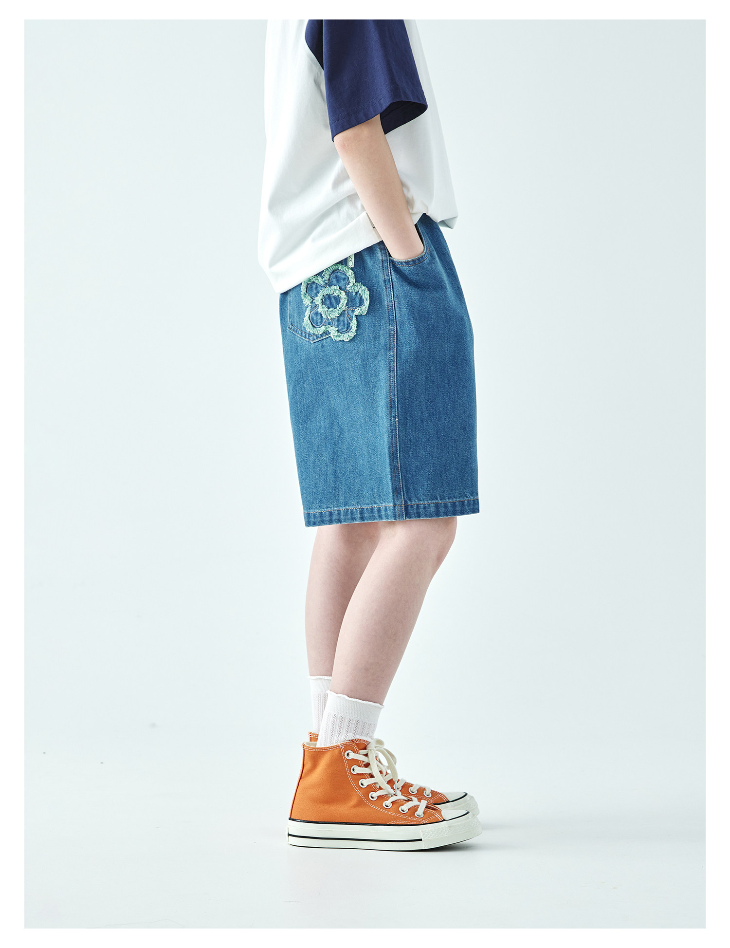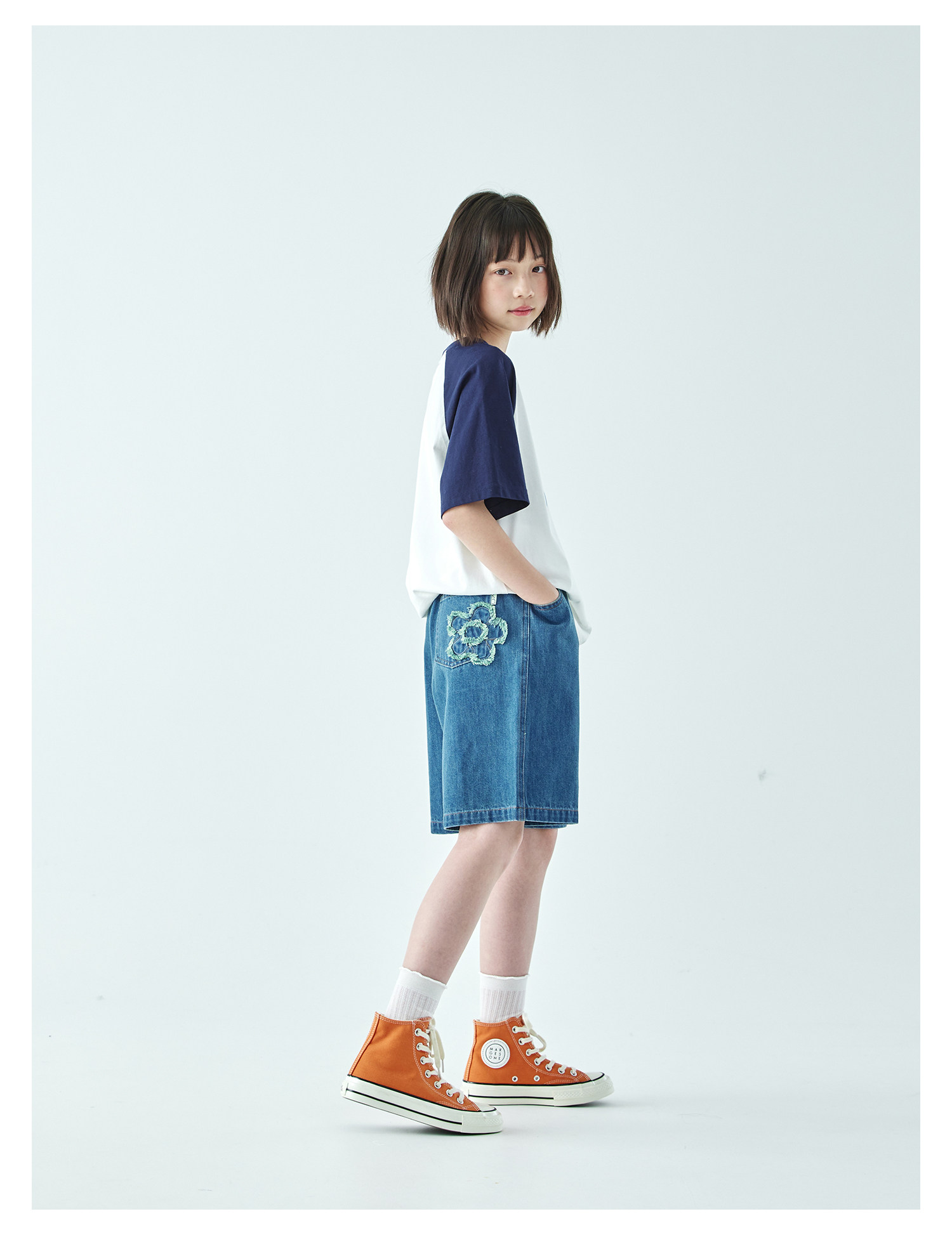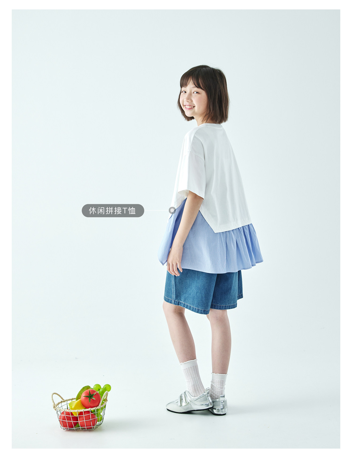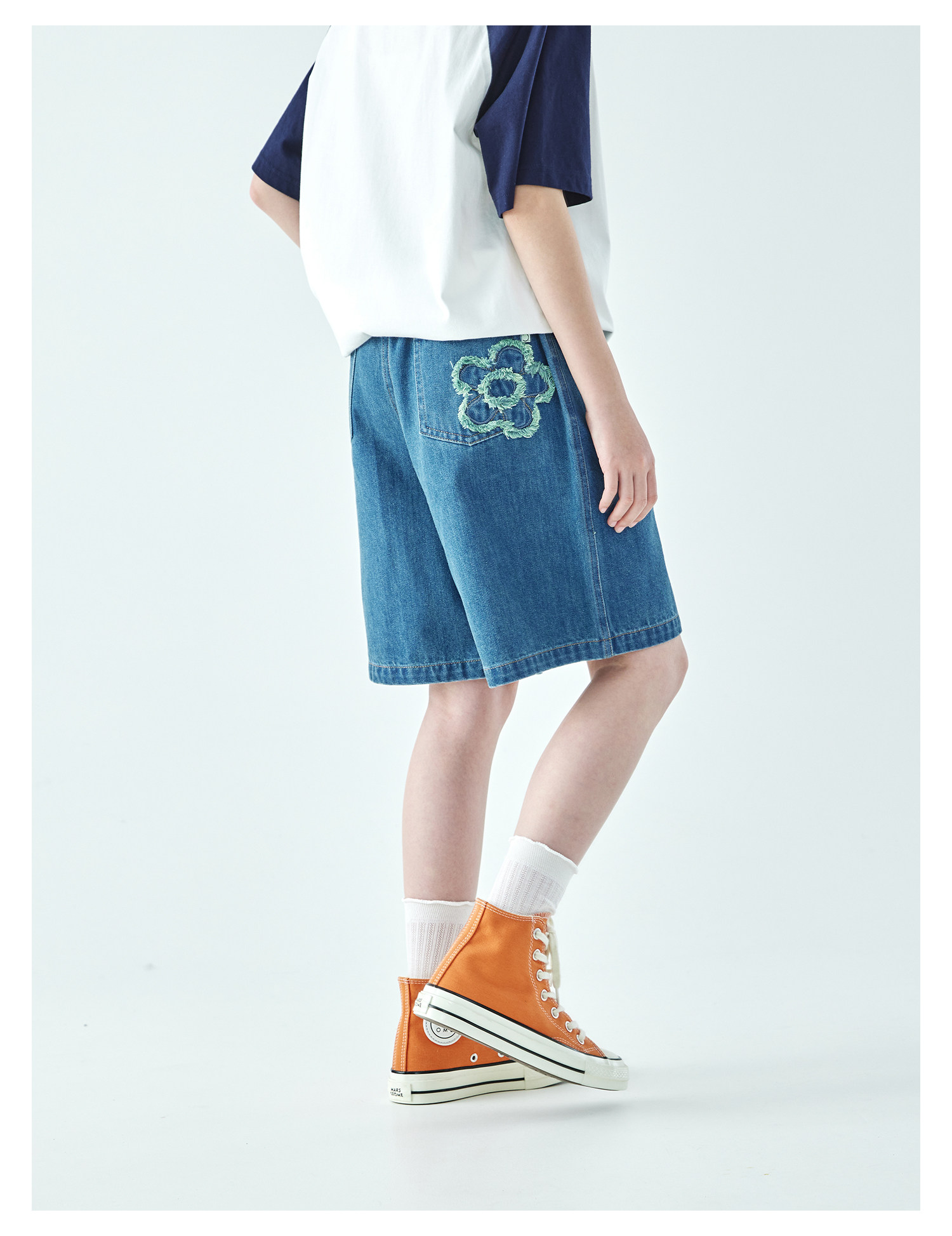 棵初2026年夏季新款亲子中大女童休闲牛仔短裤经典丹宁宽松中裤