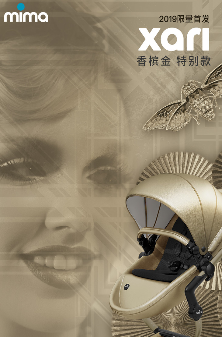 西班牙mima xari【限量款】香槟金 软减震婴儿推车可坐可躺可折叠高景观推车