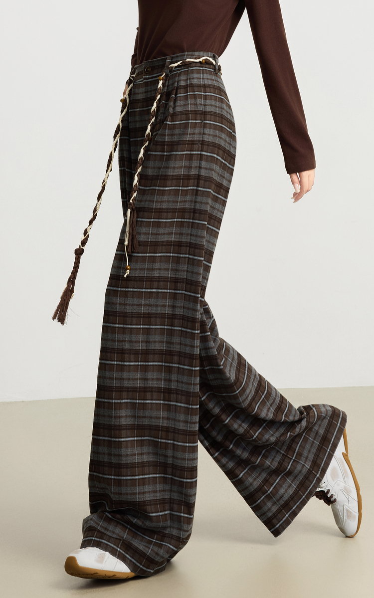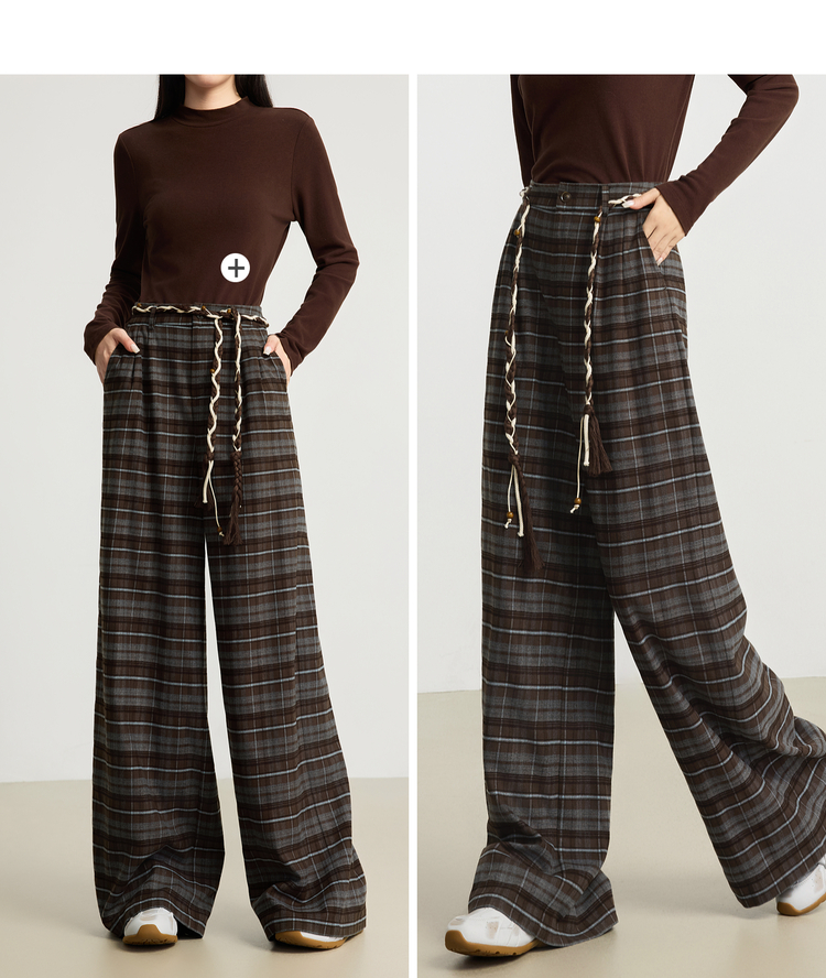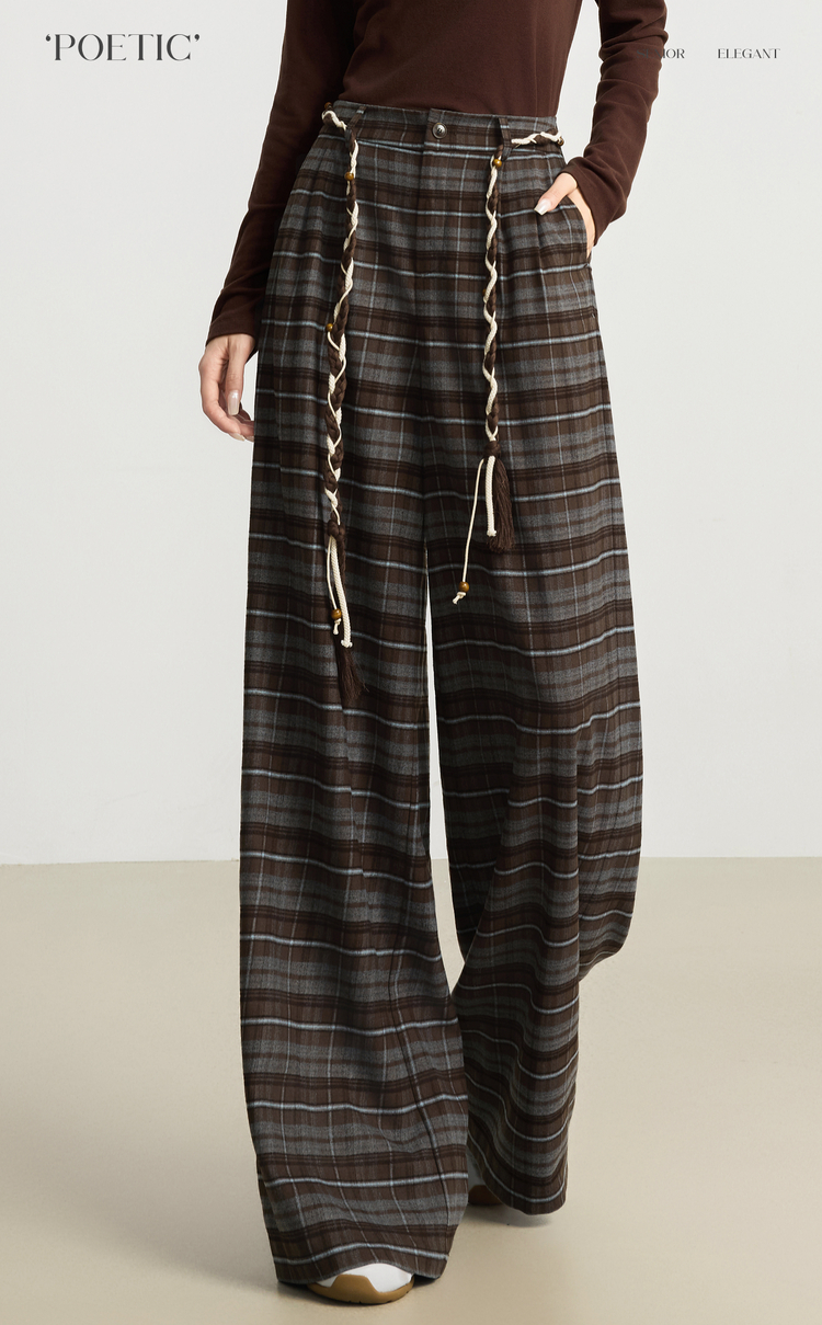 【10/23新品】熙世界美拉德复古格纹阔腿裤松弛感宽松垂感休闲裤女2025秋季新款