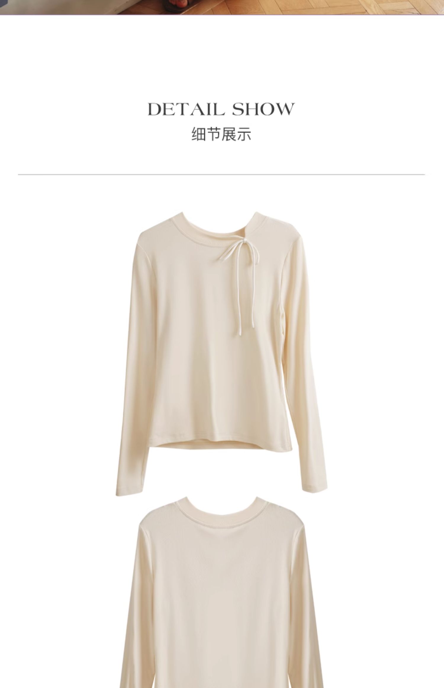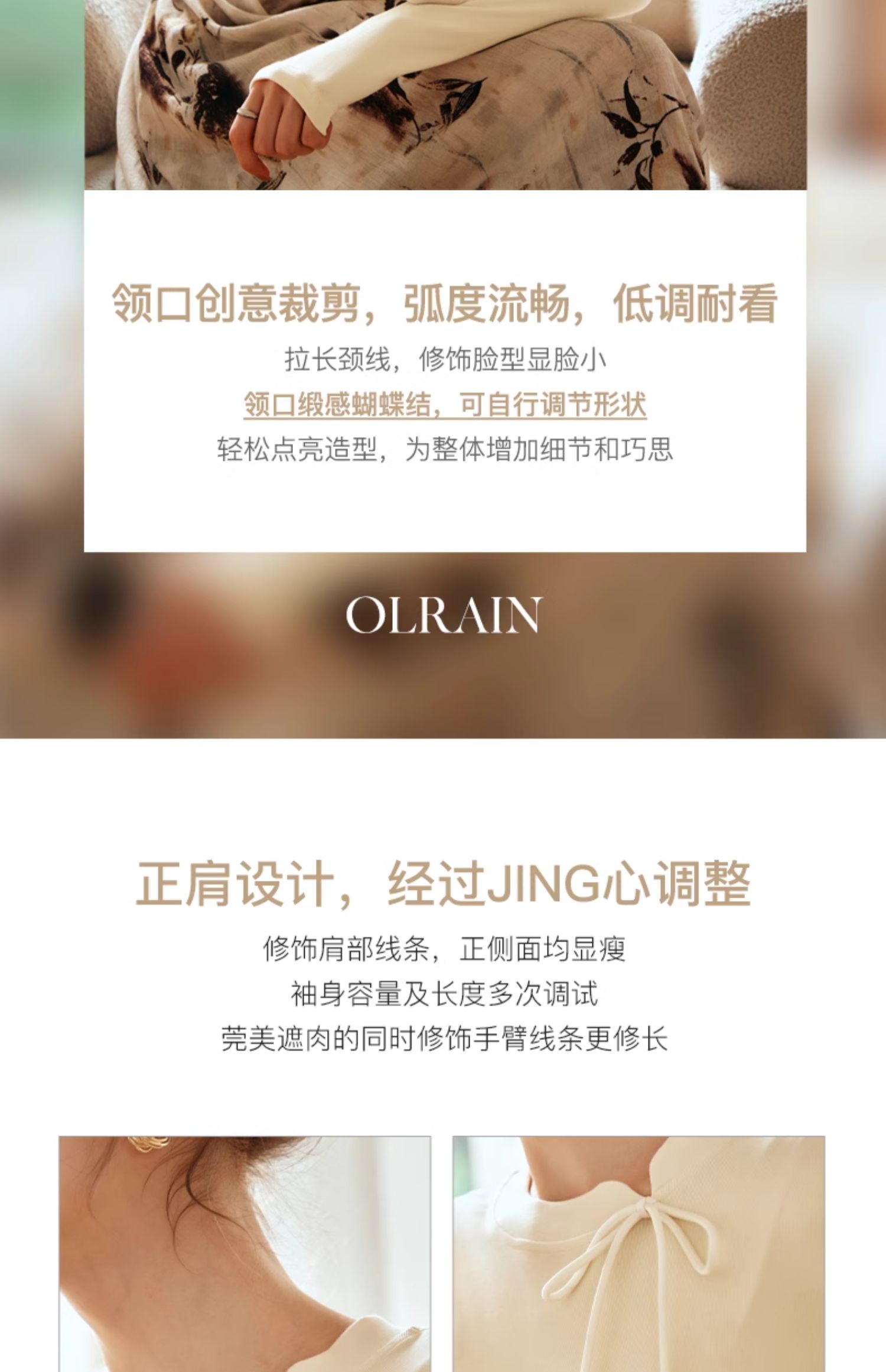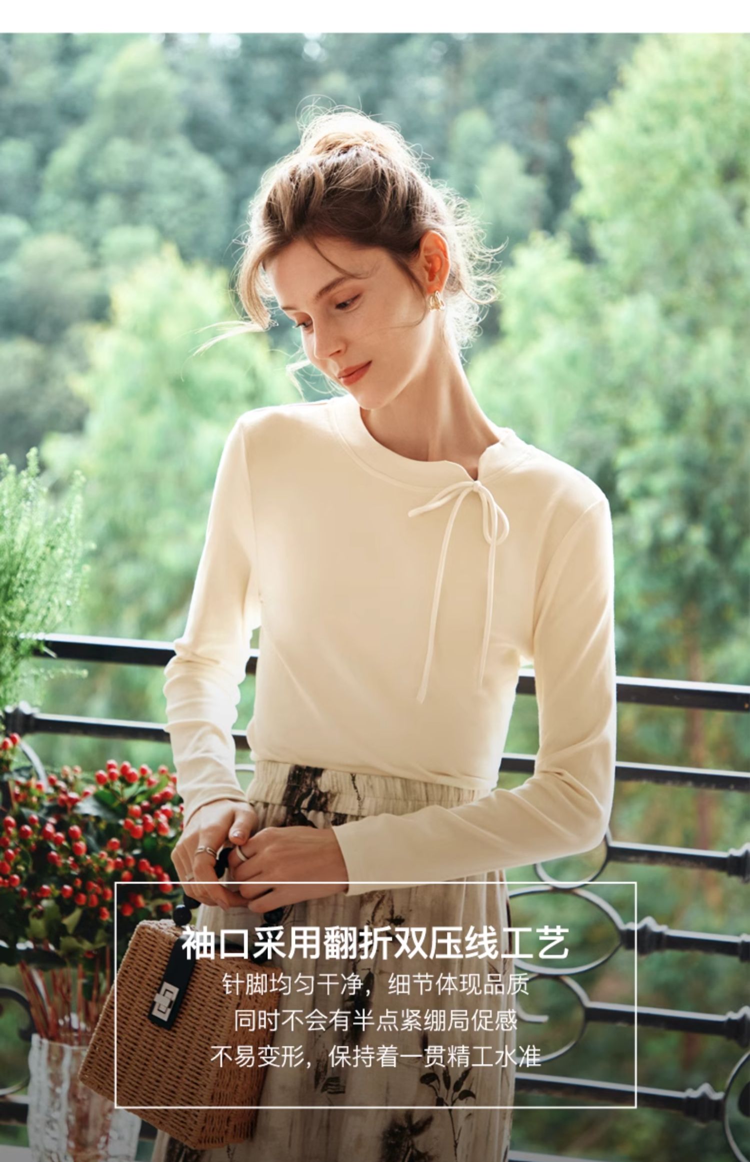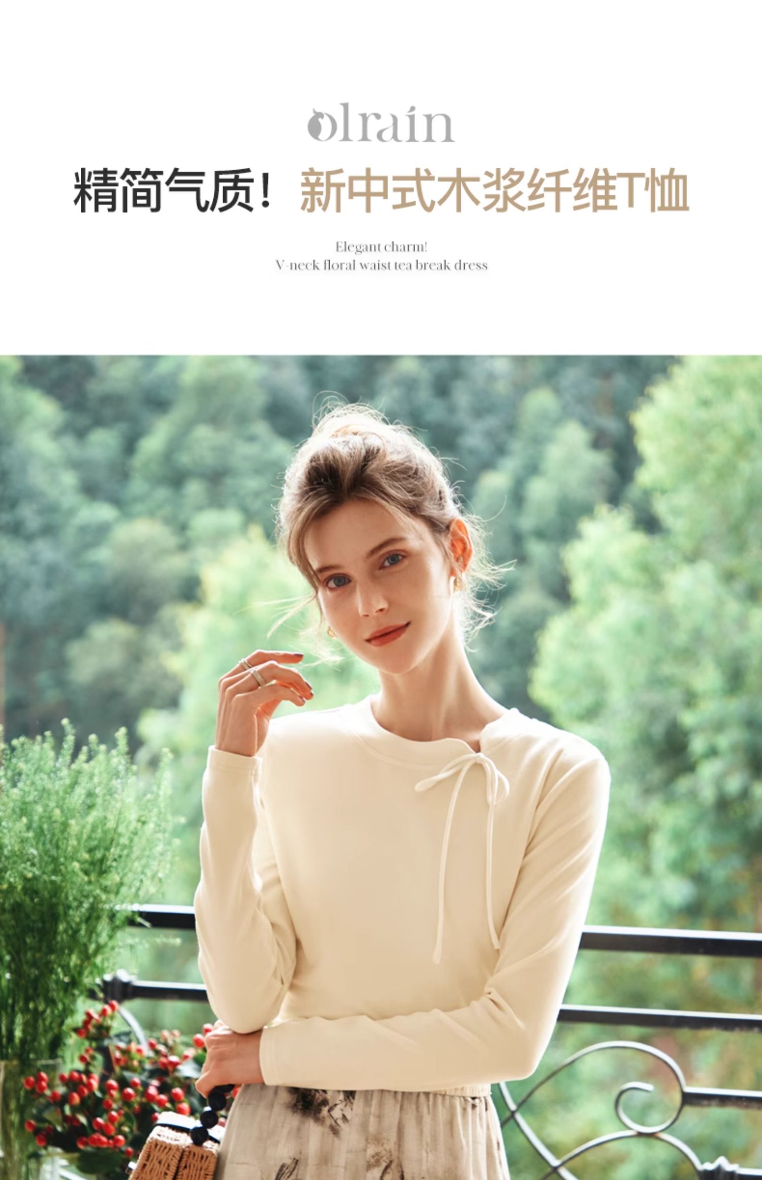 OLrain欧芮儿正肩长袖T恤女早春2024年新款别致圆领新中式上衣