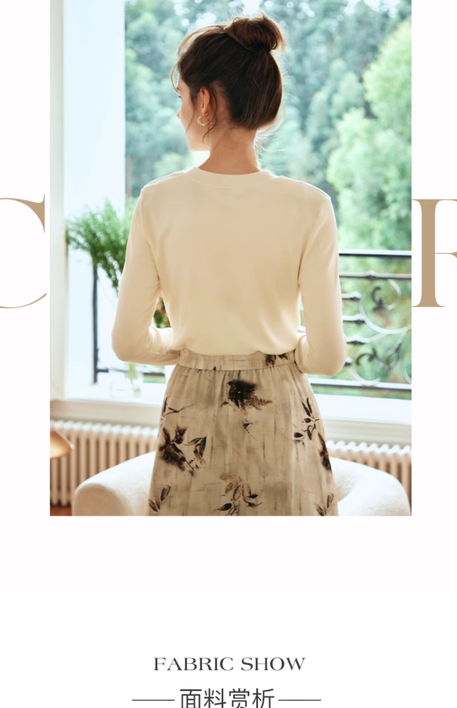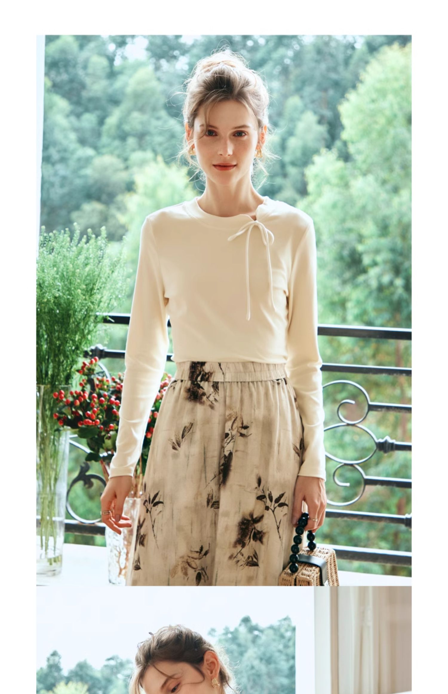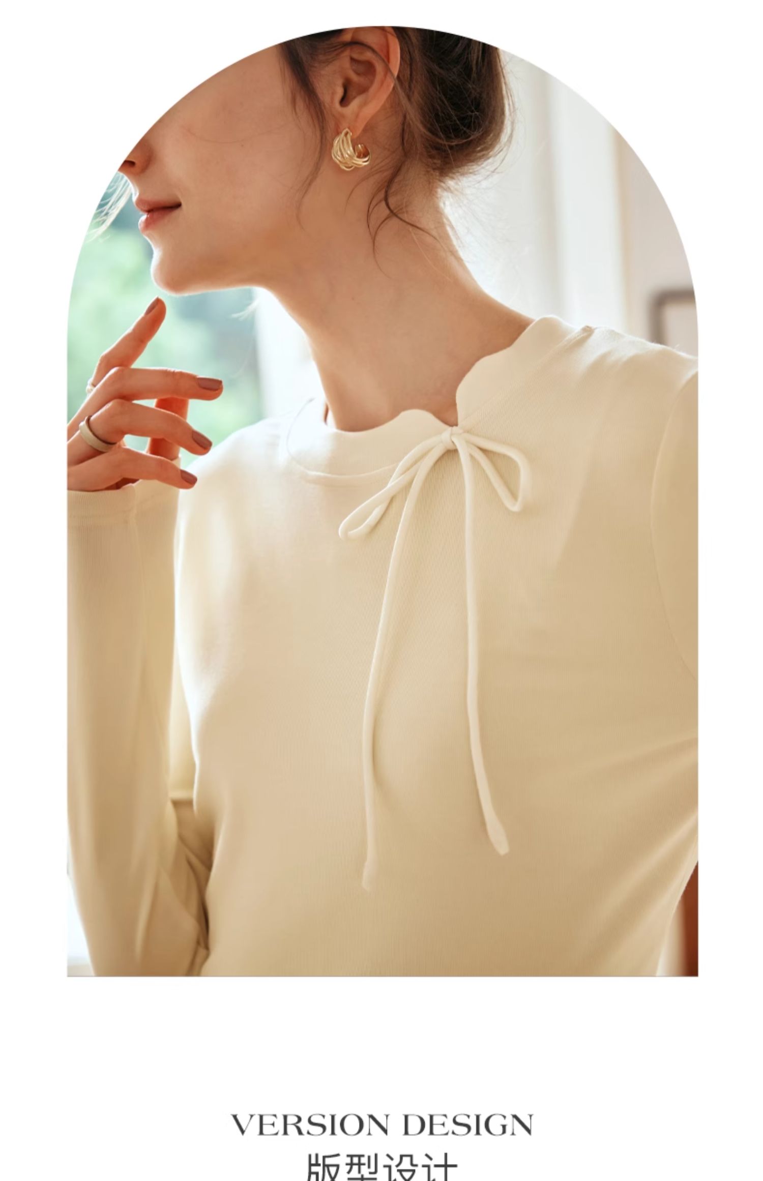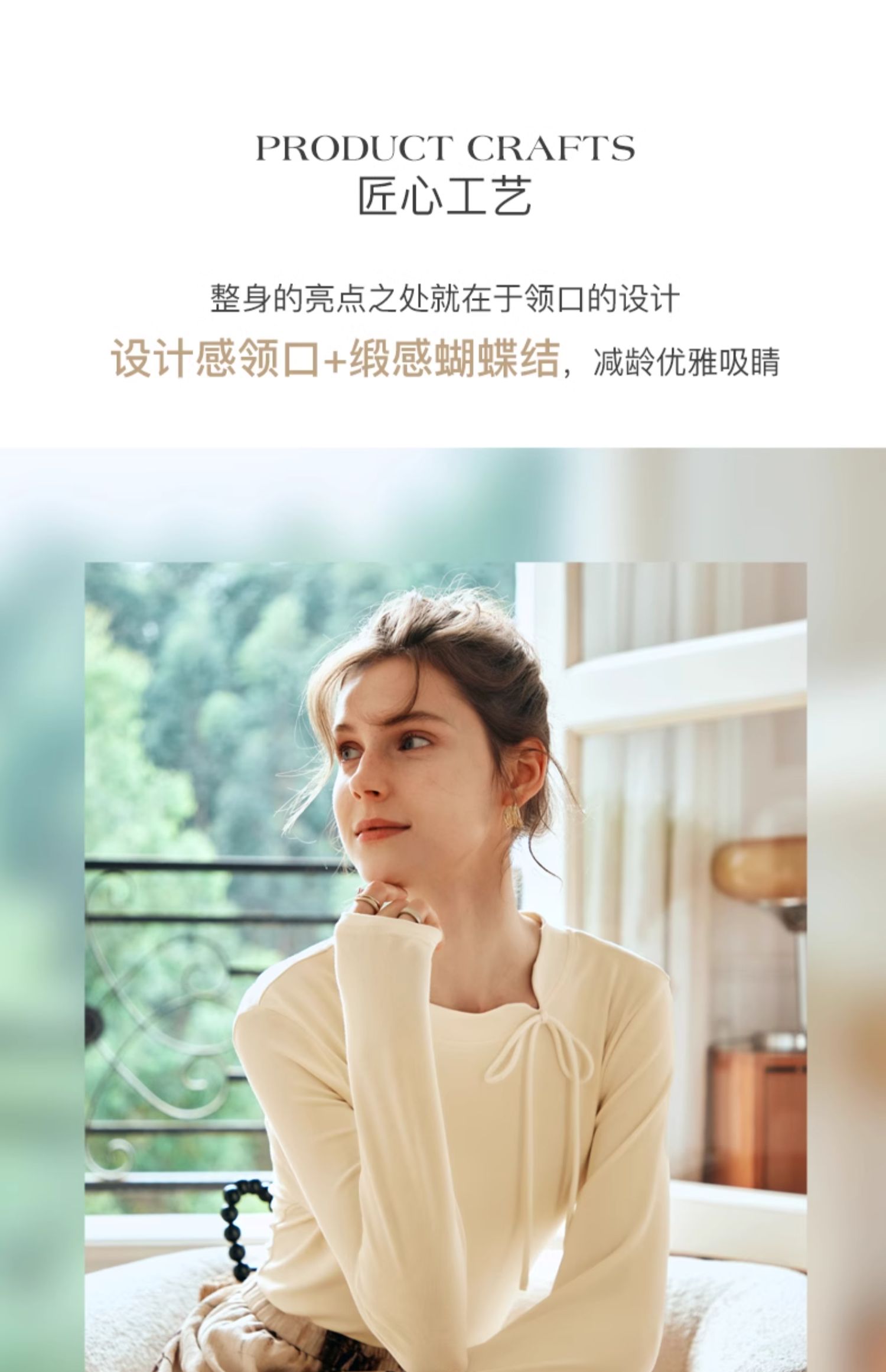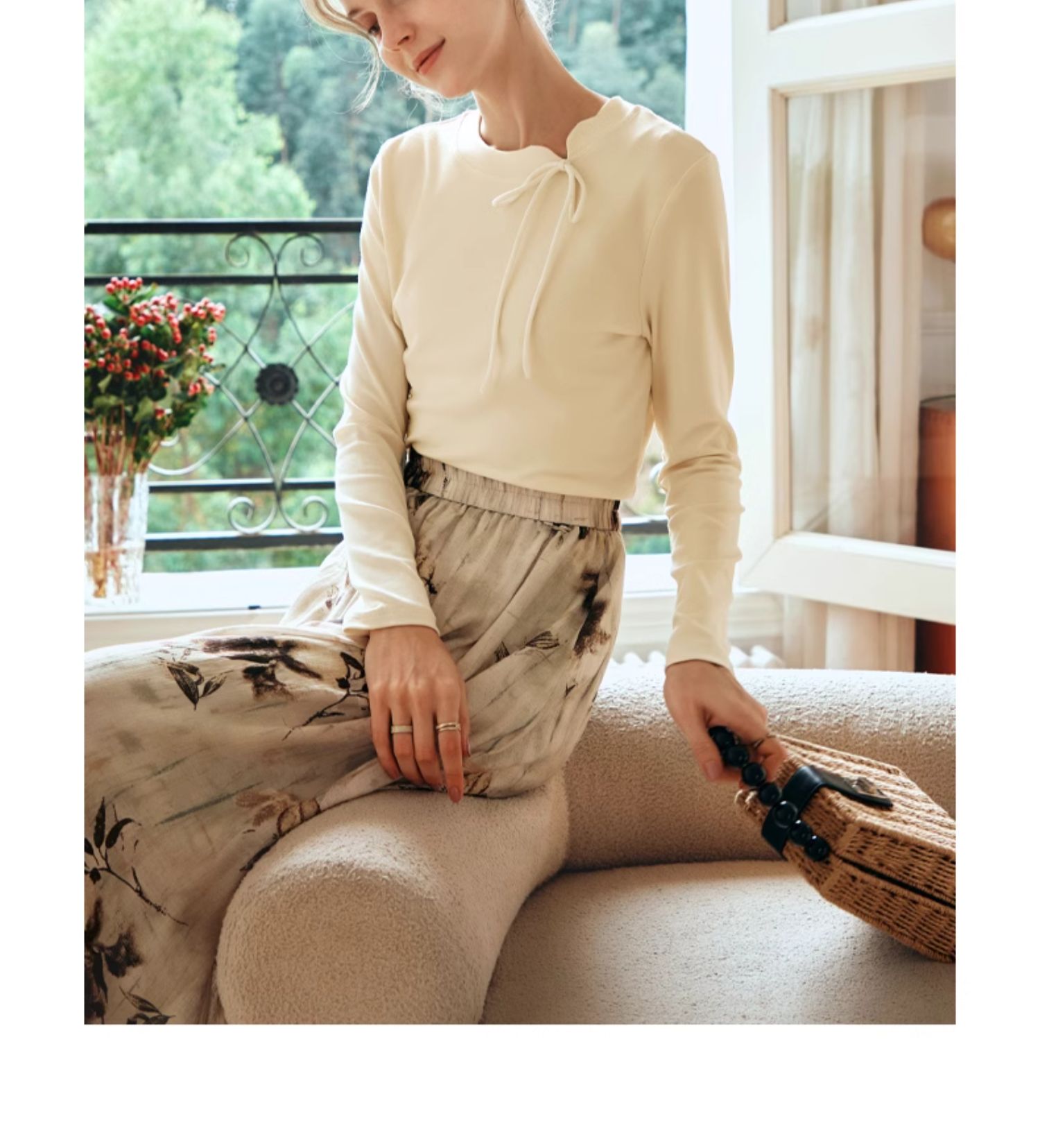 OLrain欧芮儿正肩长袖T恤女早春2024年新款别致圆领新中式上衣