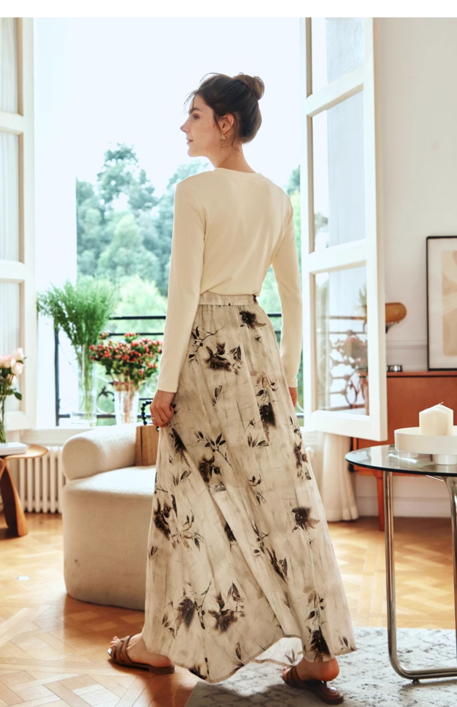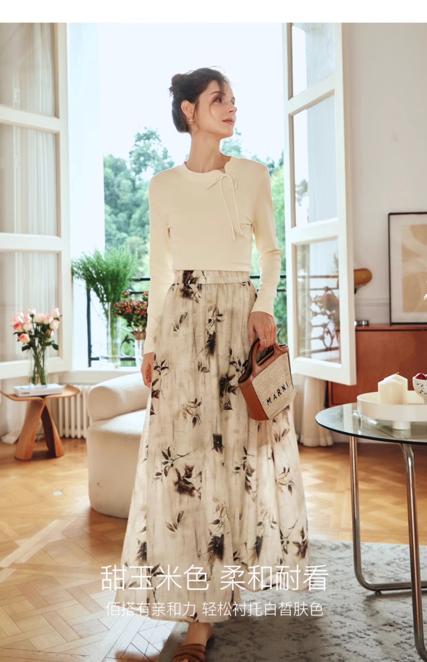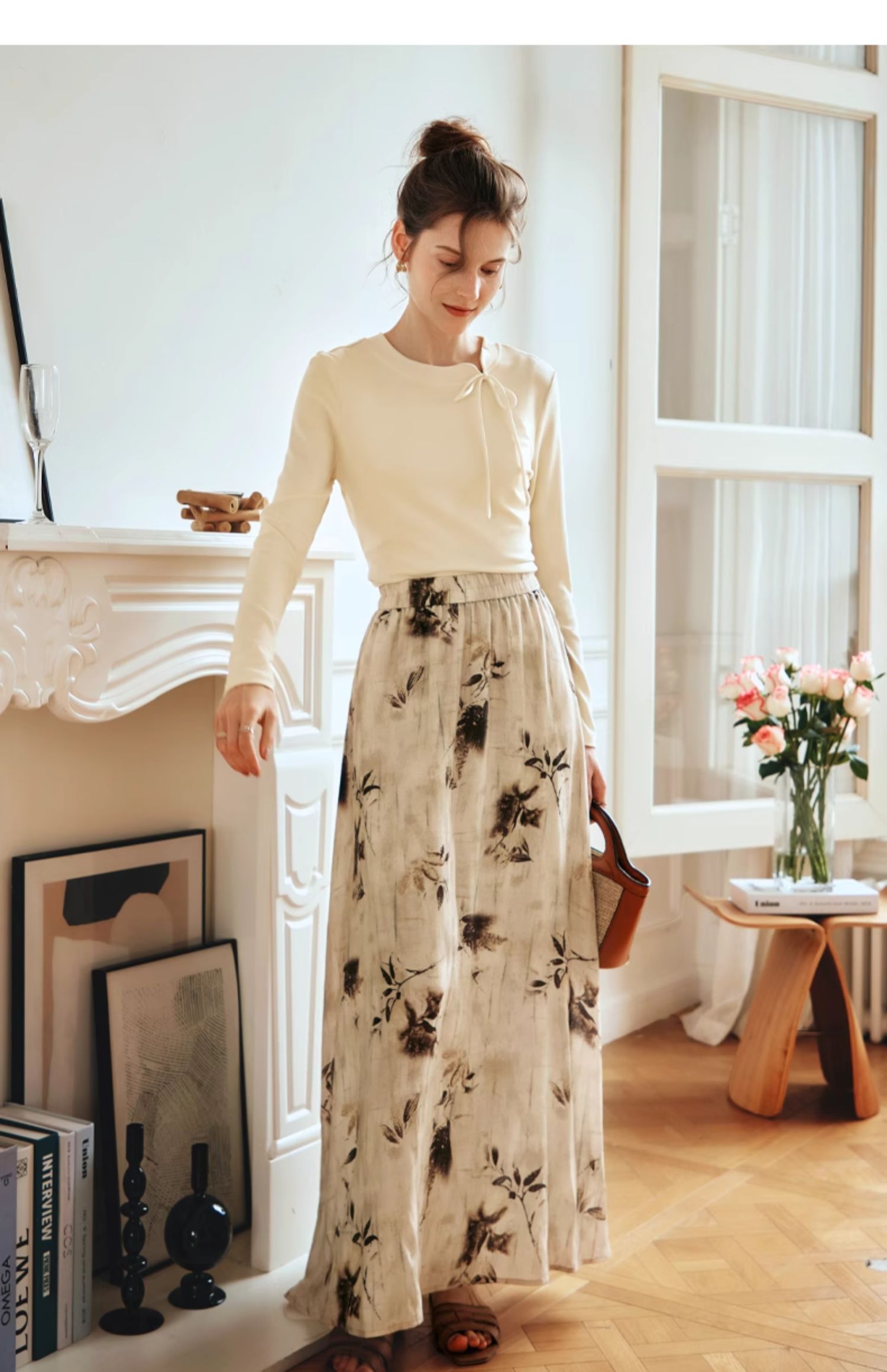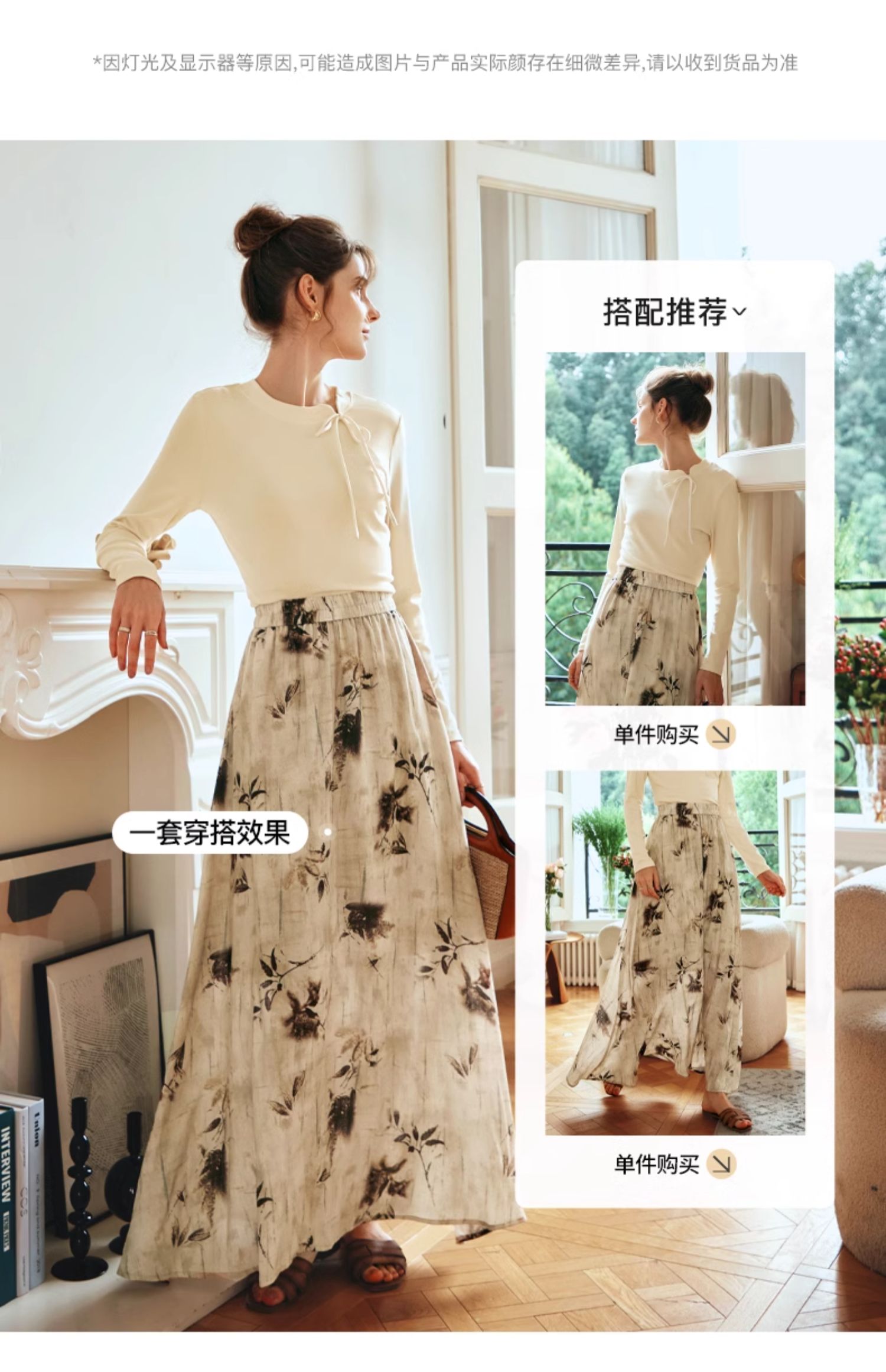 OLrain欧芮儿正肩长袖T恤女早春2024年新款别致圆领新中式上衣
