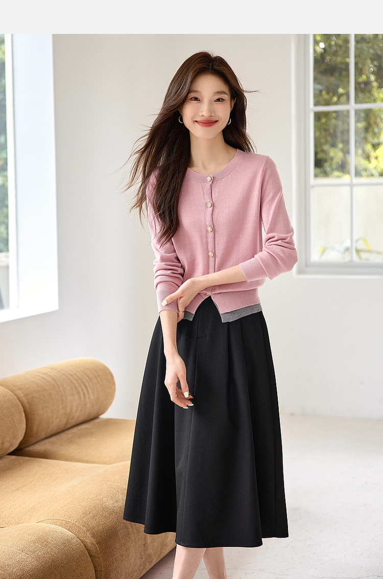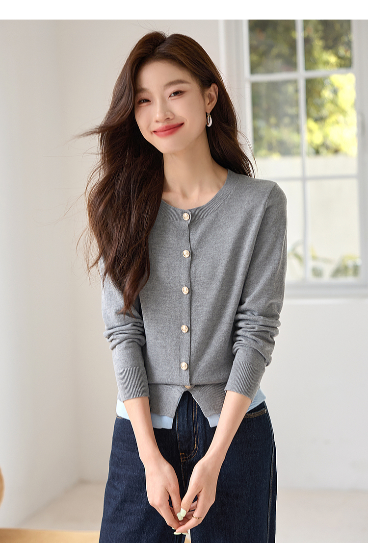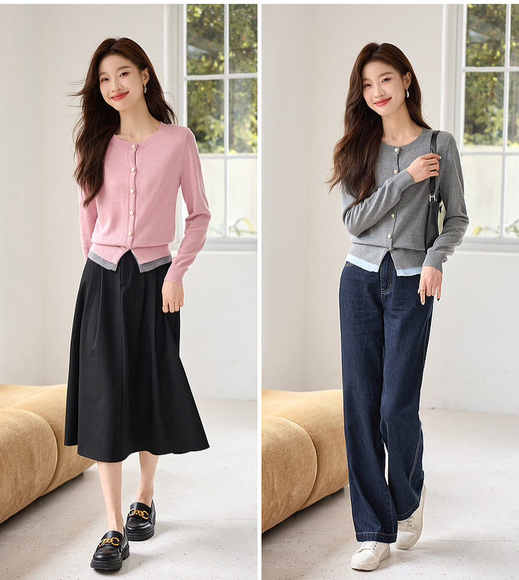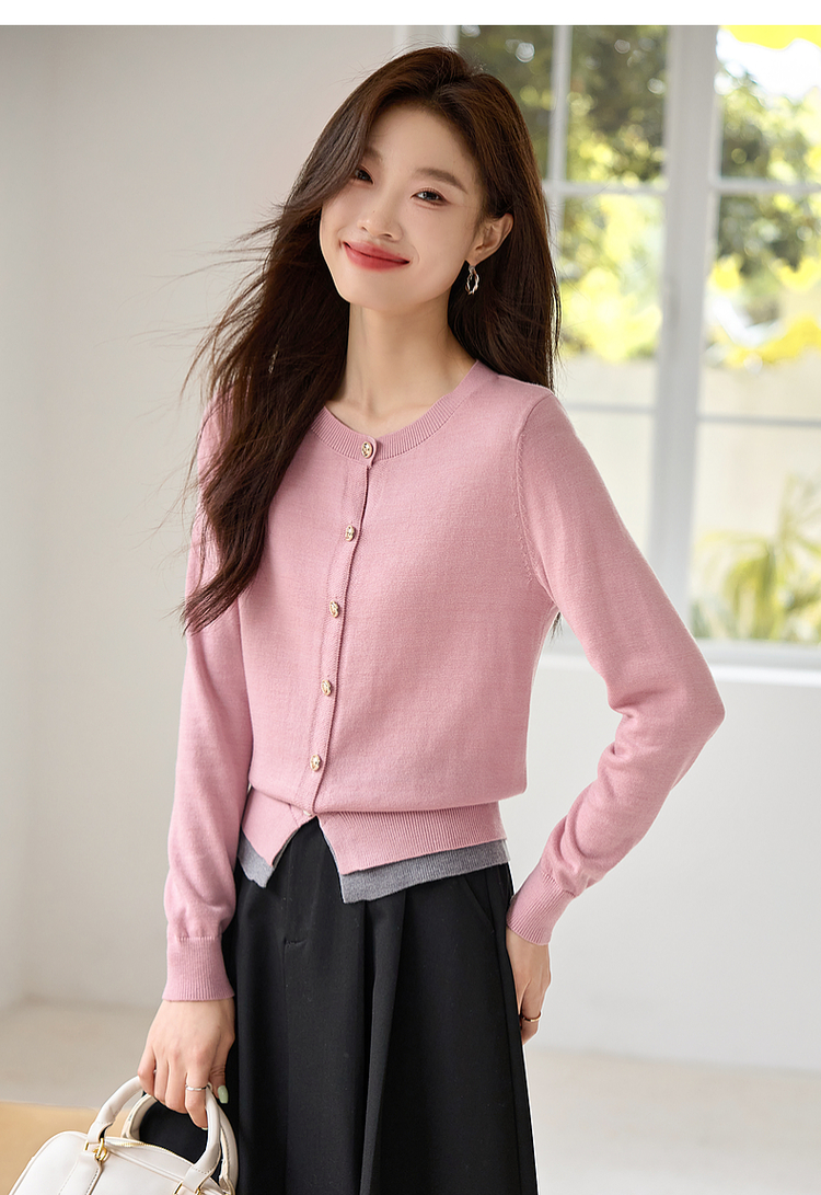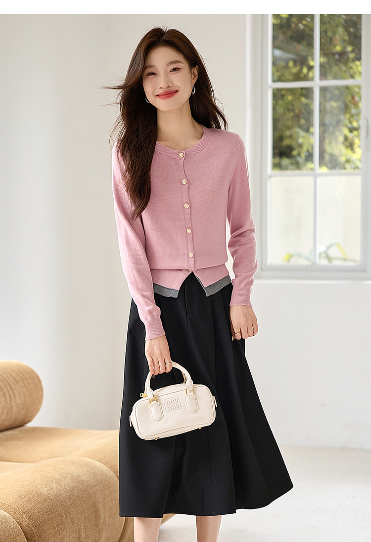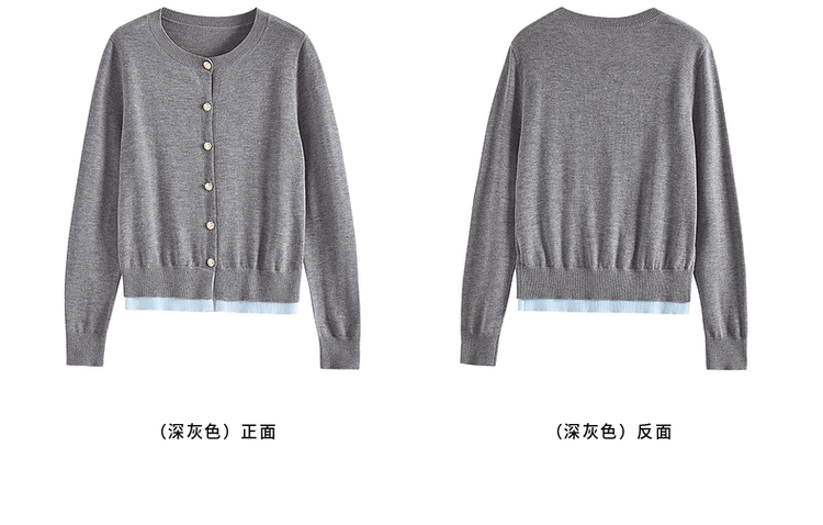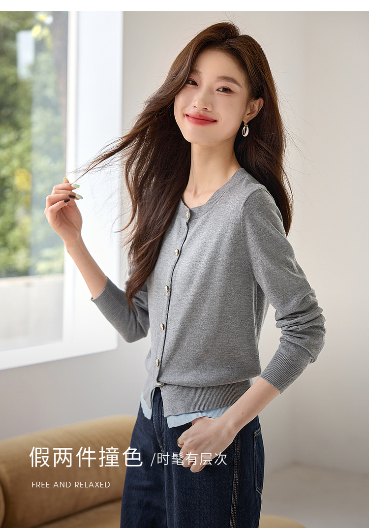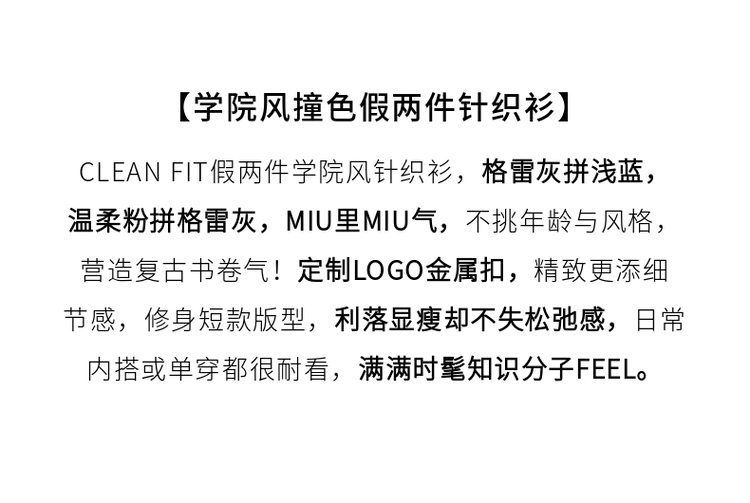 【年终特卖】熙世界学院风撞色假两件针织衫2025年秋装新款含羊毛开衫短外套