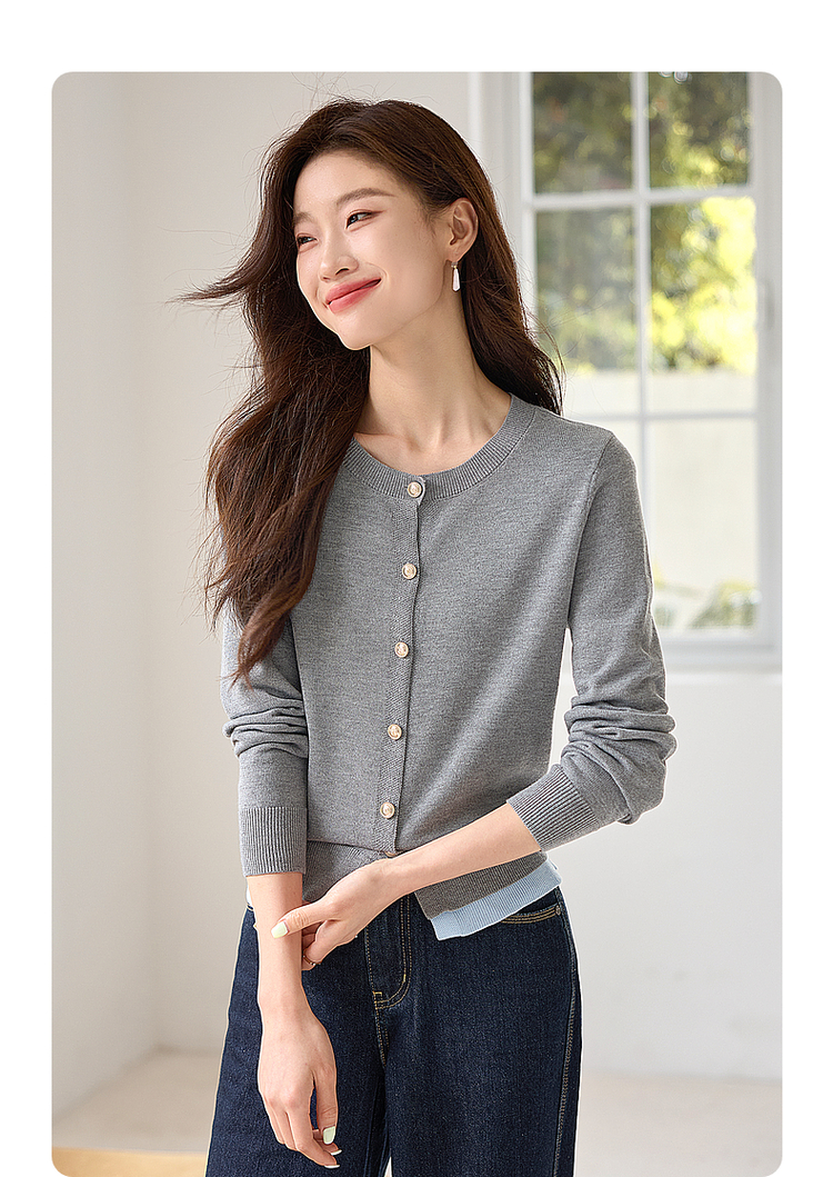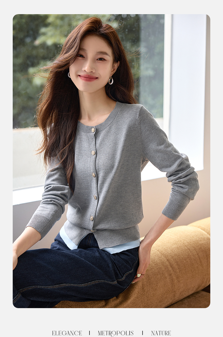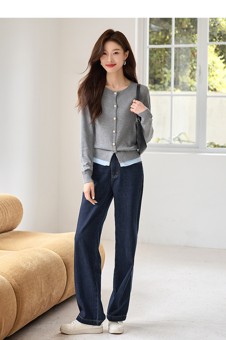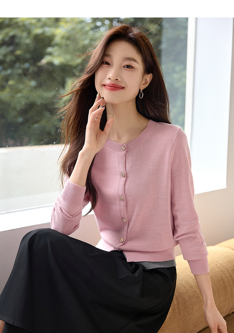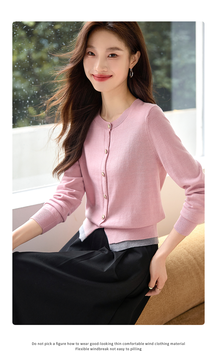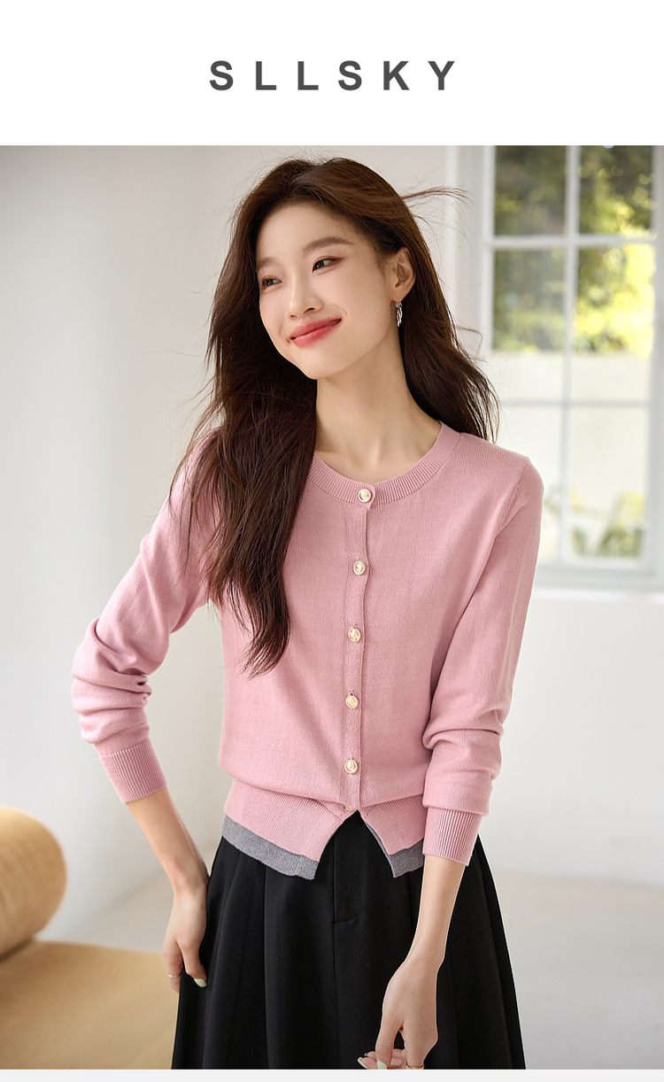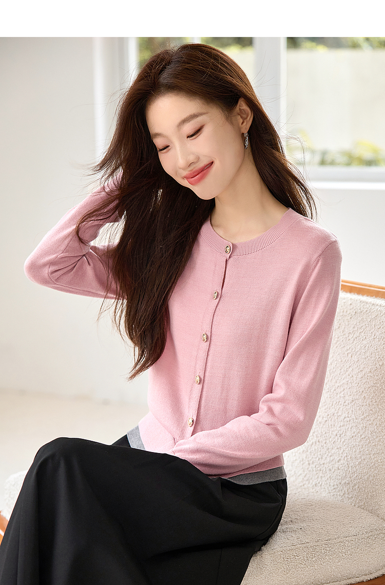 【年终特卖】熙世界学院风撞色假两件针织衫2025年秋装新款含羊毛开衫短外套