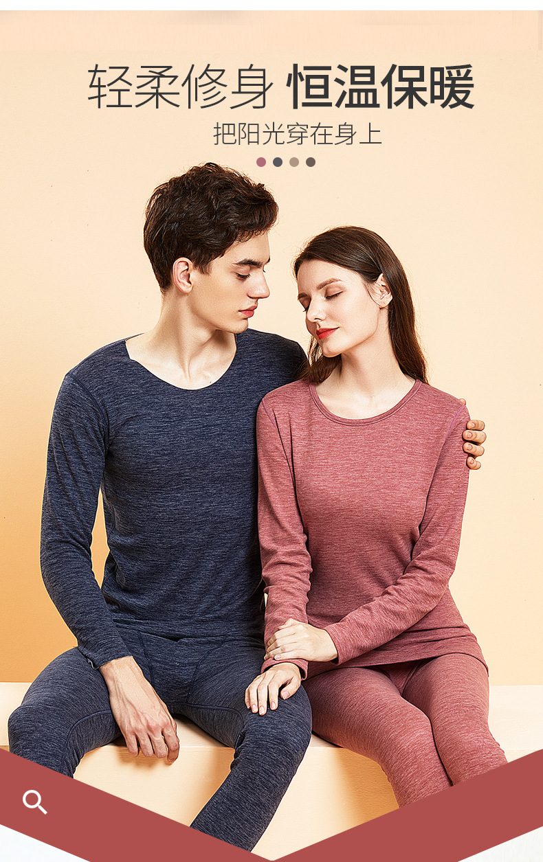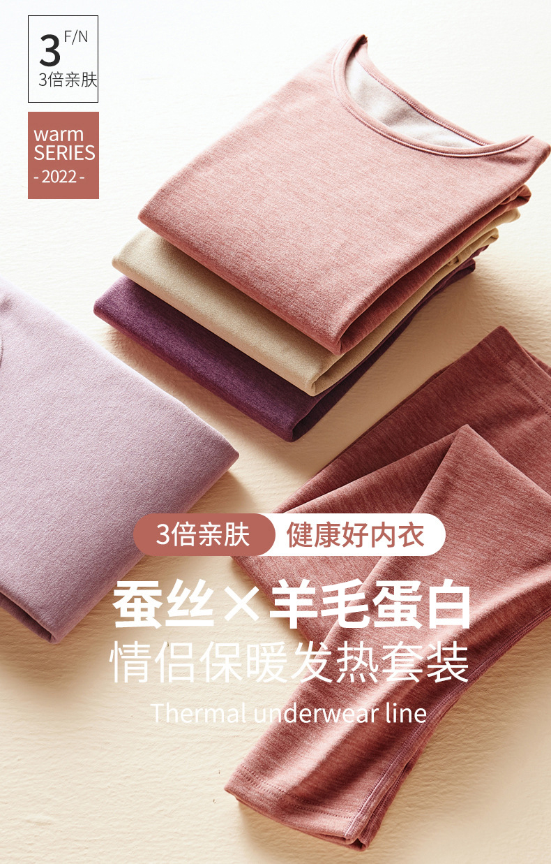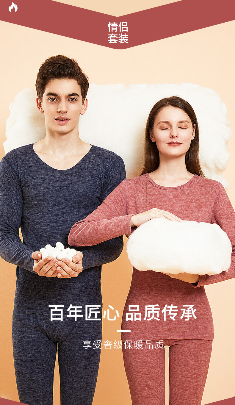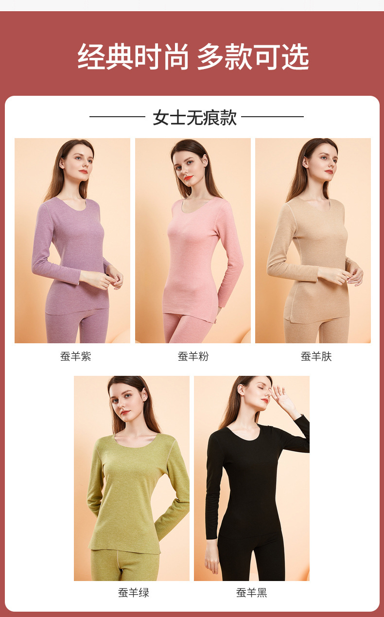 秋冬情侣款羊毛蚕丝保暖内衣 冬季保暖秋衣秋裤套装 女士打底衫套装