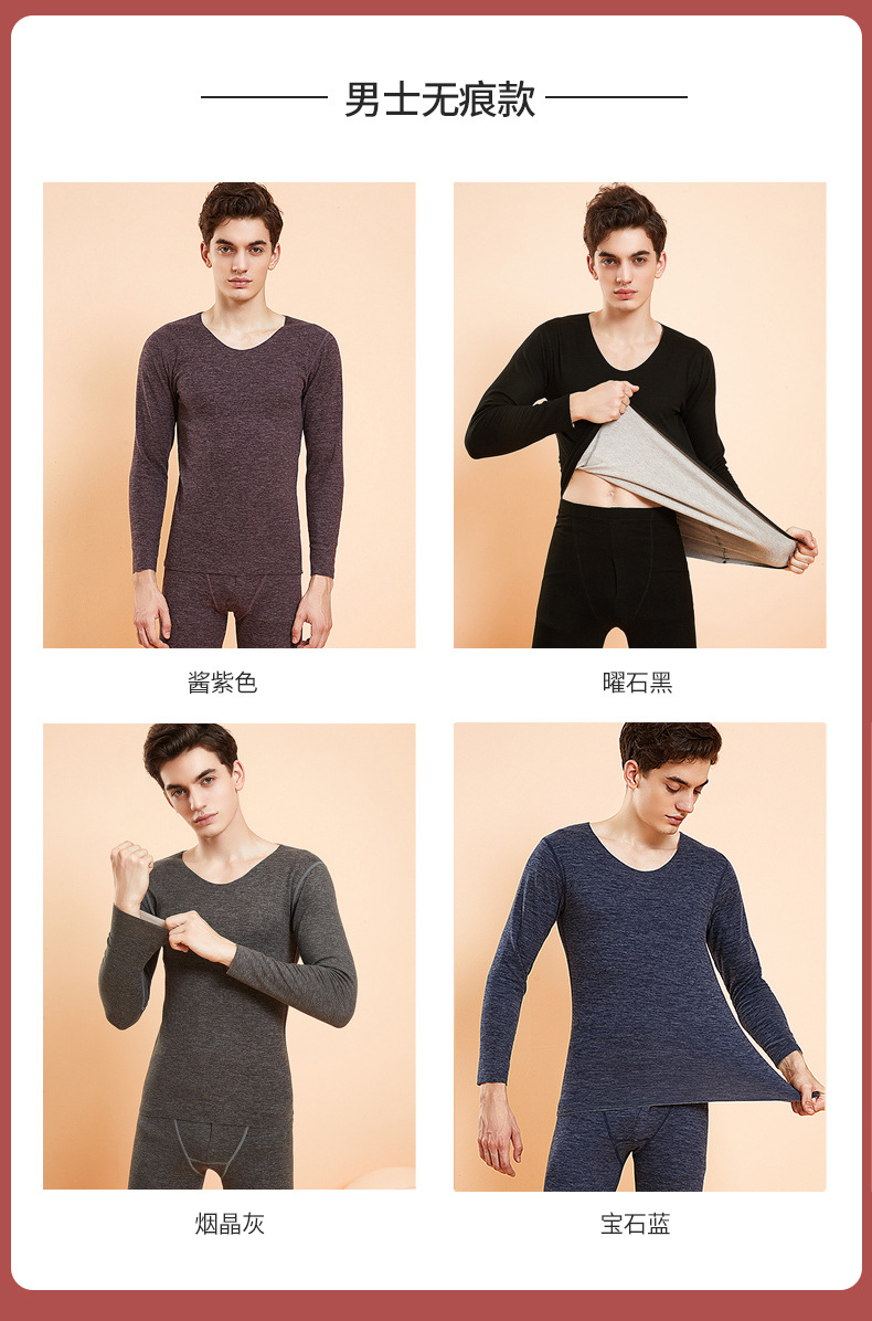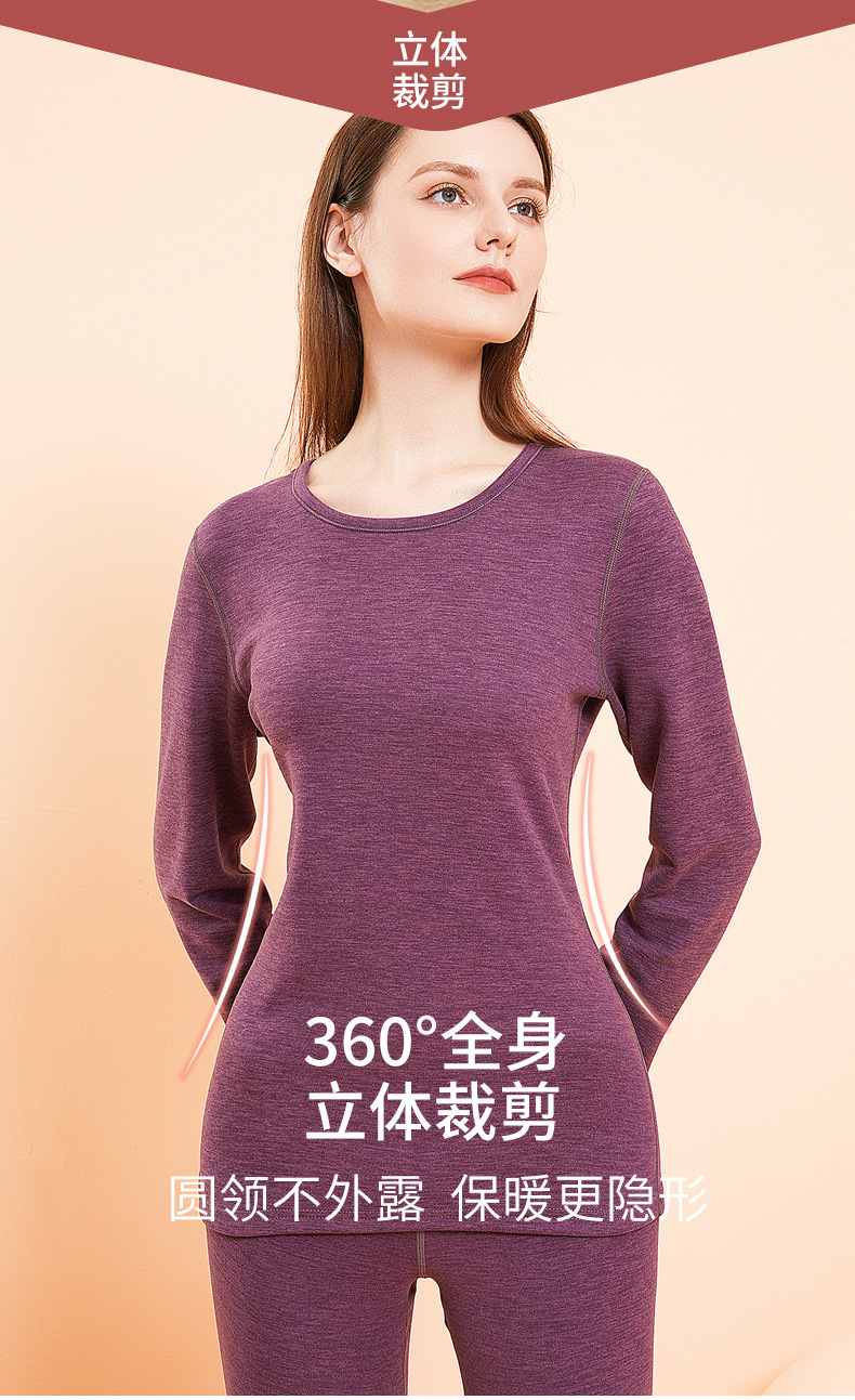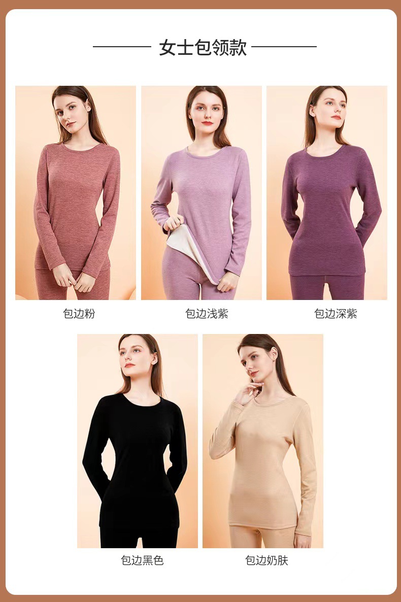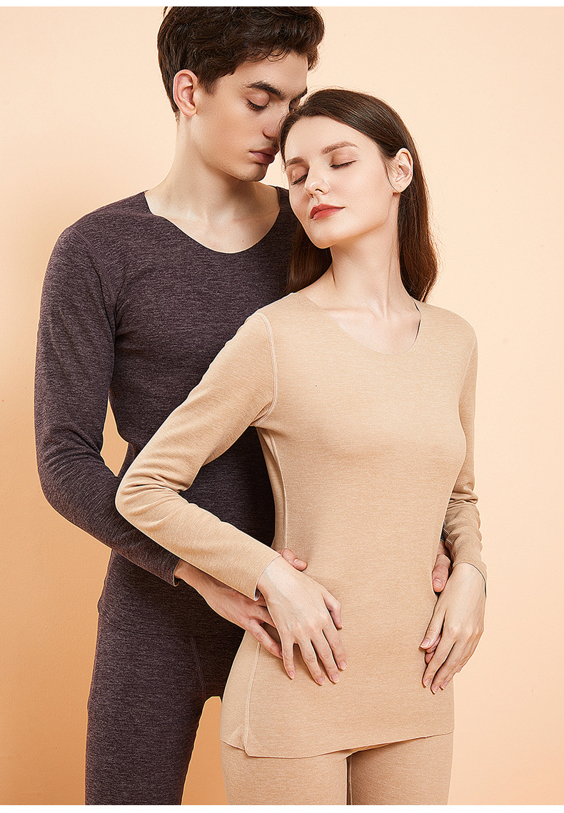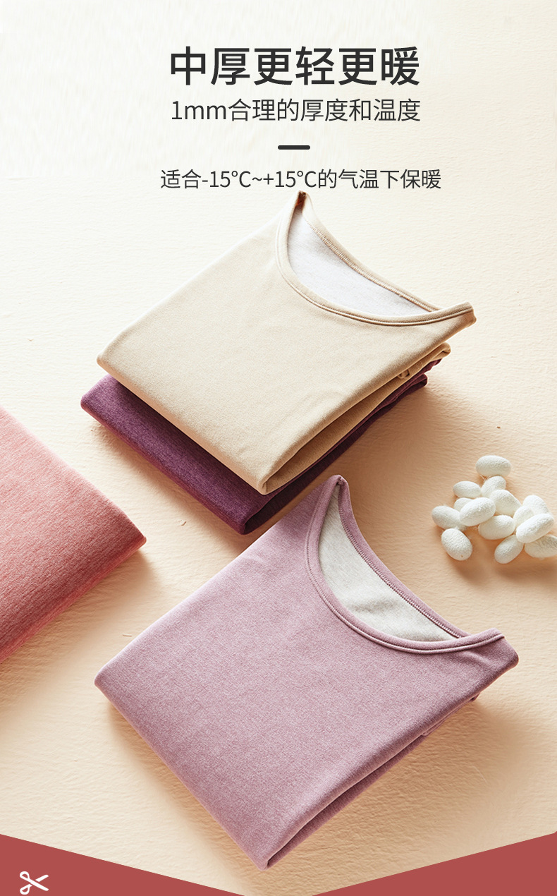 秋冬情侣款羊毛蚕丝保暖内衣 冬季保暖秋衣秋裤套装 女士打底衫套装