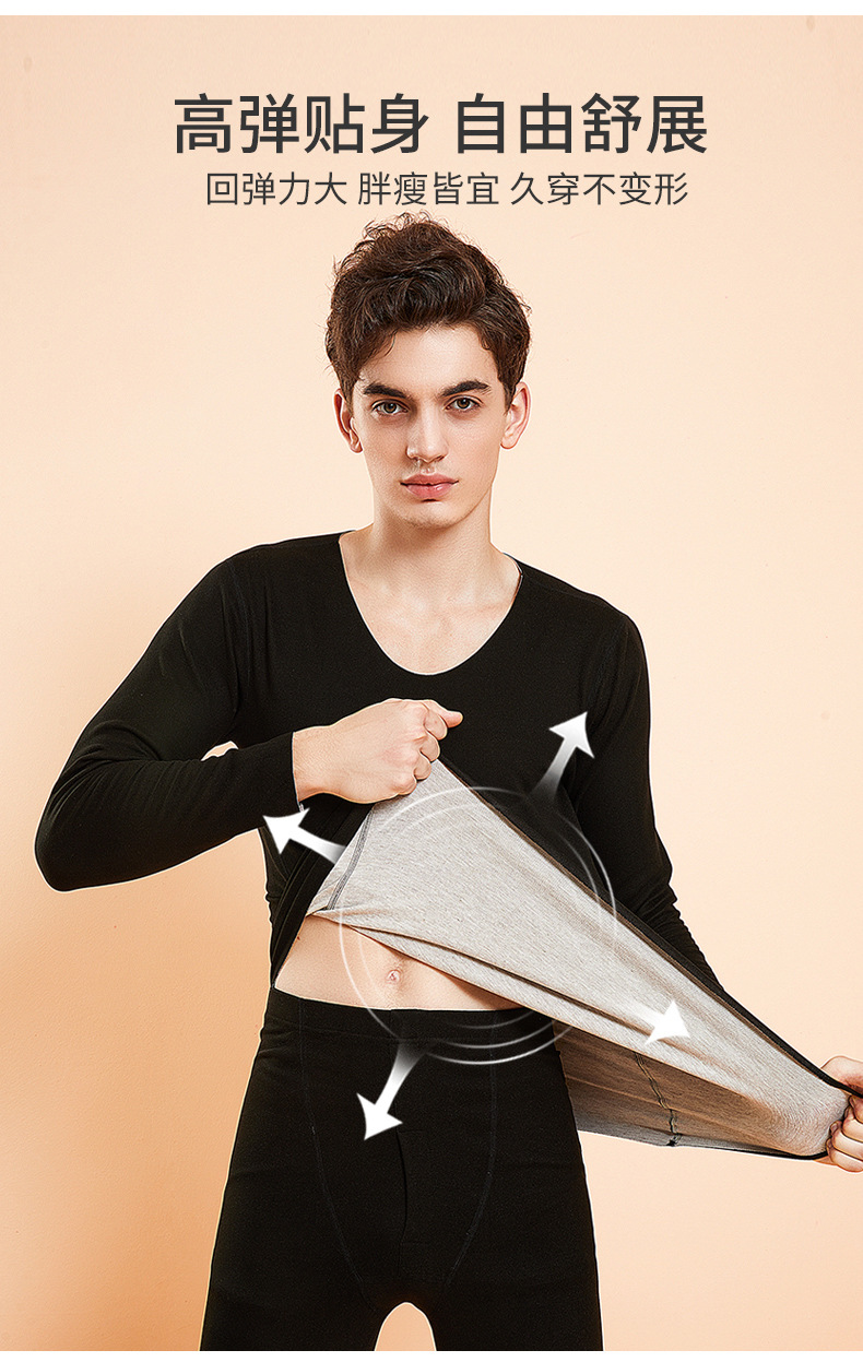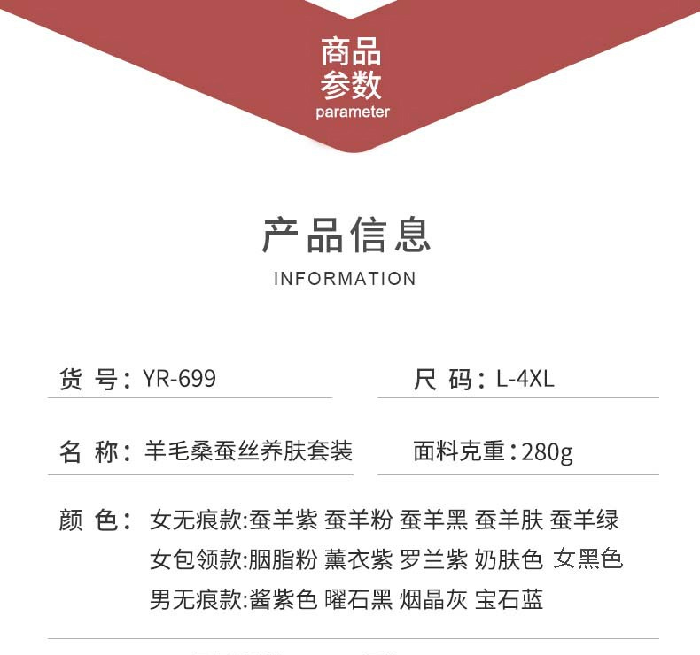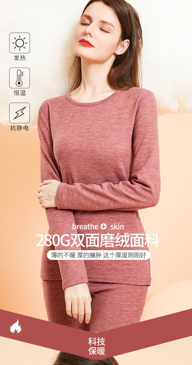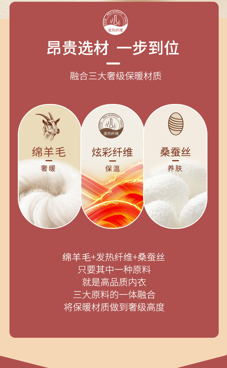 秋冬情侣款羊毛蚕丝保暖内衣 冬季保暖秋衣秋裤套装 女士打底衫套装