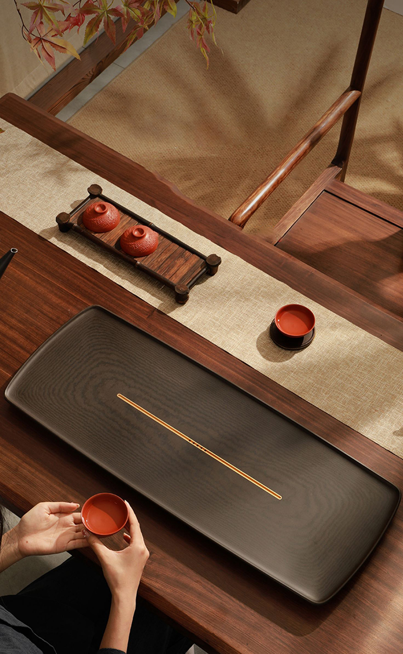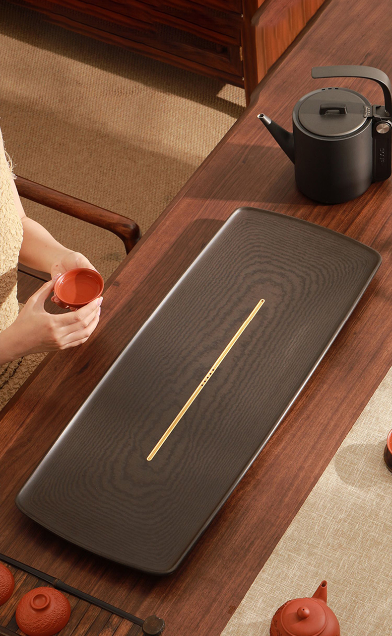 方舟/电木+黄铜 高端电木茶盘 轻奢现代整块家用简约排水泡茶茶海新中式茶具