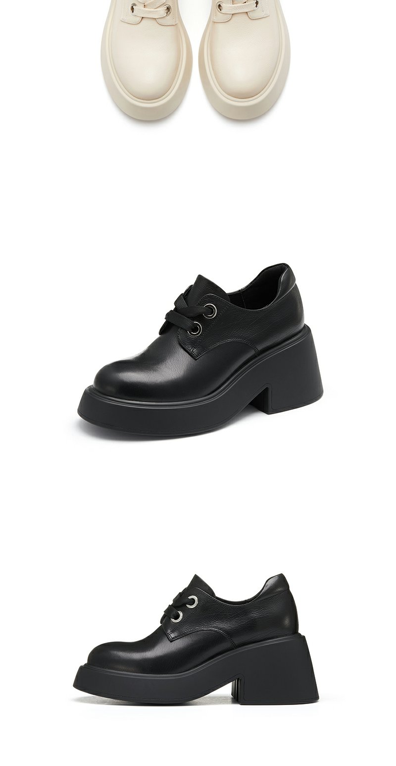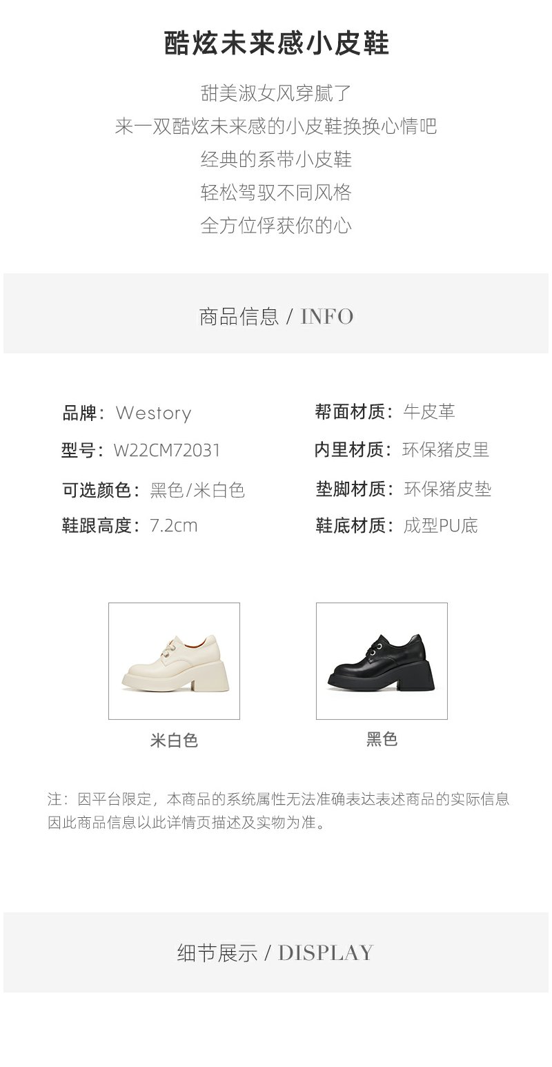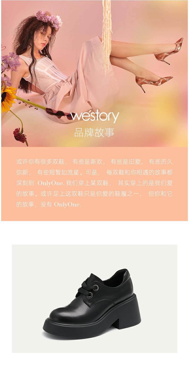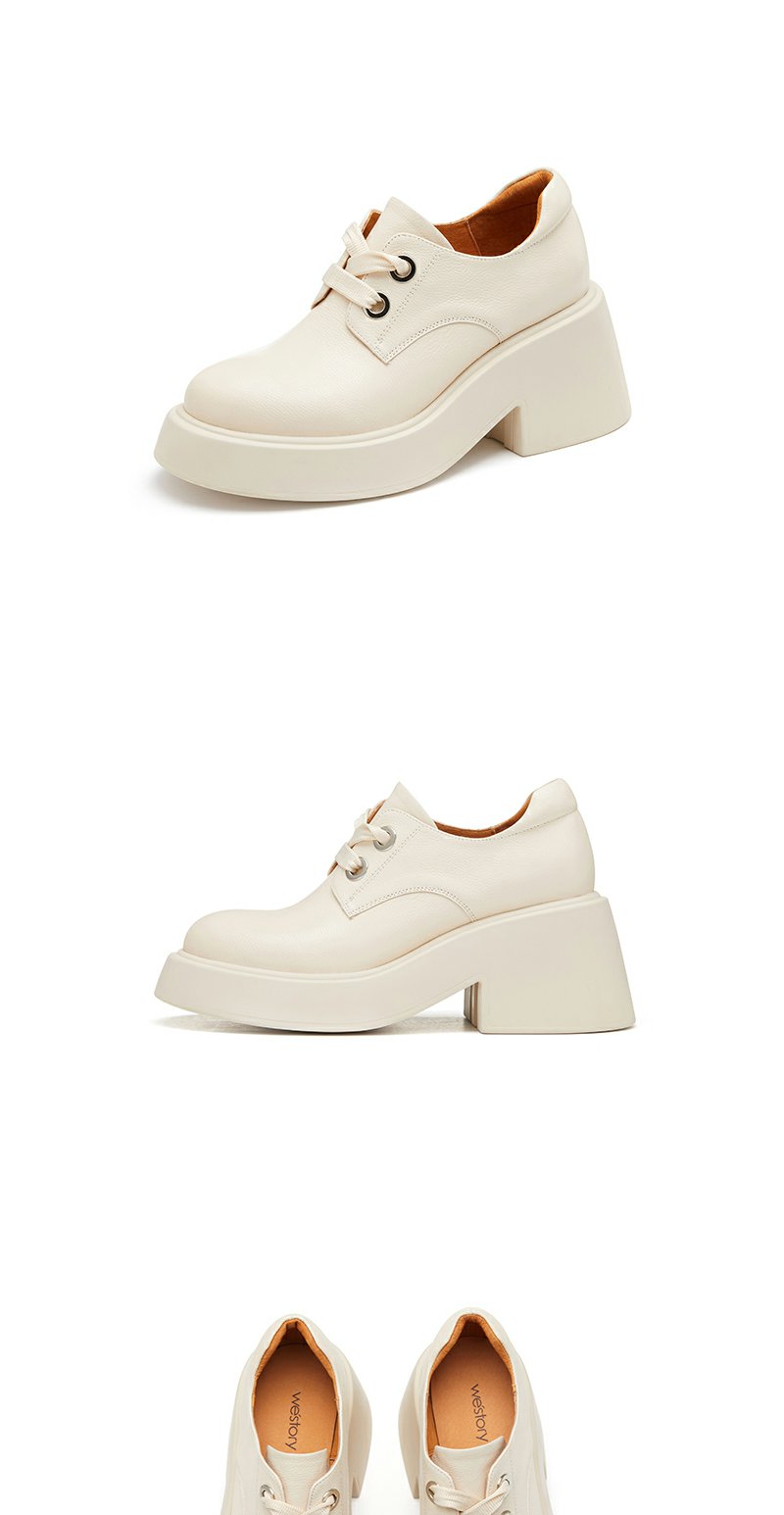 westory22年新款英伦风中性纯色系带厚底真皮小皮鞋显瘦增高72031