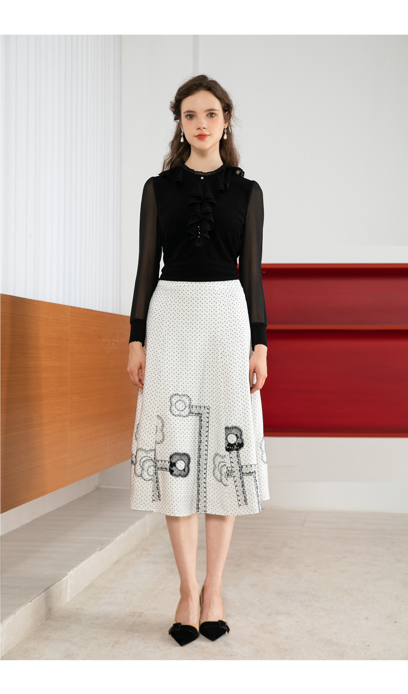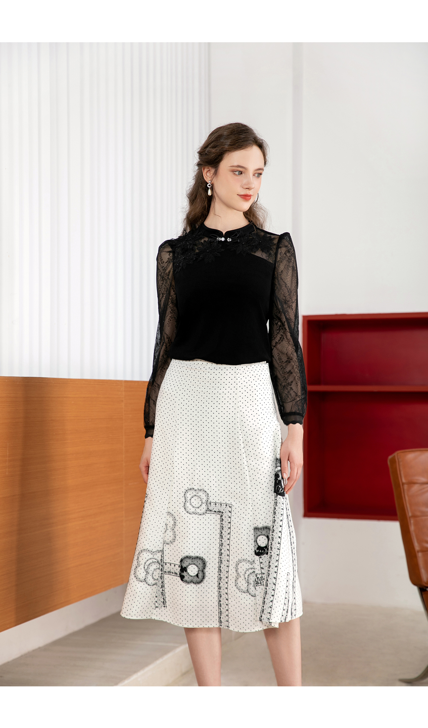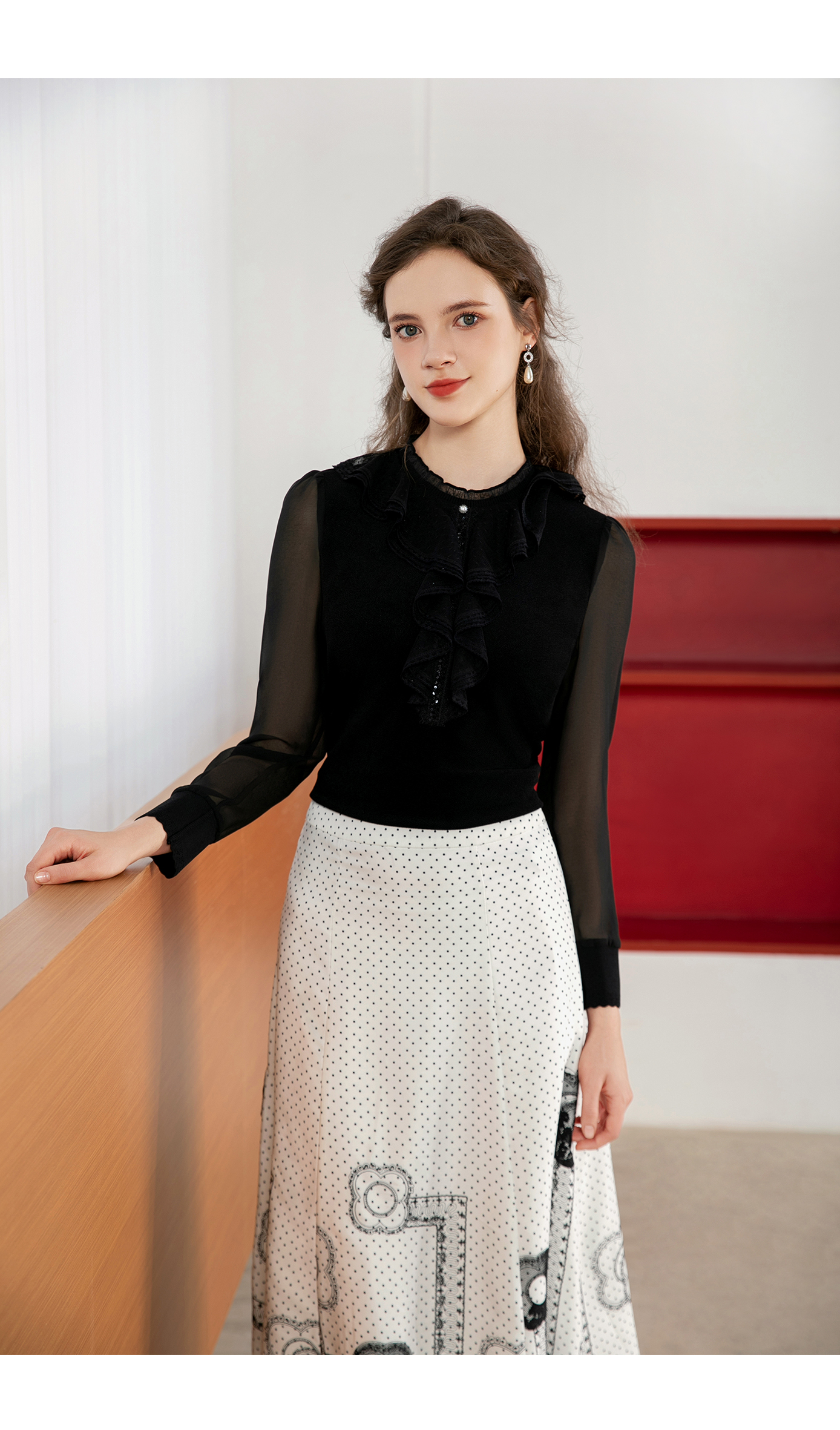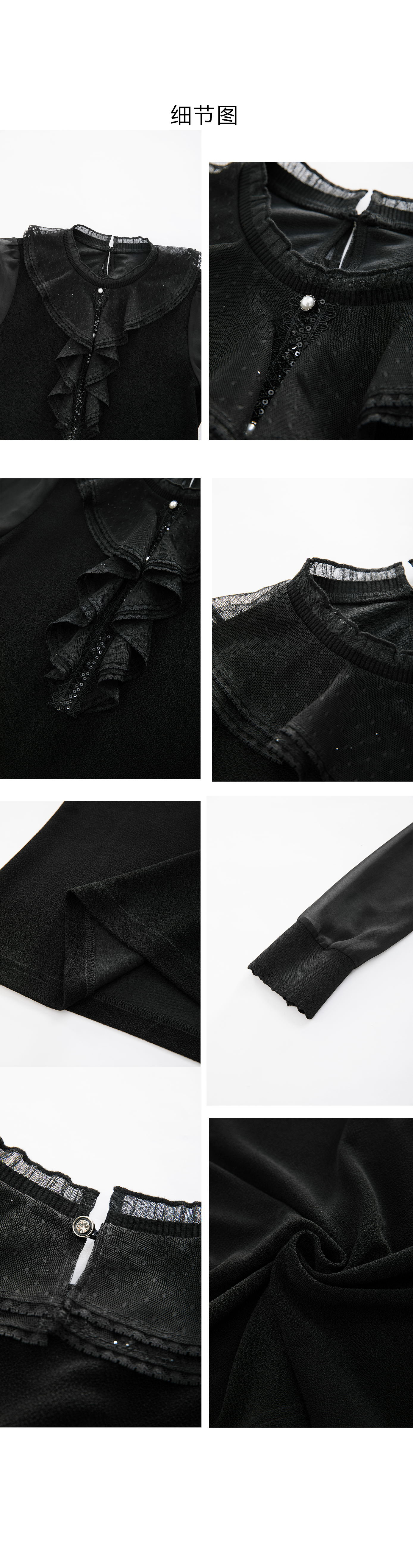 司歌弹力醋酸上衣套头荷叶蕾丝长袖T901244X