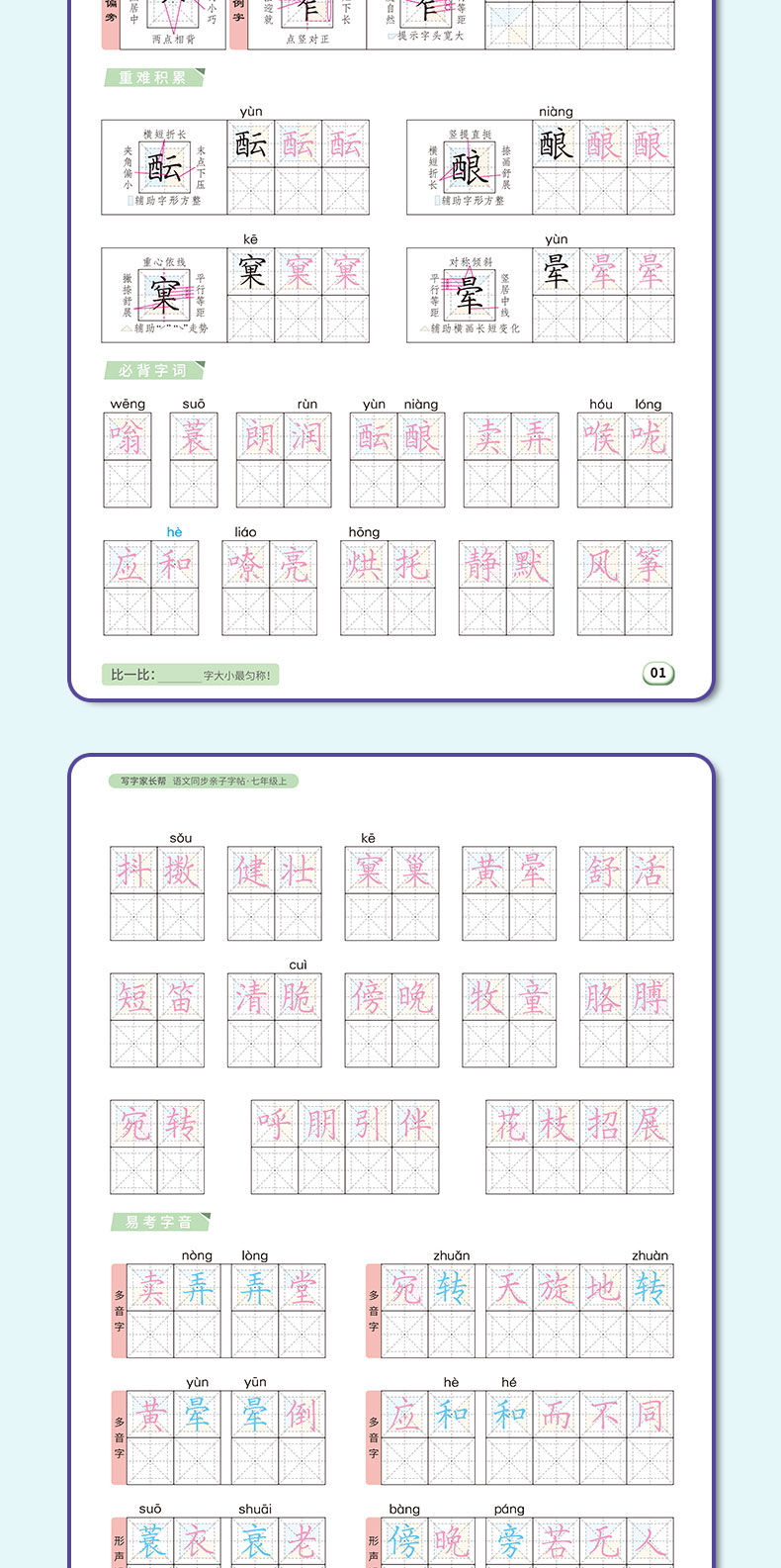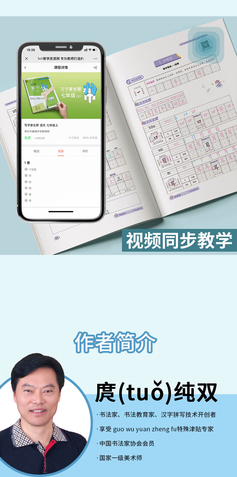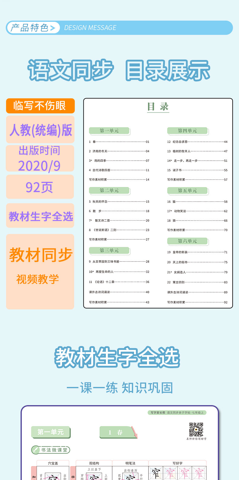 临犀书法字帖写字家长帮语文同步亲子字帖七年级上含视频教程庹纯双回米格初中生正楷钢笔临摹生字抄写本