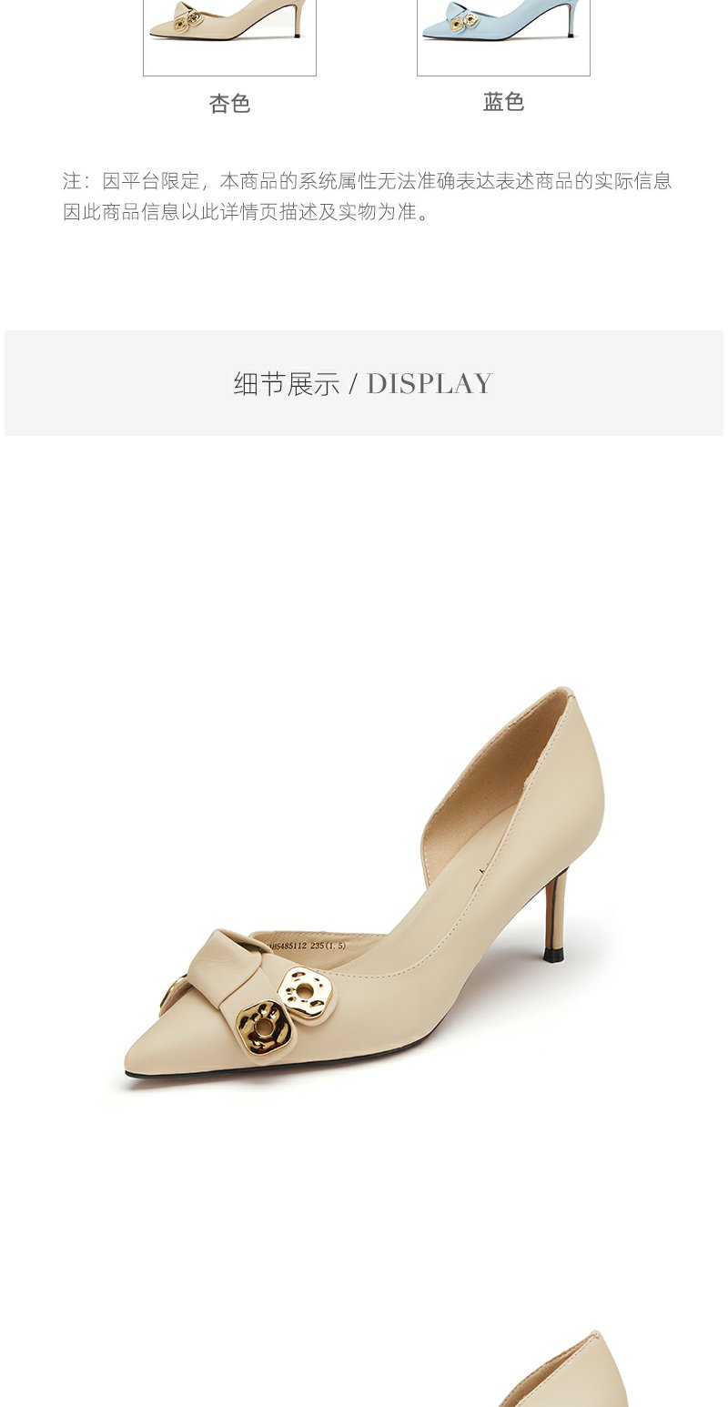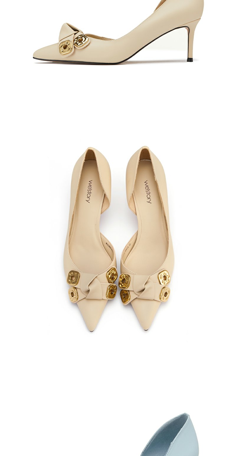 westory2022年新款法式气质尖头细高跟小金扣蝴蝶结单鞋女W22AH54851
