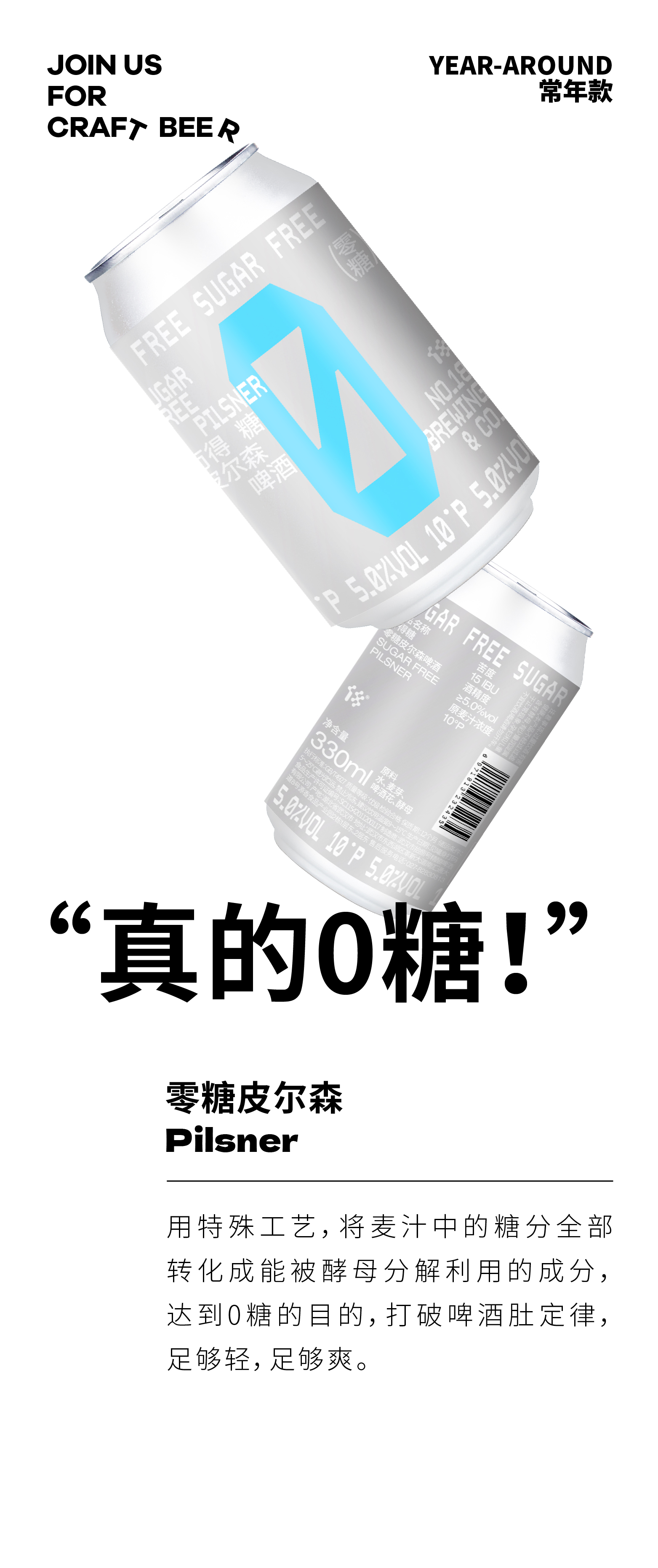 拾捌精酿 生*冇得糖零糖皮尔森·SUGAR FREE PILSNER 零糖皮尔森精酿啤酒 330ML