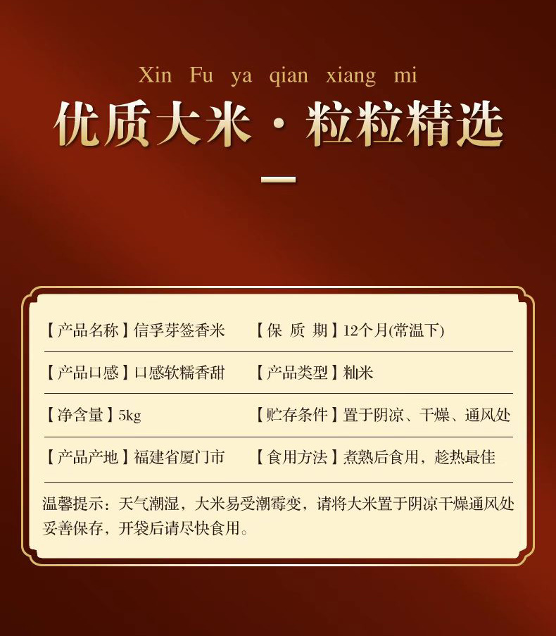 信孚1999芽签香米(5kg/袋)生产日期:2月