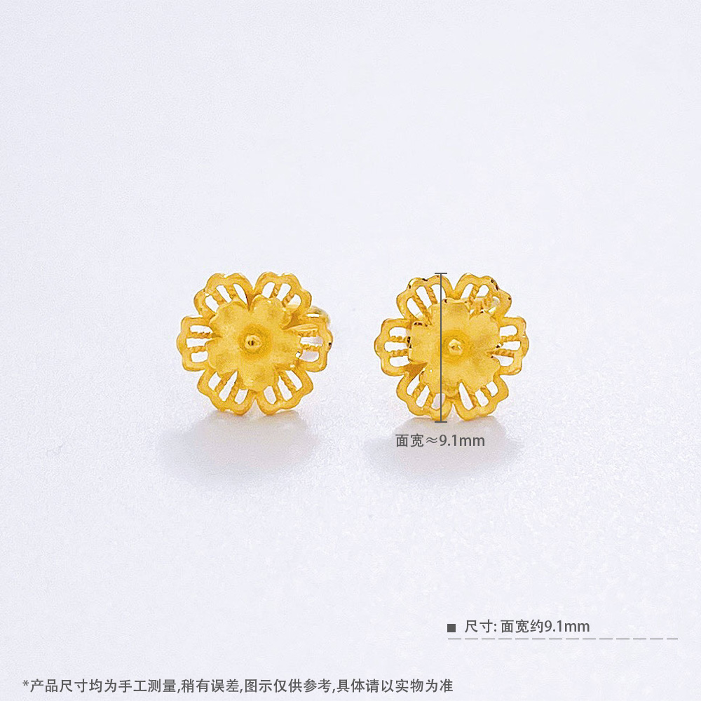 【限时克减150元】足金999.9 #幸福花嫁 #婚庆 【精品】镂空相约花期丁香花双层花卉耳饰耳钉繁花婚嫁耳饰(UWES00040)(预售产品下单后不退款不退货不换货不补差价