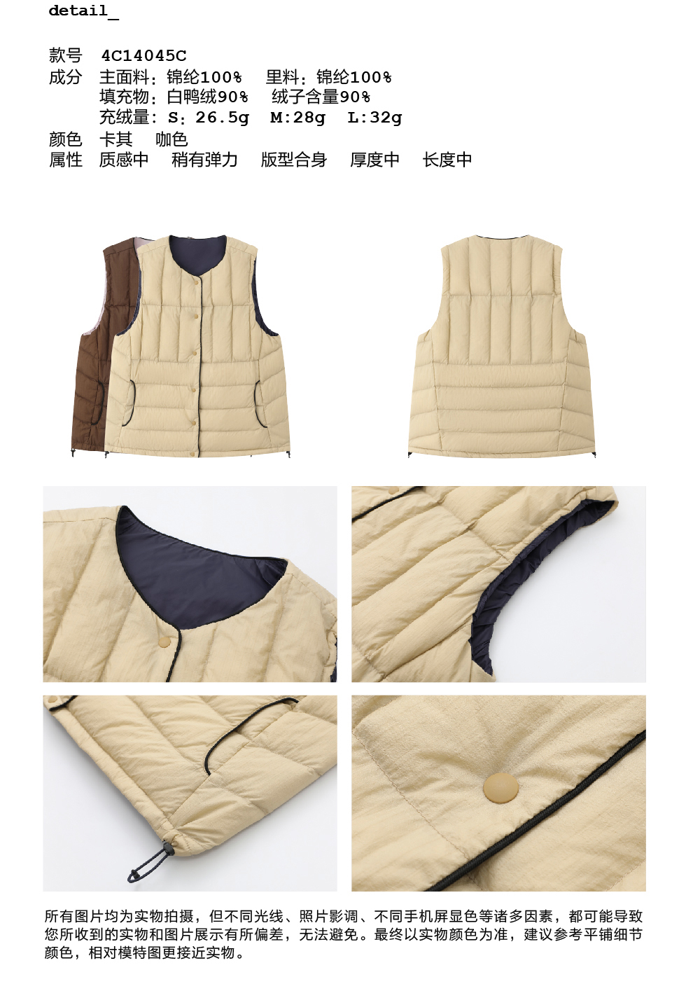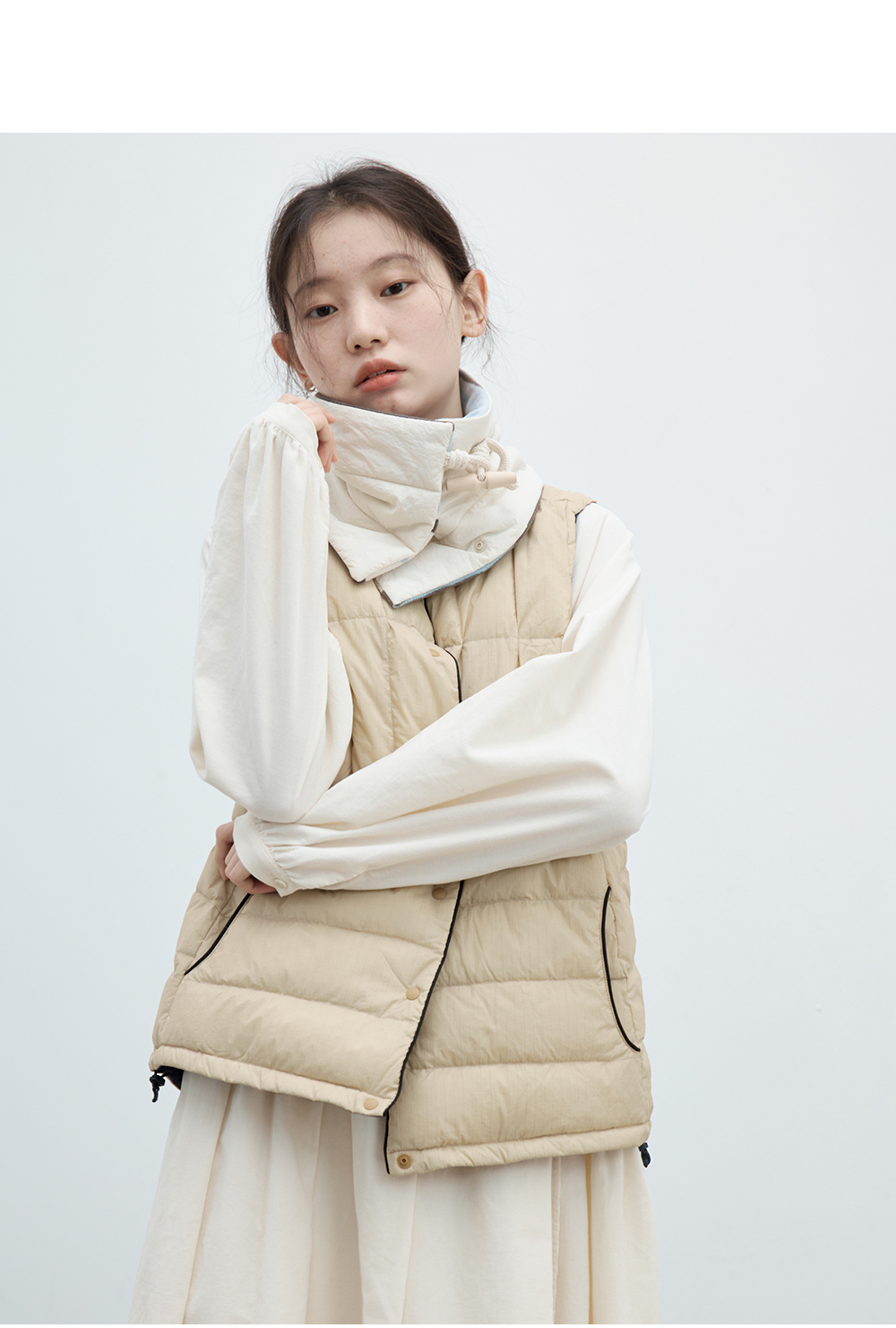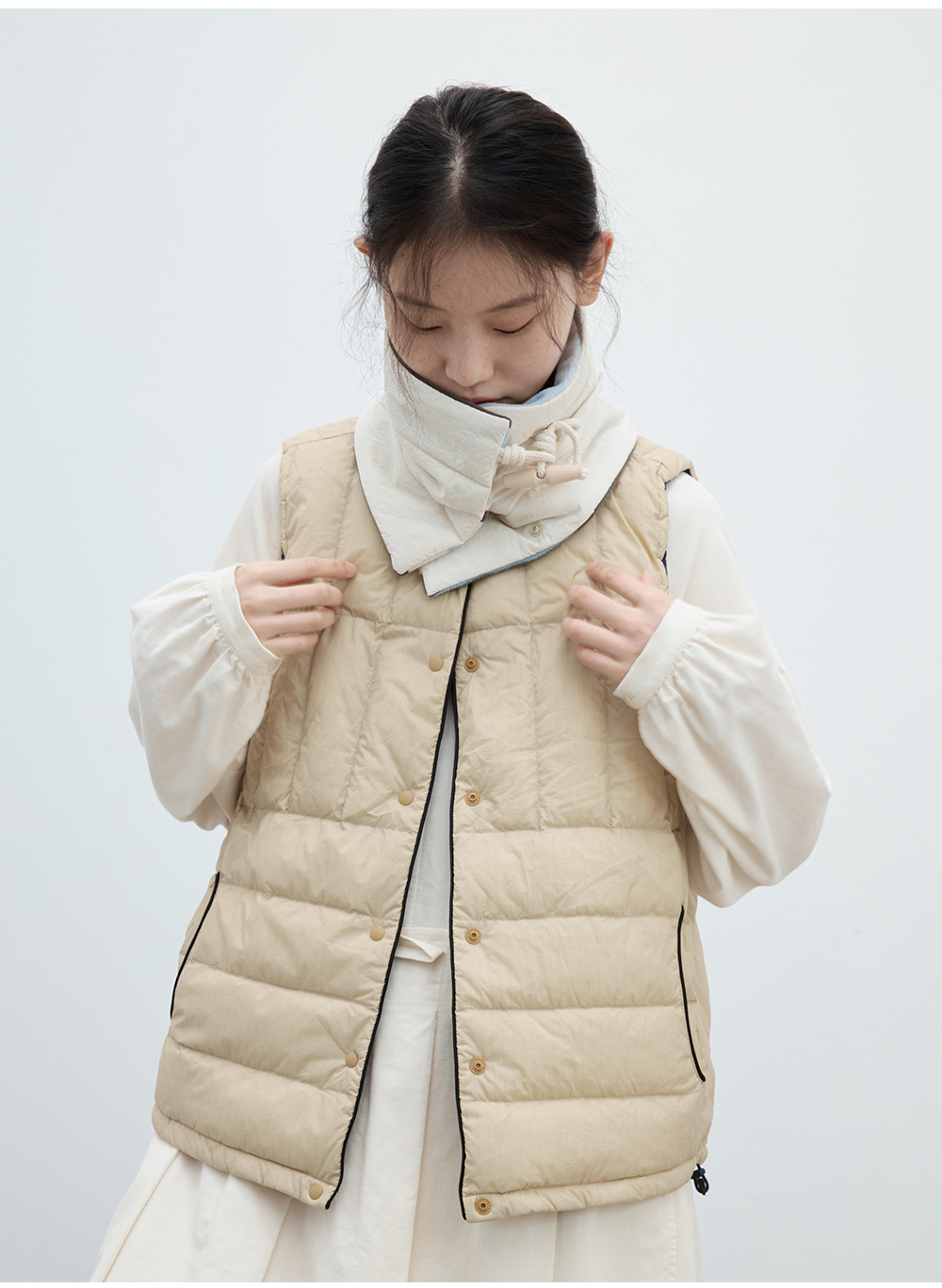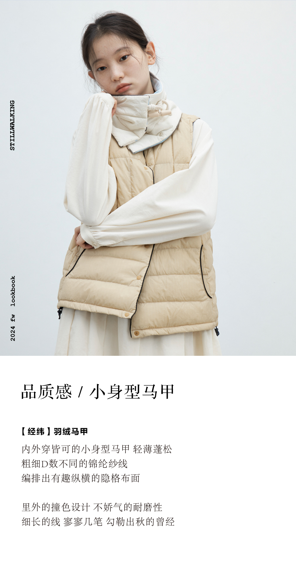 步履不停/4C14045C/无领保暖内搭轻薄羽绒小马甲外套