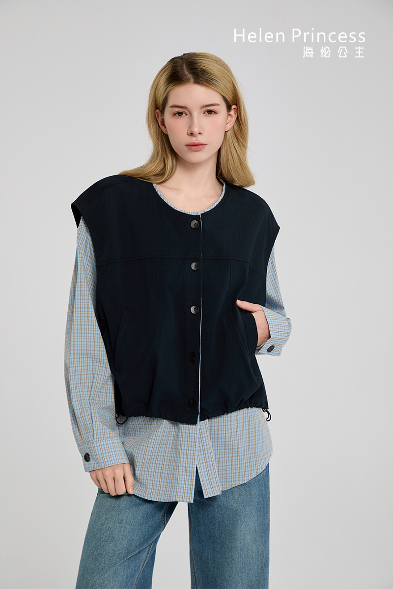 质感挺括的工装马甲与撞色格纹衬衫拼接搭配,展现个性不羁的时尚态度。面料亲肤柔软,日常穿着休闲舒适。
