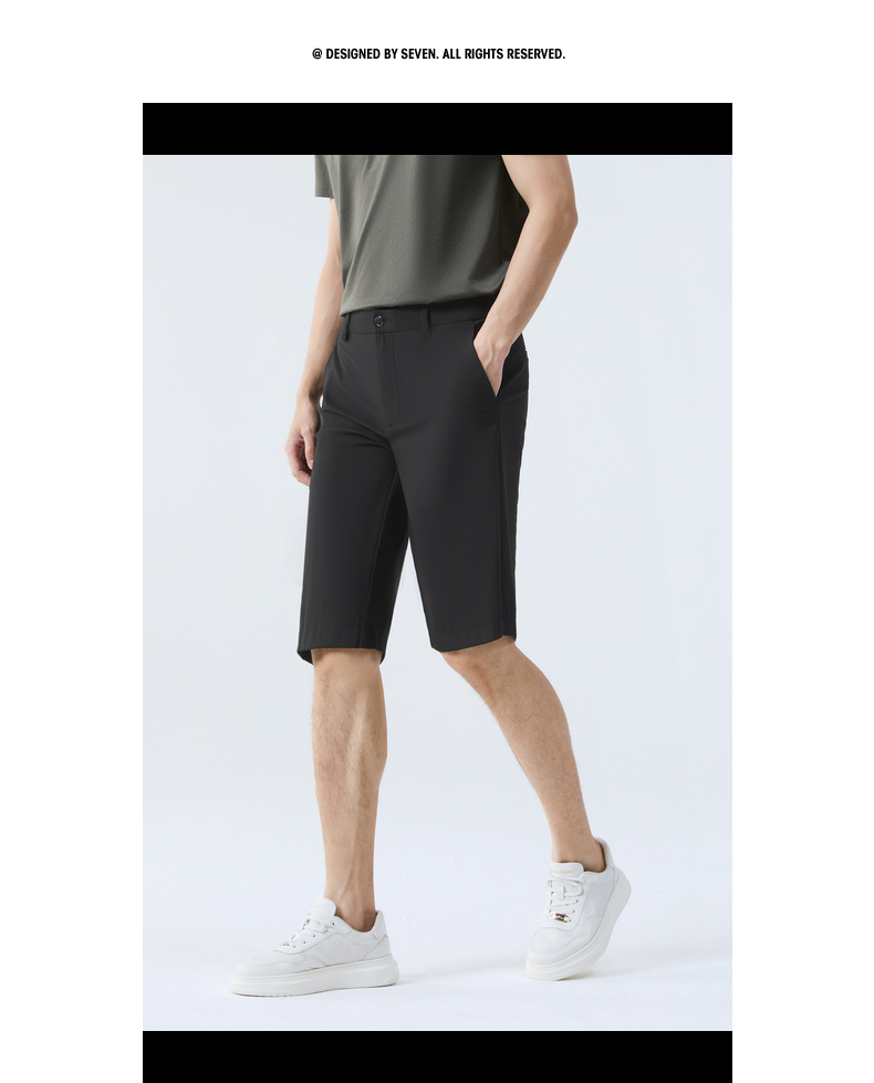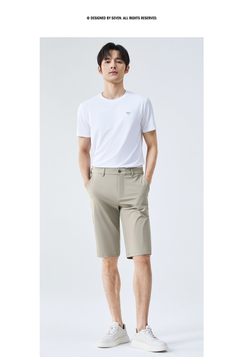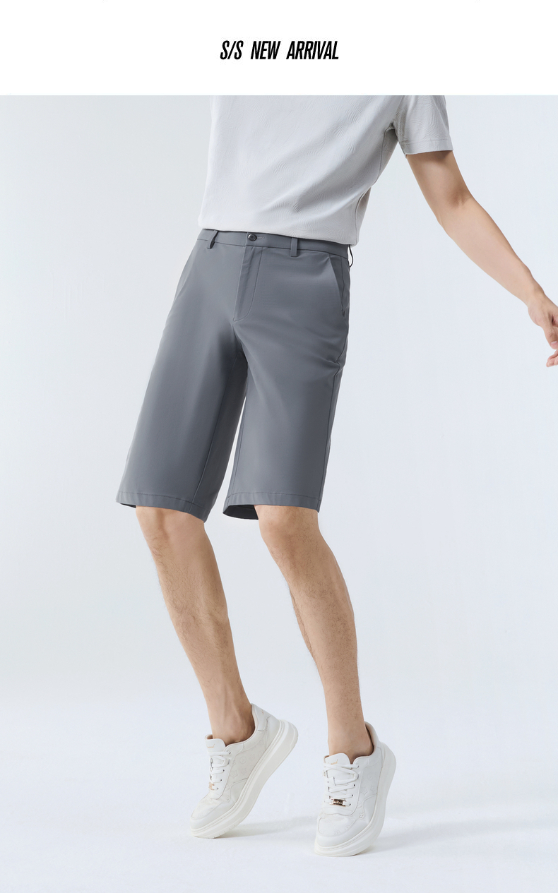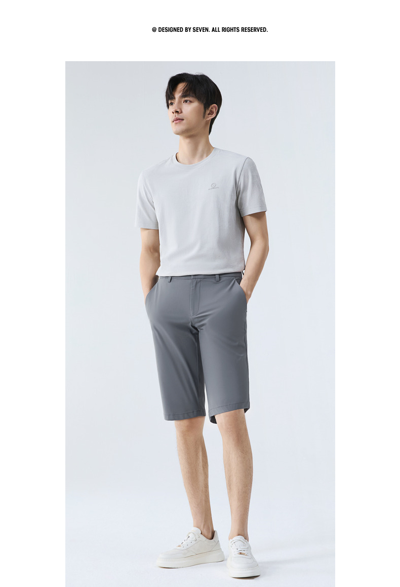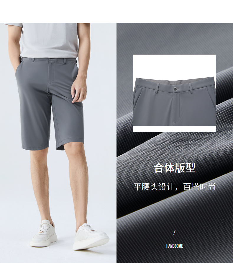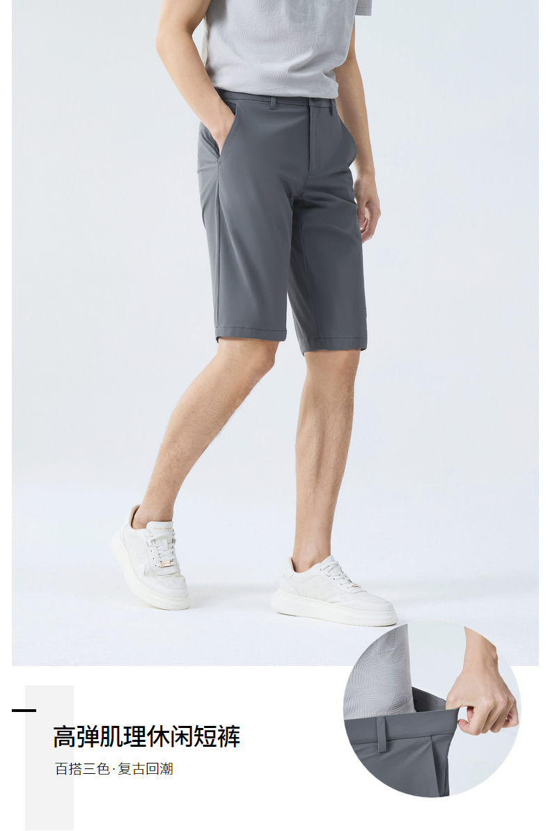 【高弹细条短裤】柒牌男式休闲短裤夏季新款商务通勤细条纹直筒裤128H73070