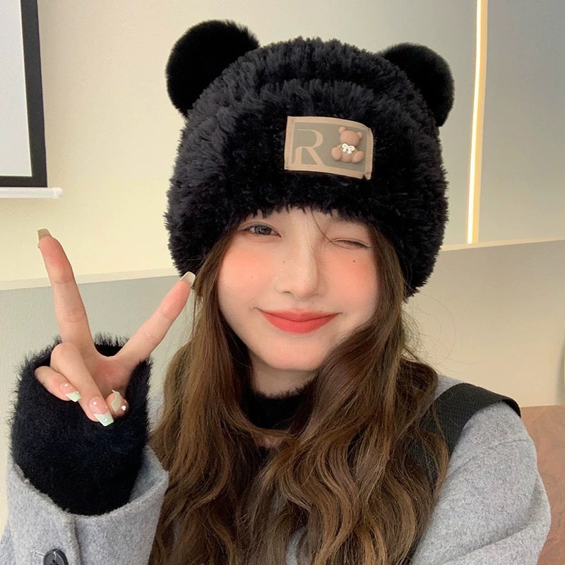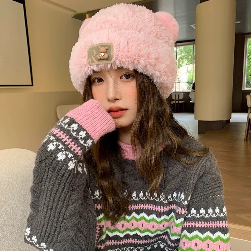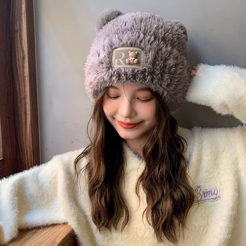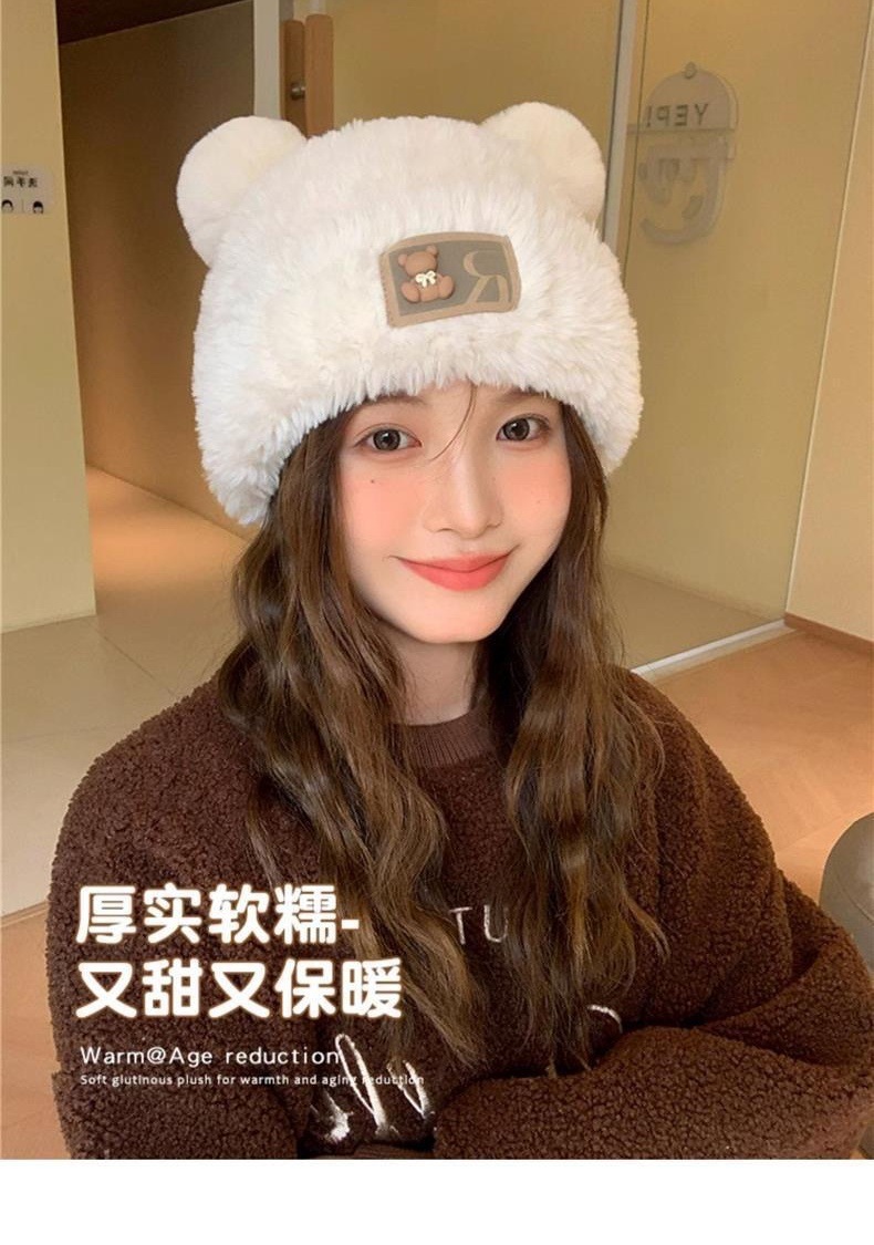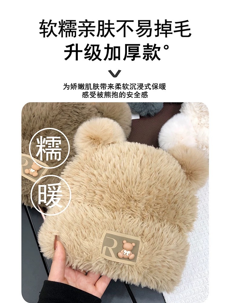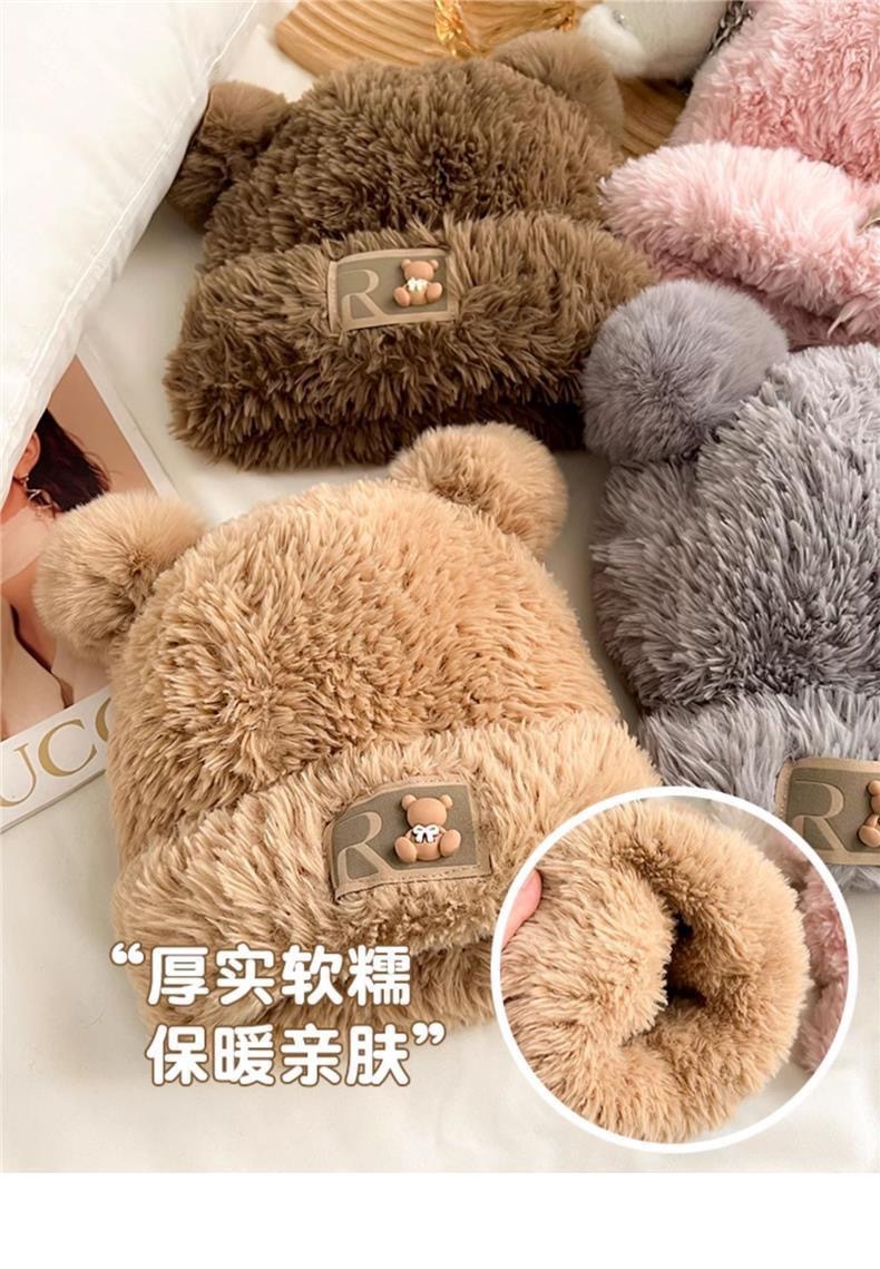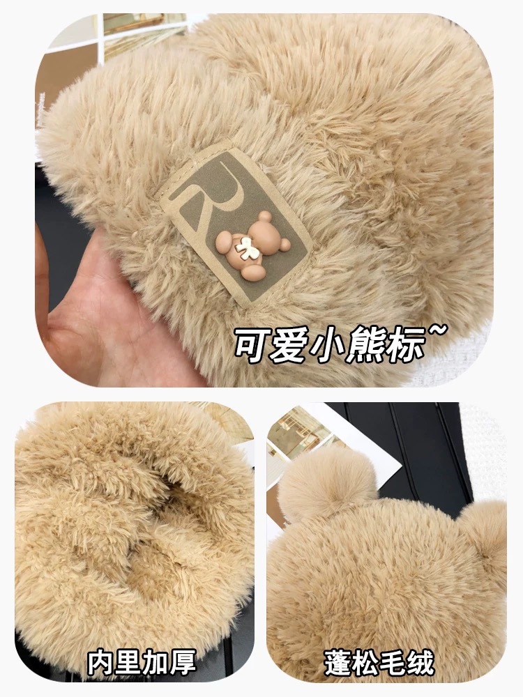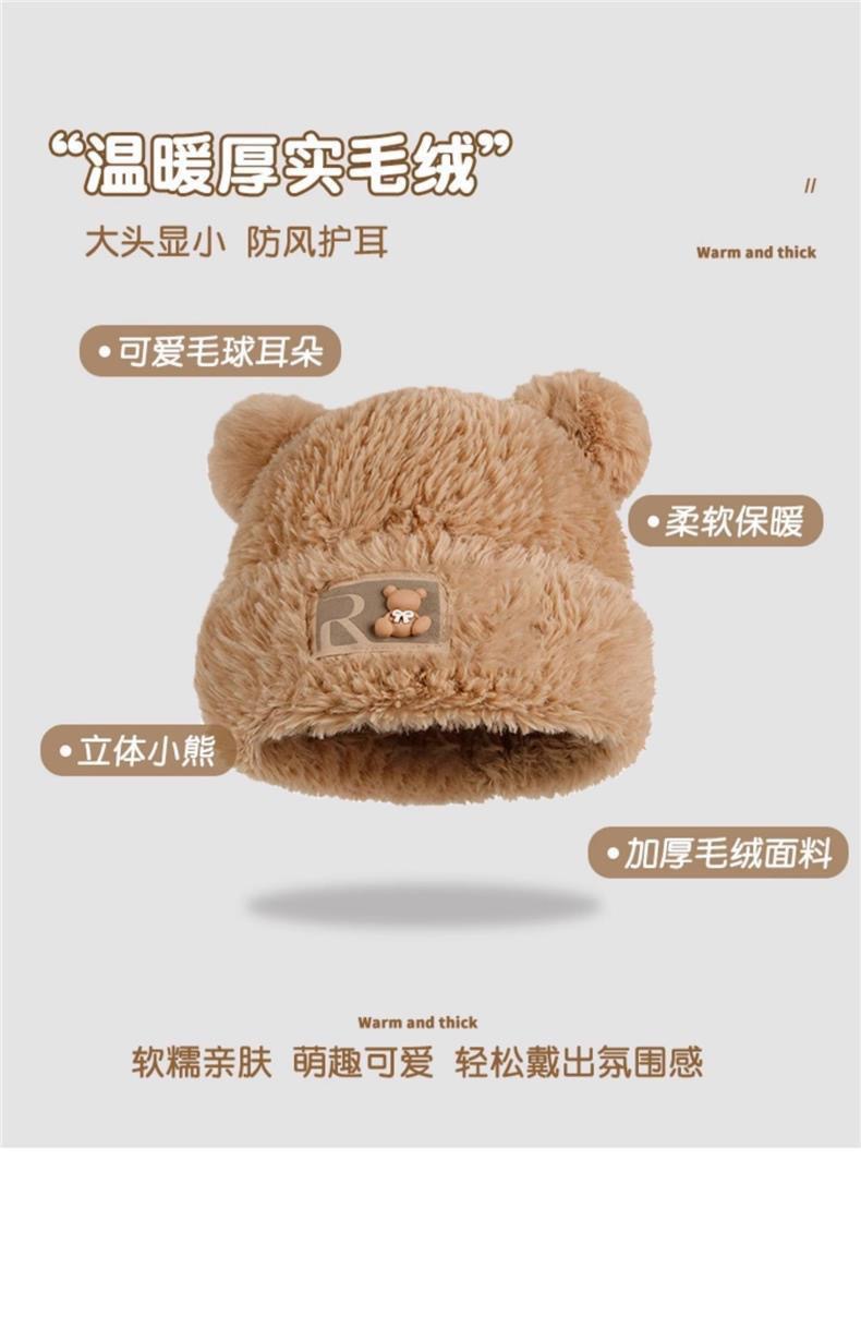 【潮搭神器❗️可爱小熊毛毛帽】超又上镜,大头显小防风护耳,软糯亲肤不易掉毛,又甜又保暖,秋冬季软糯毛绒大头围保暖包头毛线帽QQ