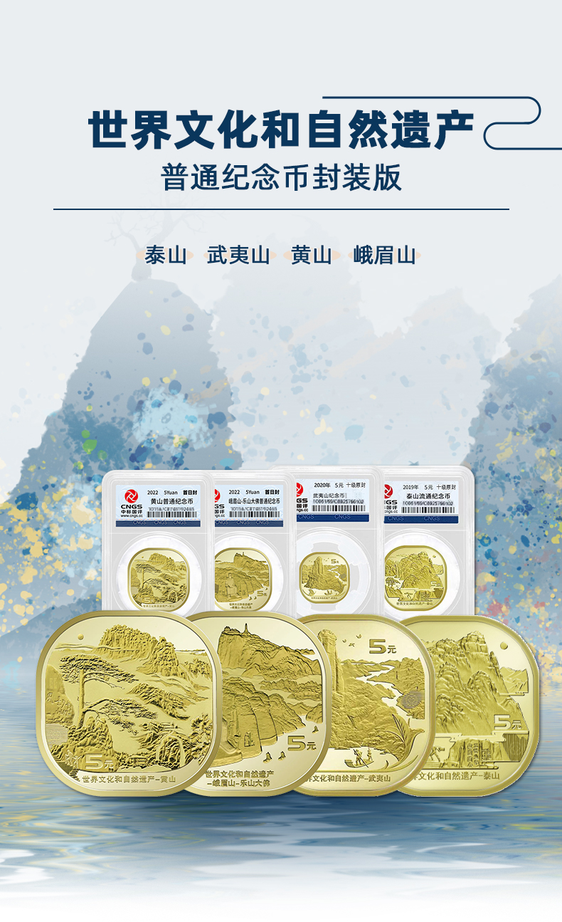 【封装币】世界文化和自然遗产系列纪念币(泰山/武夷山/黄山/峨眉山)