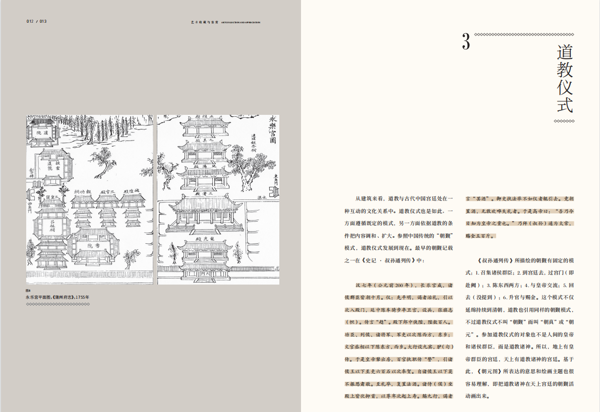 20 世纪 60 年代,以王逊先生为代表的老一辈学者对永乐宫壁画进行的研究,开启了探索道教美术的征程。自此以后,海内外学者于永乐宫课题多有建树,内容遍及壁画、建筑、工匠、技法以及宗教、仪式、民俗等多个方面,使永乐宫艺术成为可与敦煌艺术相媲美的中国宗教艺术研究领域的翘楚。