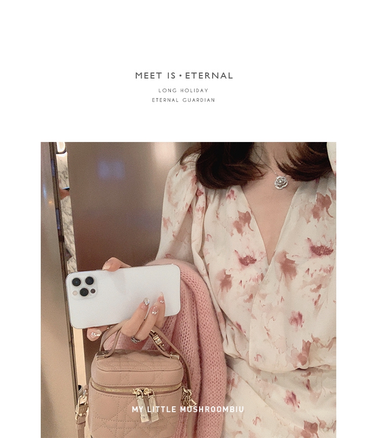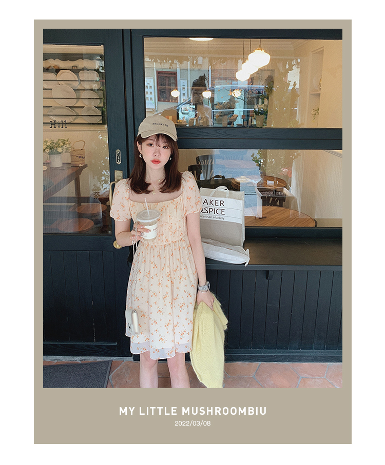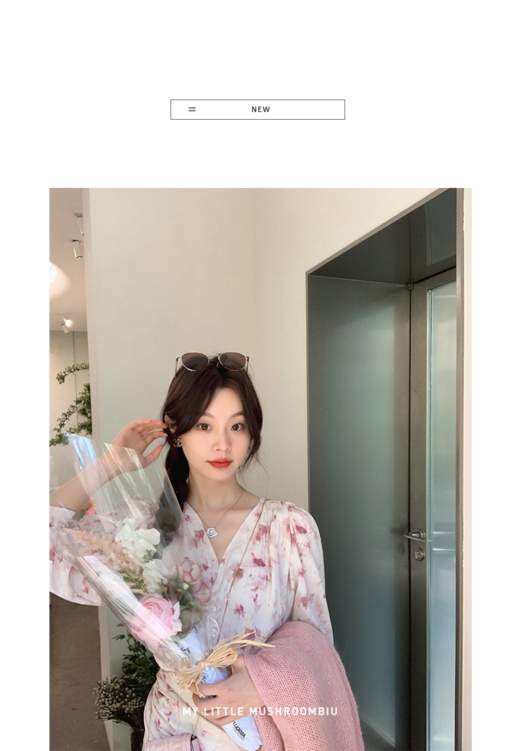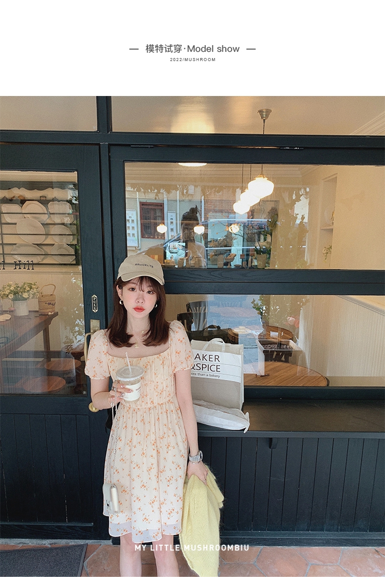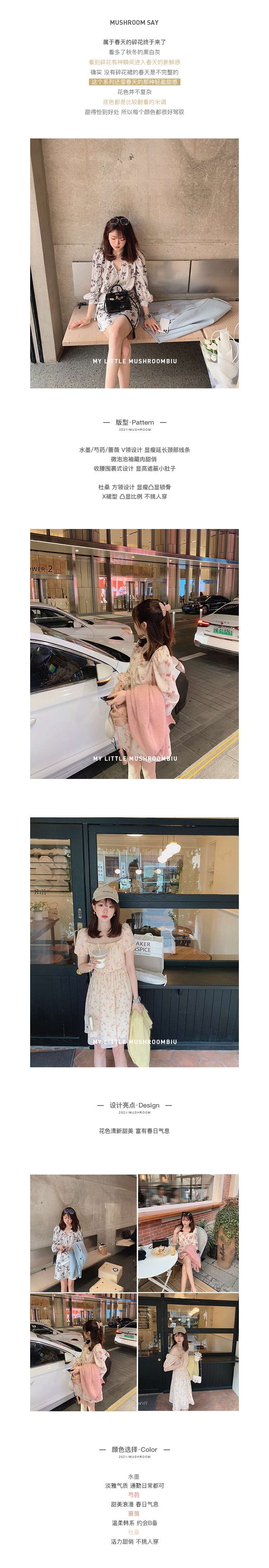 金蘑菇菇【春甜杜桑 印花系列】定制花色!法式碎花连衣裙
