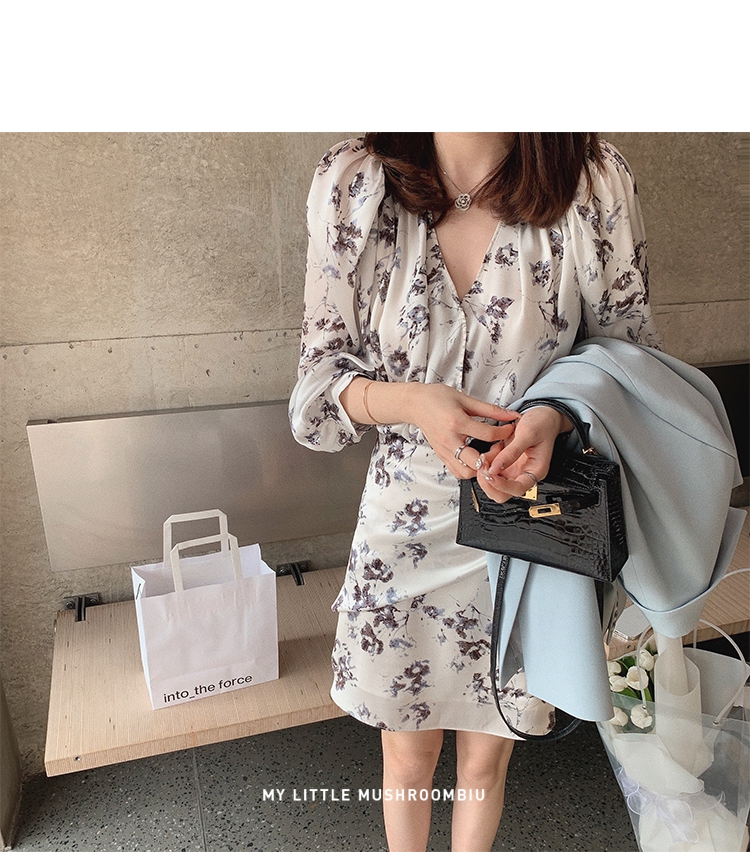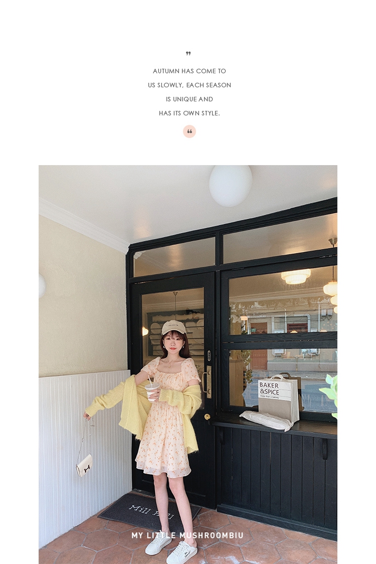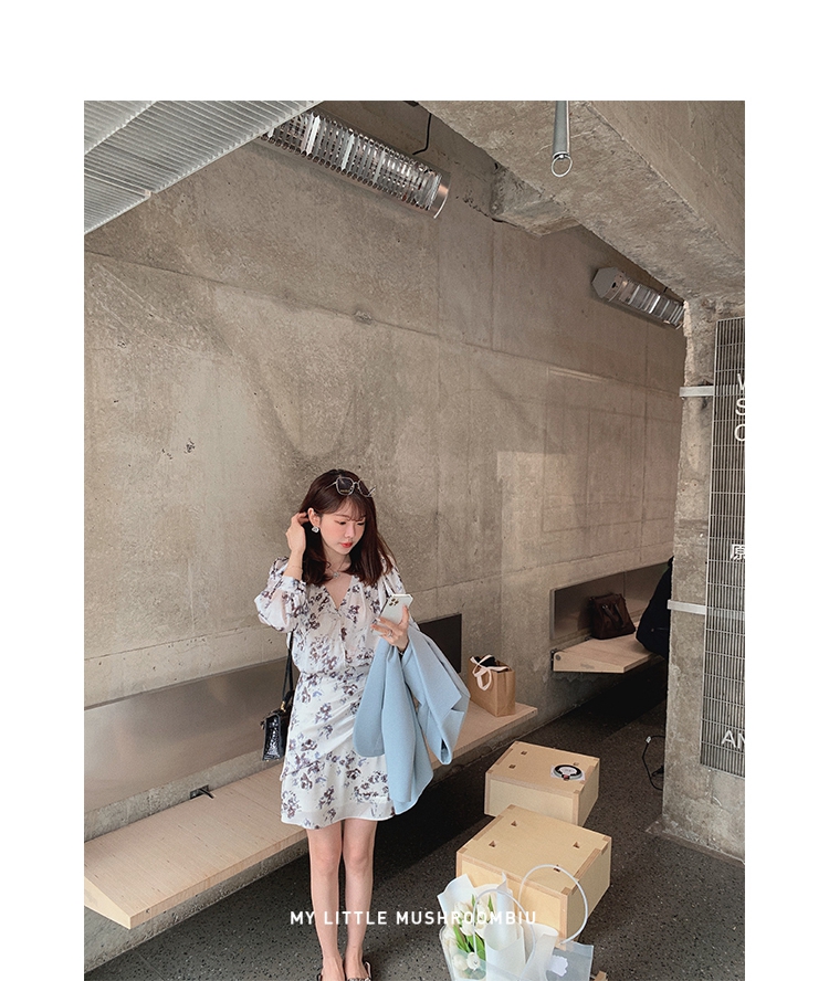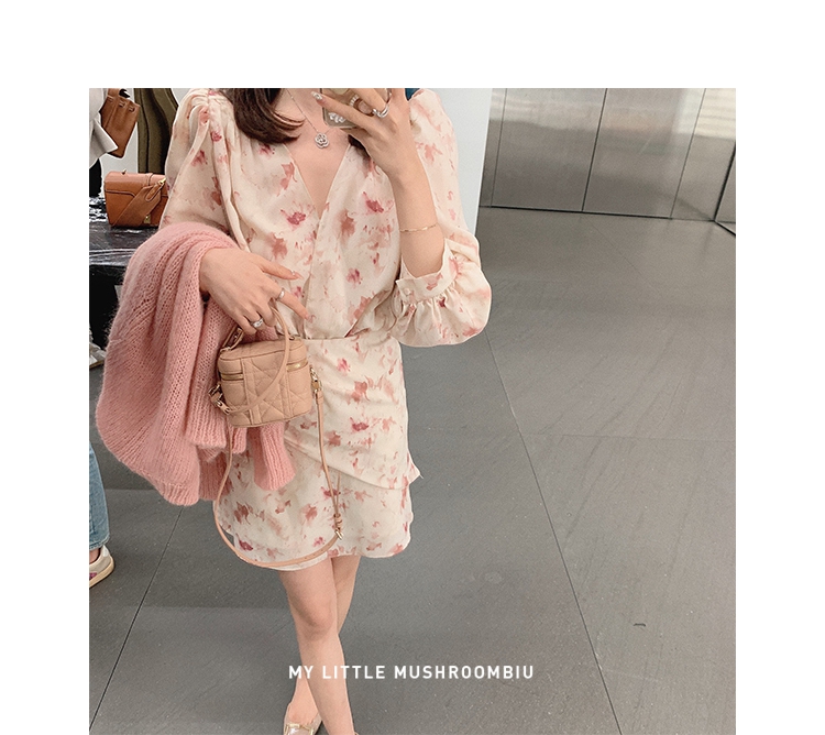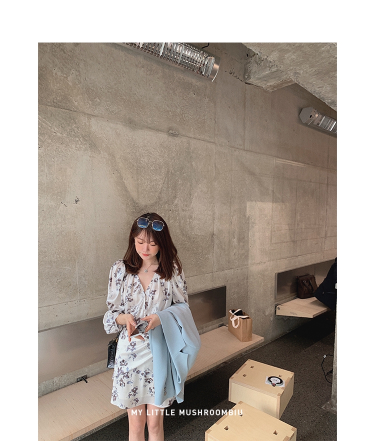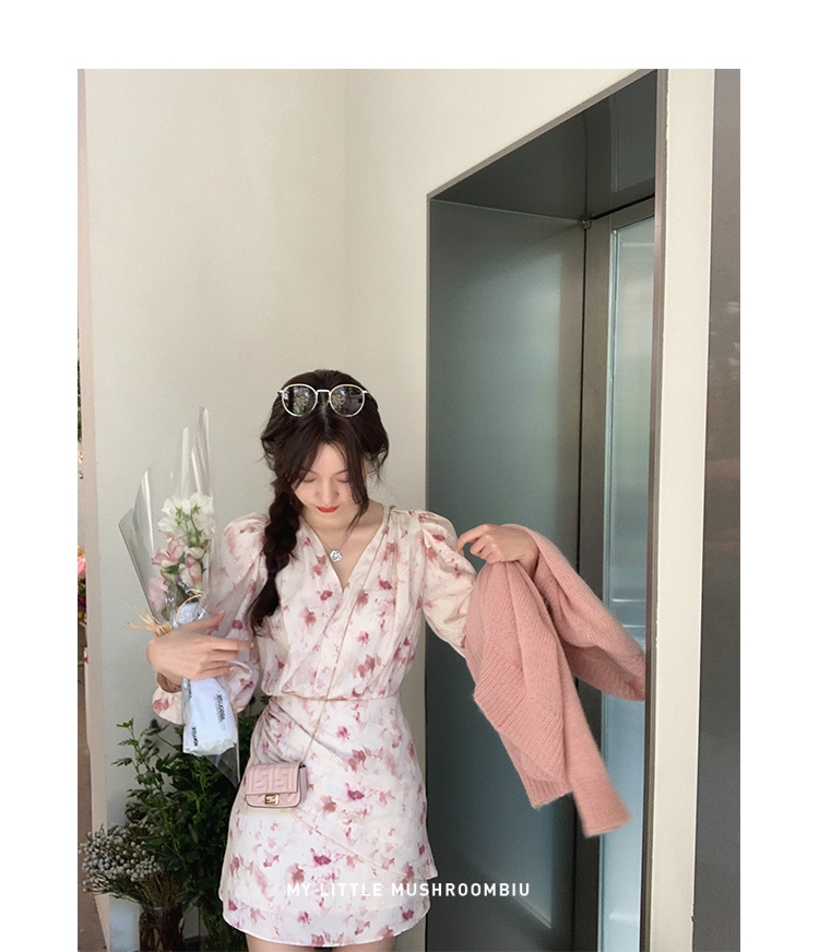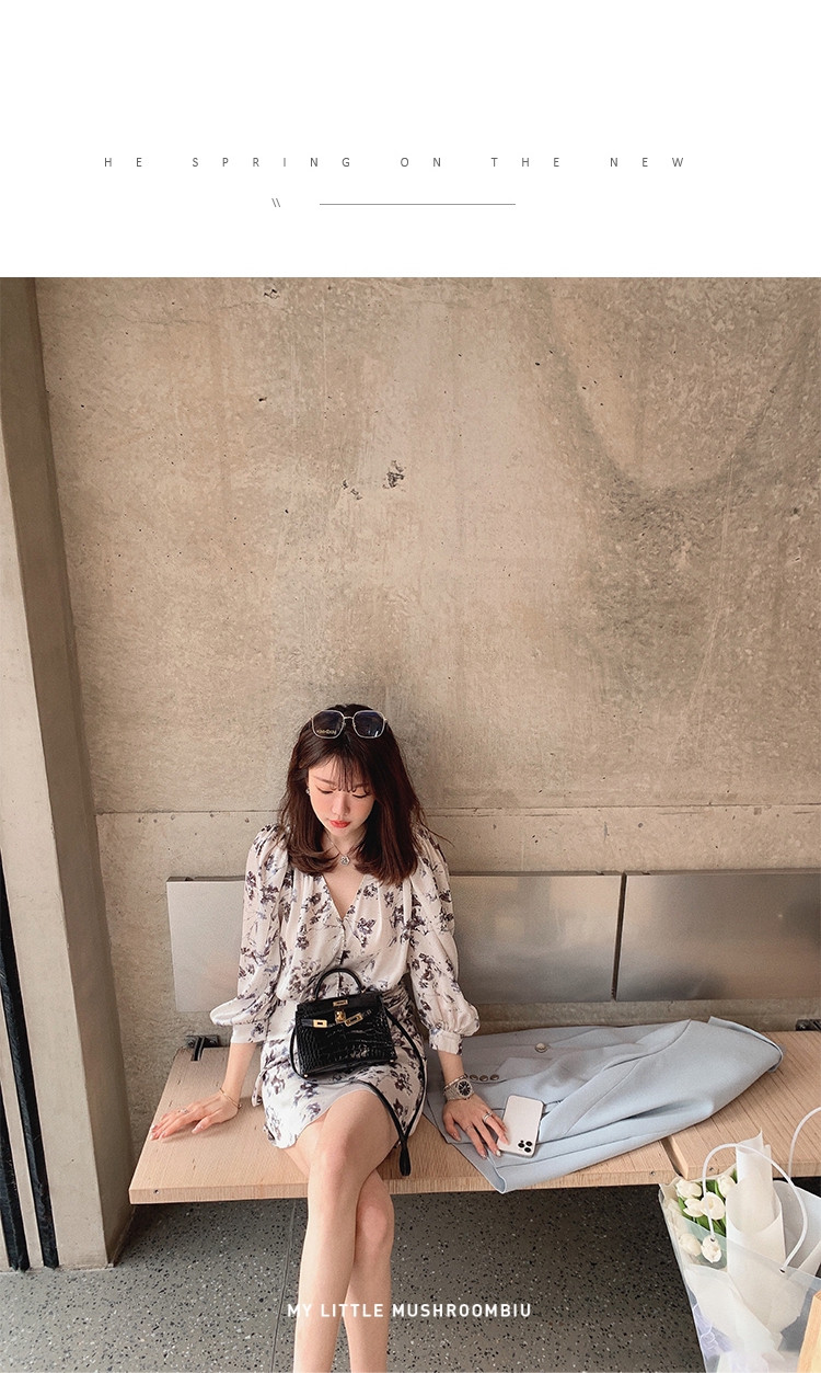 金蘑菇菇【春甜杜桑 印花系列】定制花色!法式碎花连衣裙