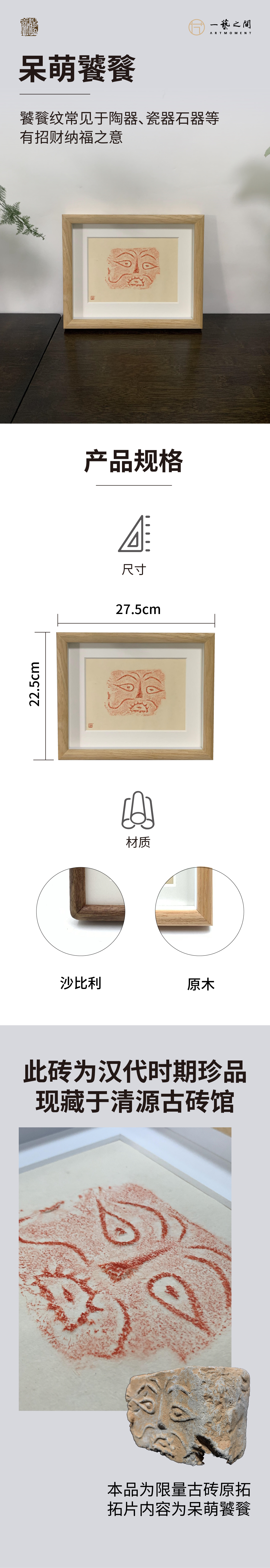 《呆萌饕餮》古砖纯手工拓片非遗技艺包邮发货【清源古砖馆x一艺之间】