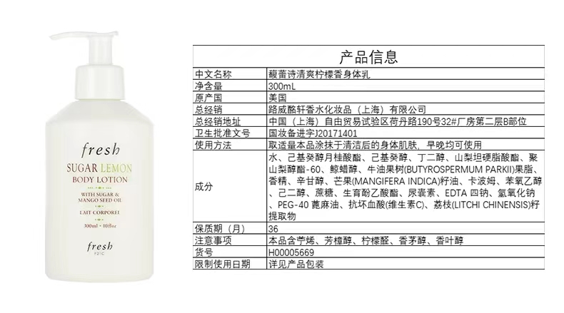 Fresh馥蕾诗香甜柠檬身体乳 300ml
