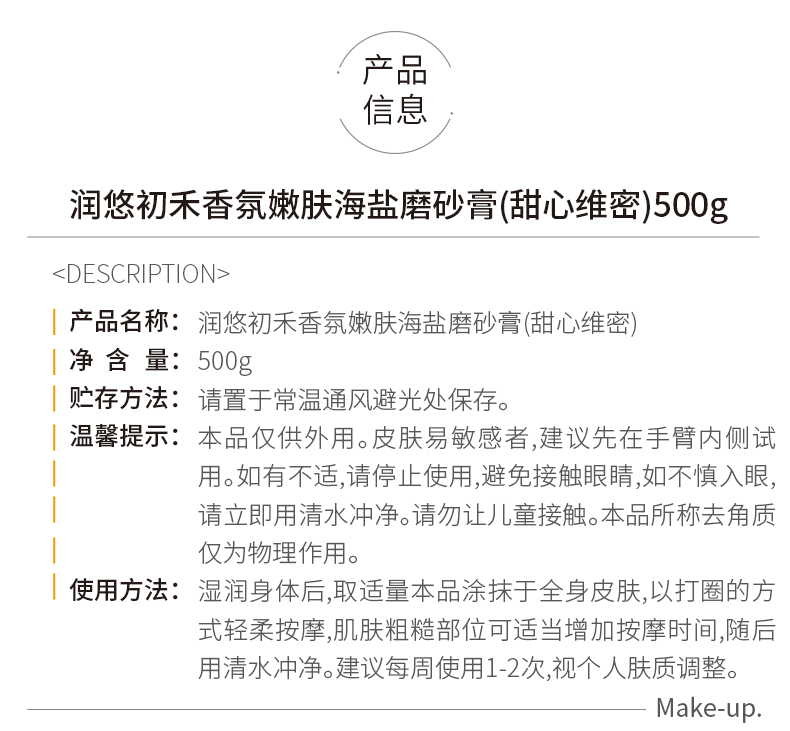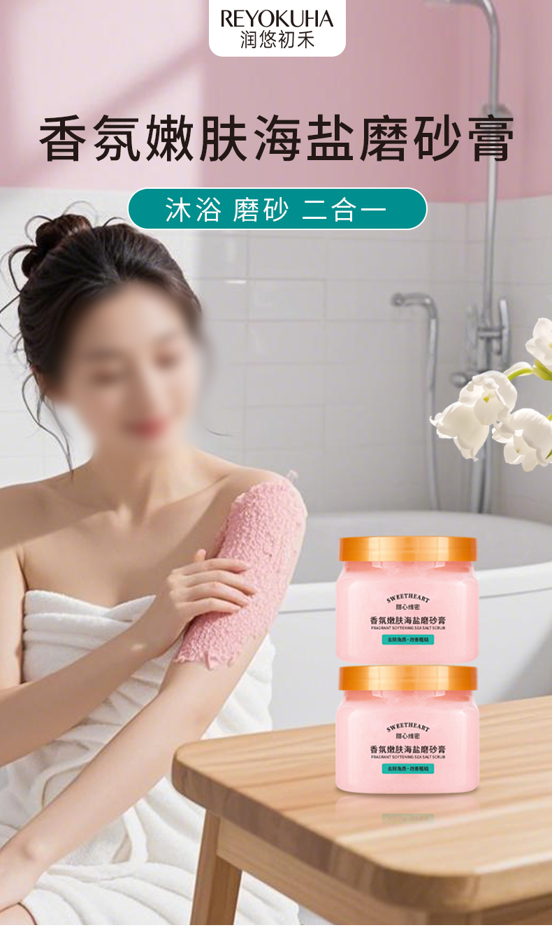 润悠初禾香氛嫩肤海盐磨砂膏(甜心维密)500g(250438)