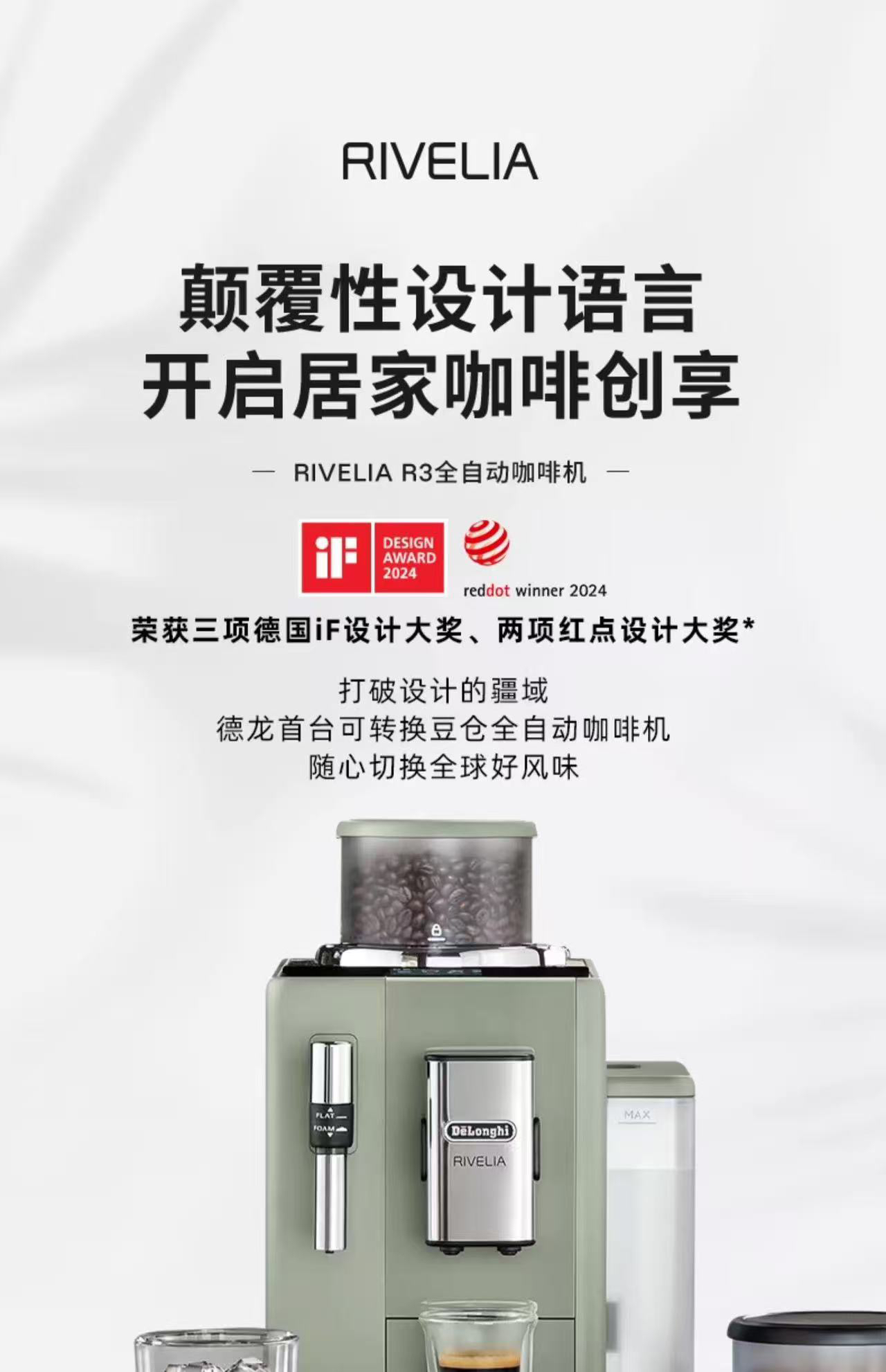 德龙全自动咖啡机R3W或者R3.GR两种颜色 颜色联系客服确认 官方折扣机样品机 购买日期开始全国联保两年 含票含运