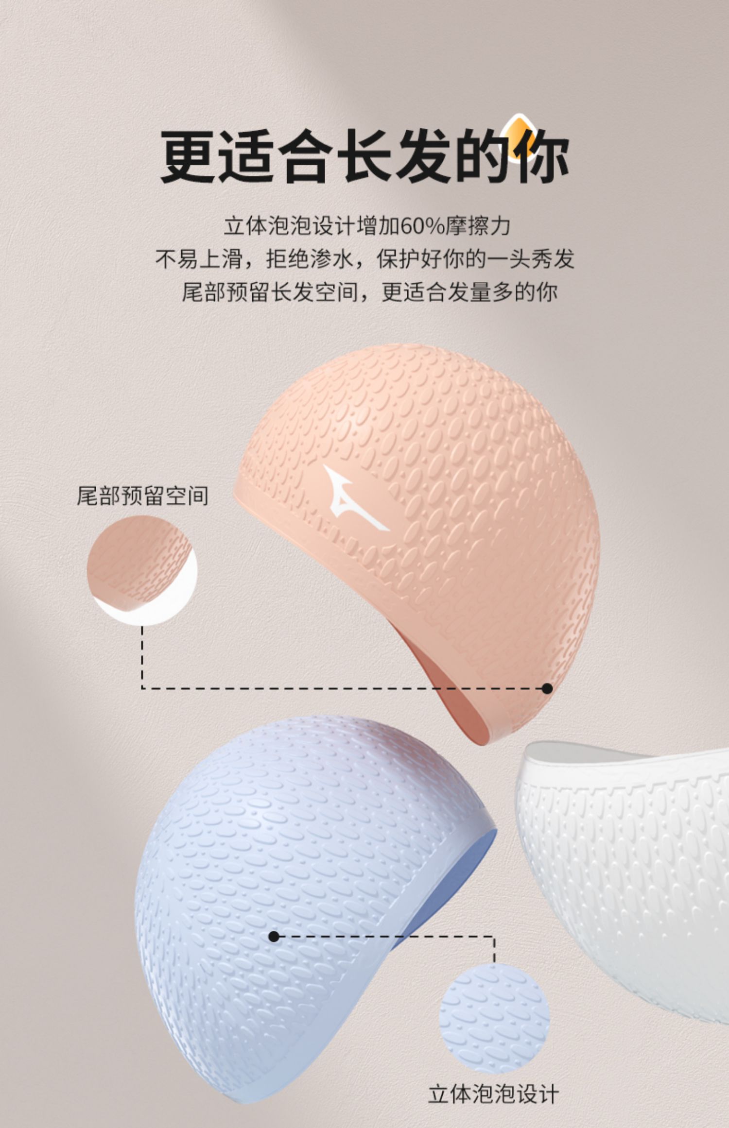 【美津浓】成人加大护耳防水长发泳帽N2CW1S53