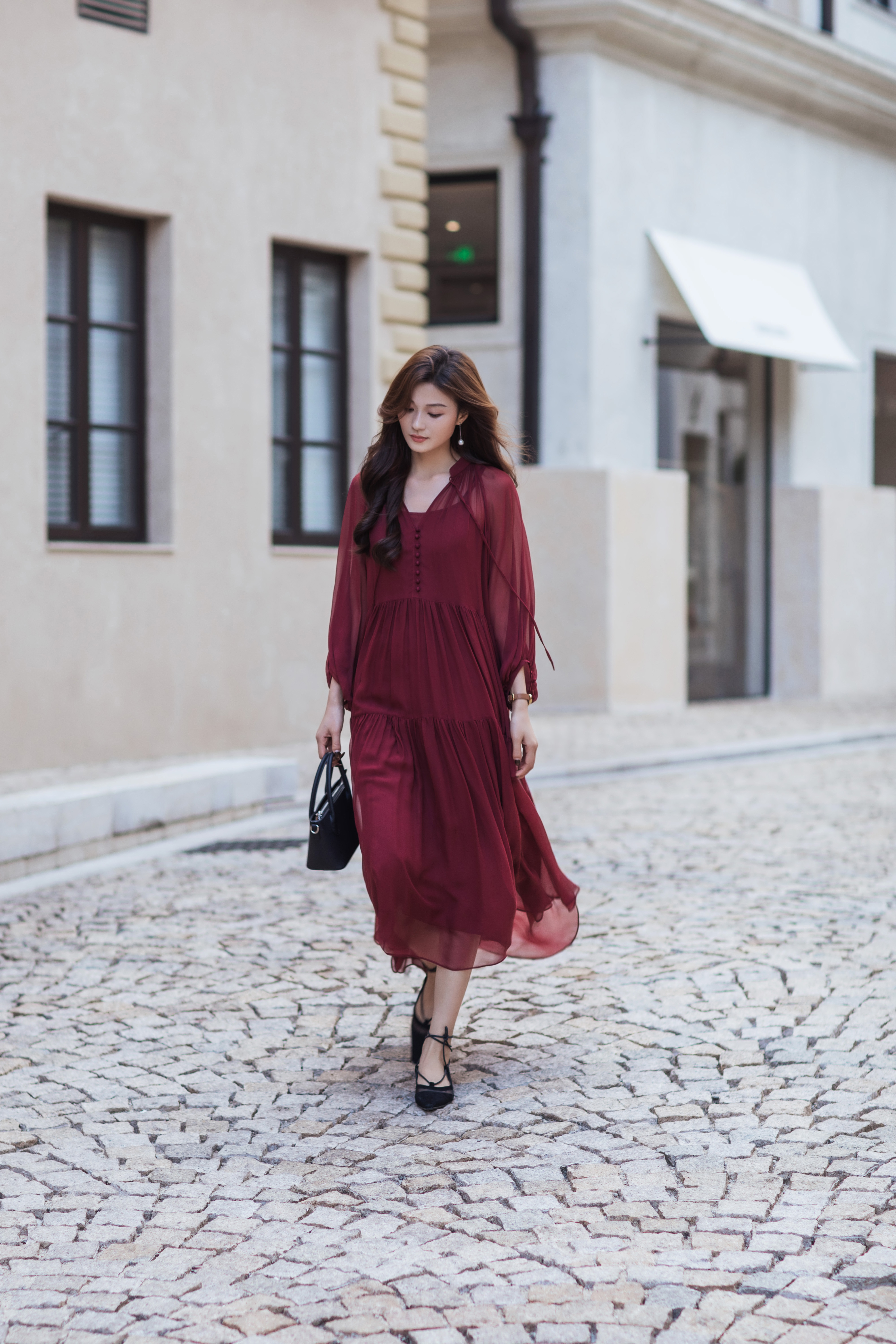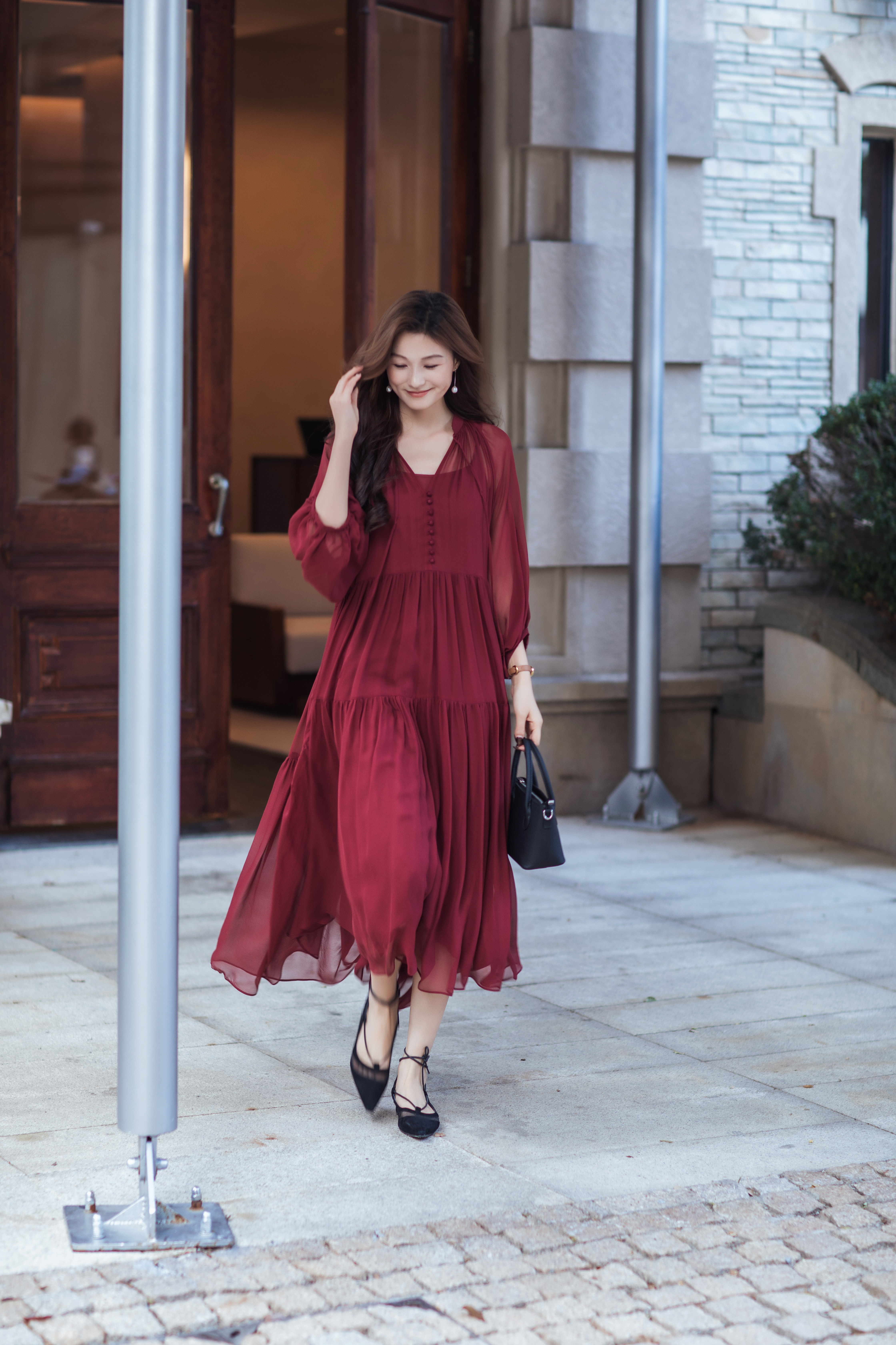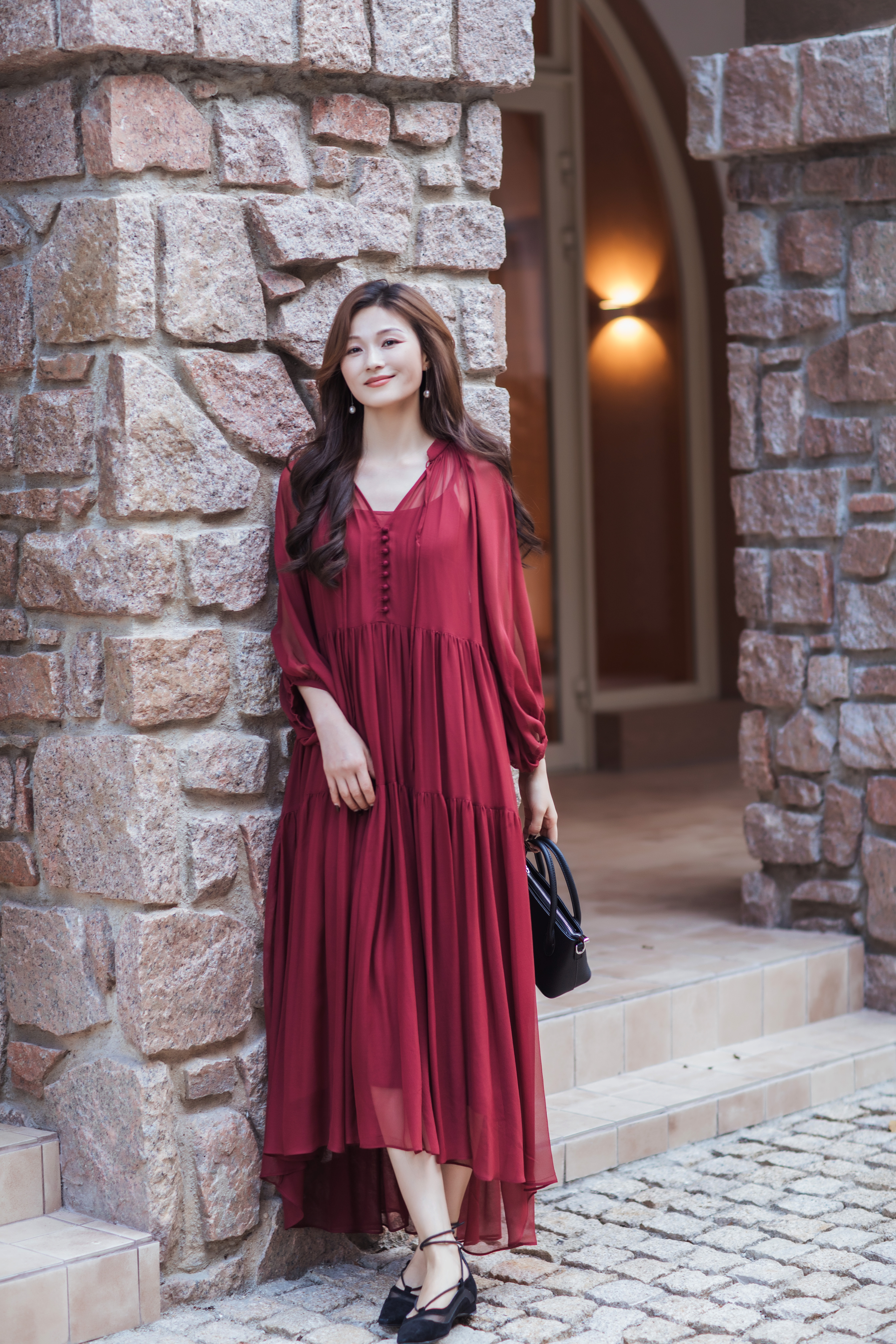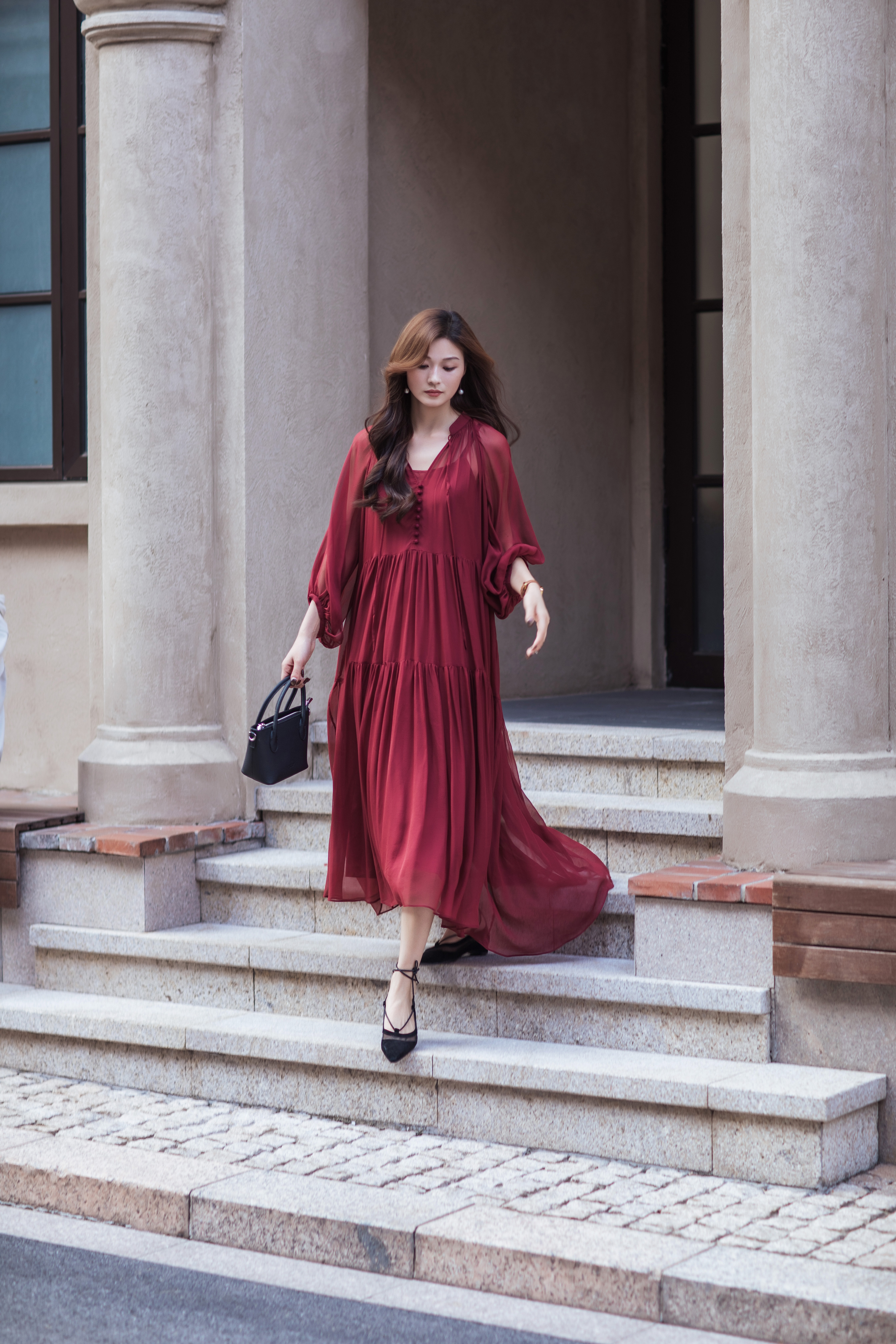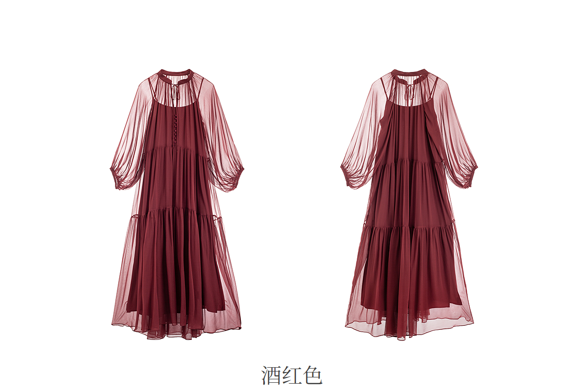 【林栖设计小店】(预售12.18)桑蚕丝红色连衣裙两件套飘逸2026早春新款花仙子吊带裙罩衫女1961035